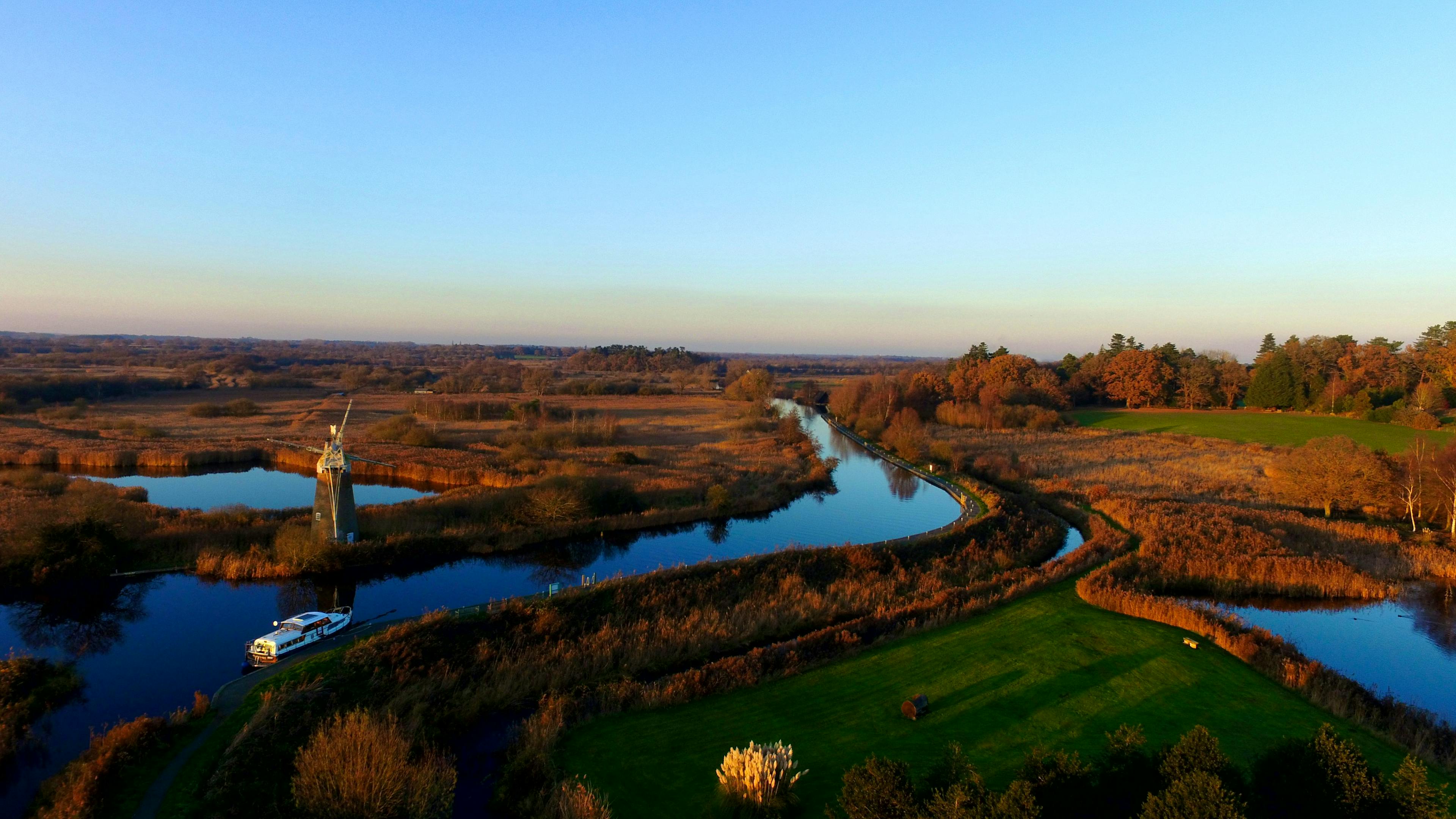 The Norfolk Broads, part of Britain’s largest protected wetland and one of the country’s most enchanting escapes, is a shimmering network of rivers and lakes. These waterways wind through lush meadows, ancient woodlands, and postcard-perfect villages, each with its own waterside pub or cosy tea room.