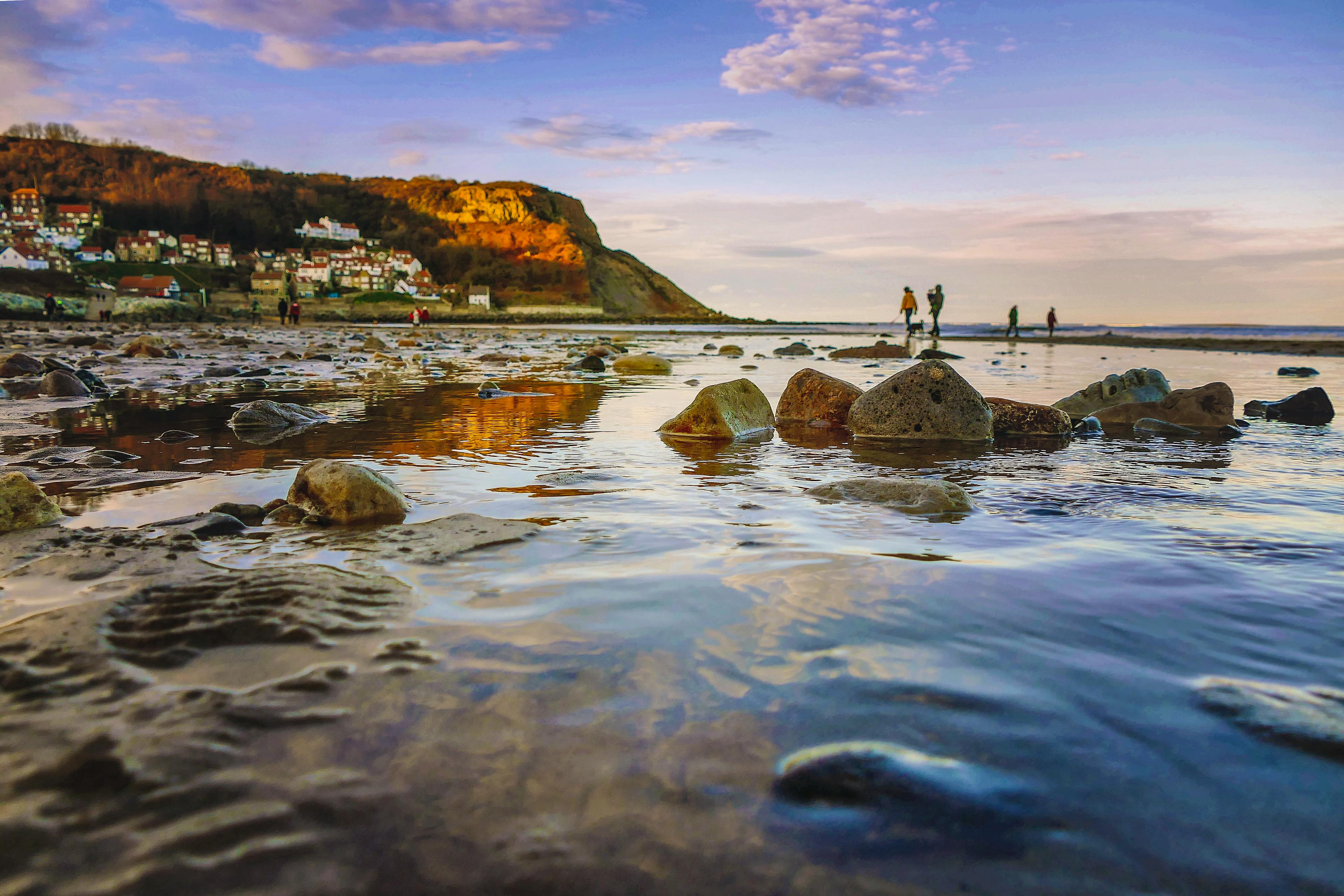 | Runswick Bay | Yorkshire | Rockpooling, family days, coastal walks | Café, pub, lifeguard (seasonal) | Steep hill from car park, limited disabled access |