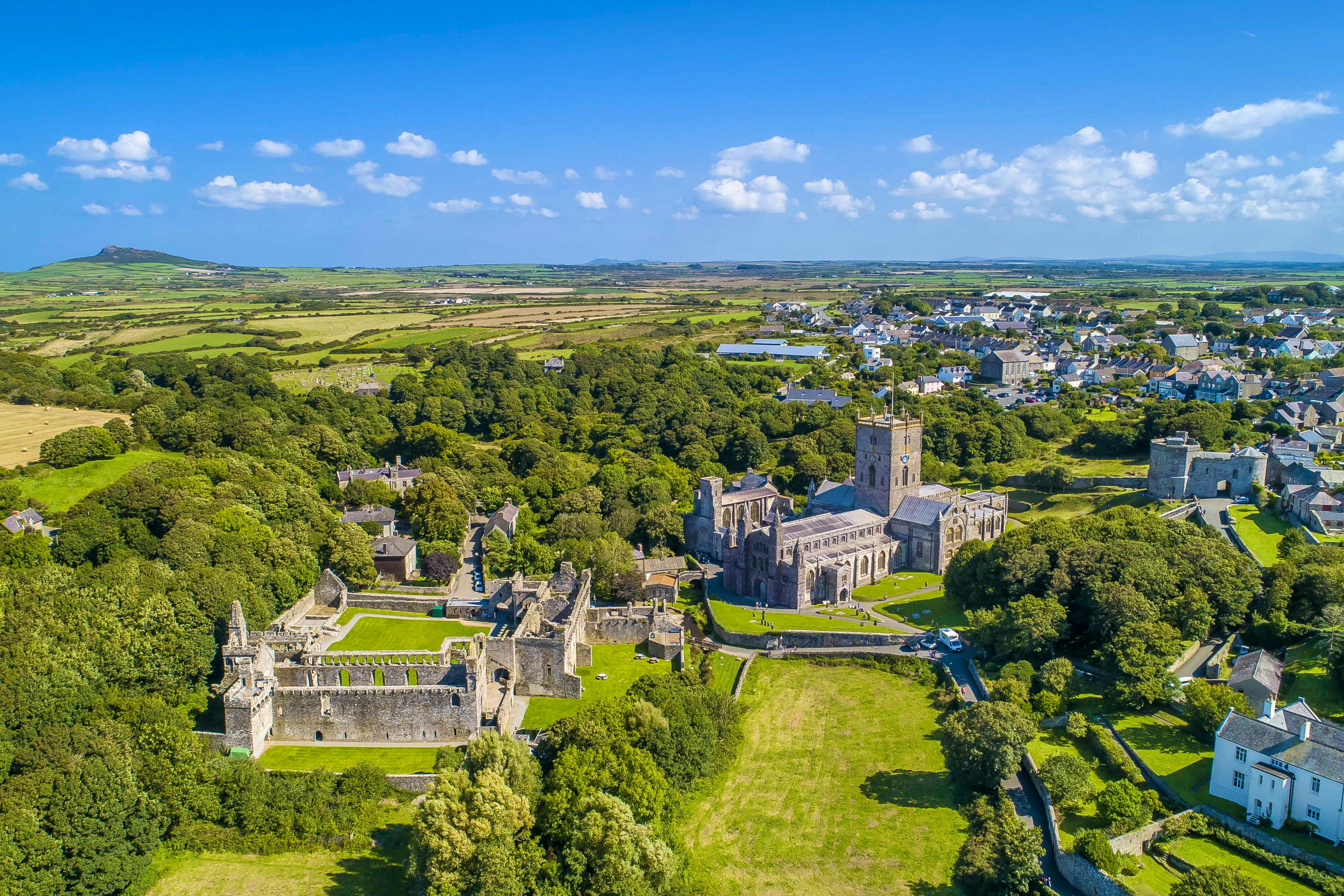 Walk the 186-mile Pembrokeshire Coast Path, surf or paddleboard at Whitesands and Solva, try coasteering with local guides, or hike the wild Preseli Hills for big views and ancient sites.