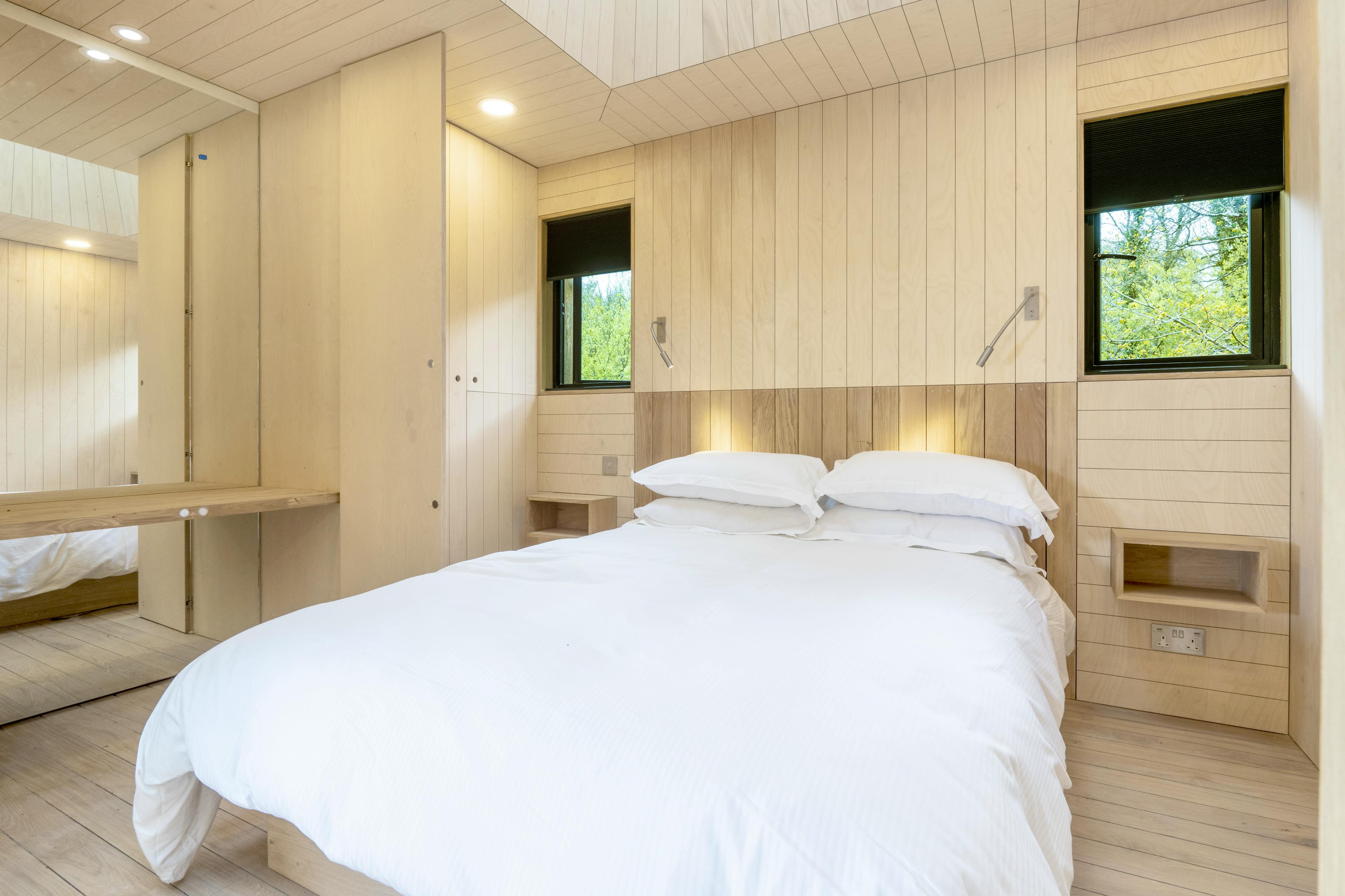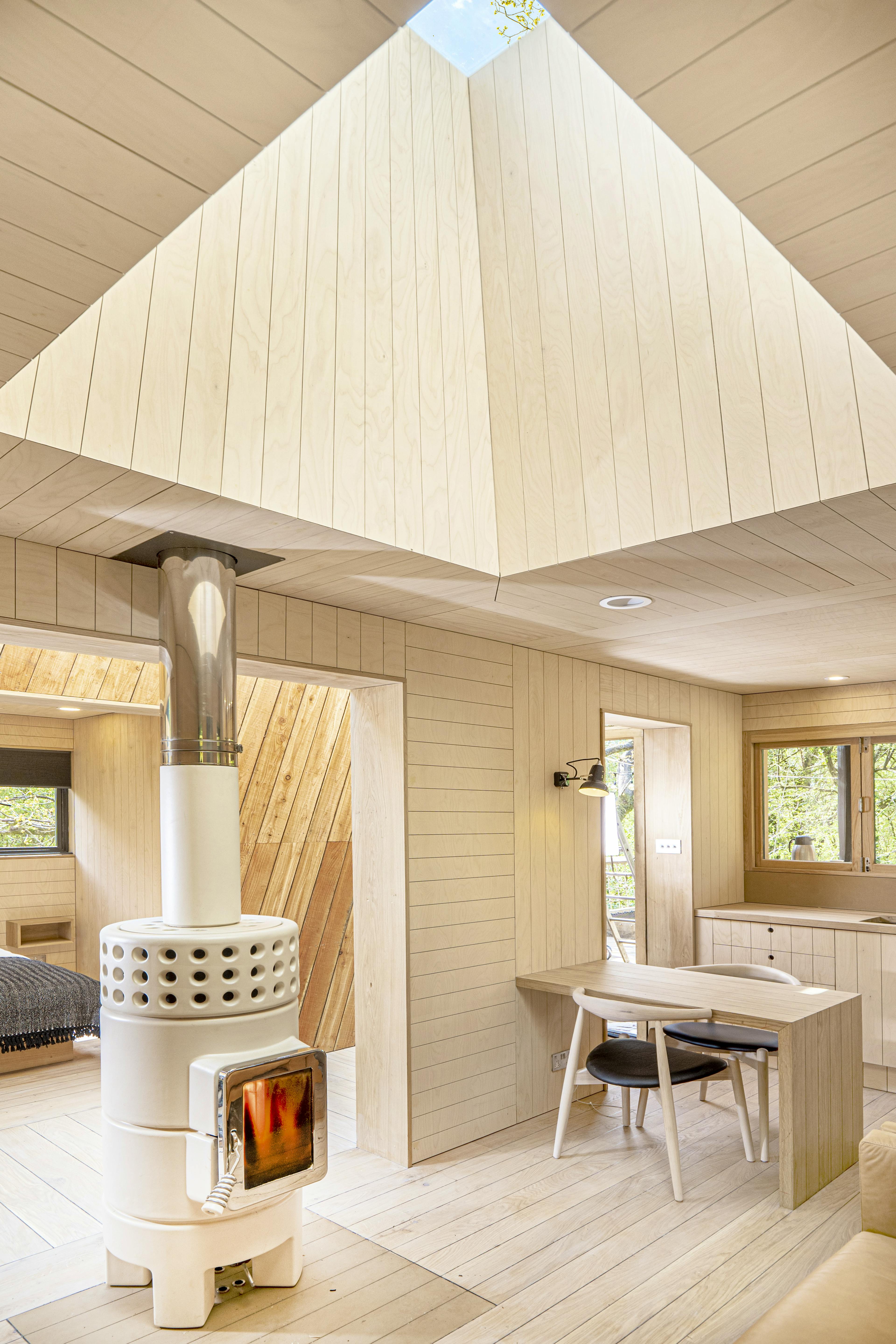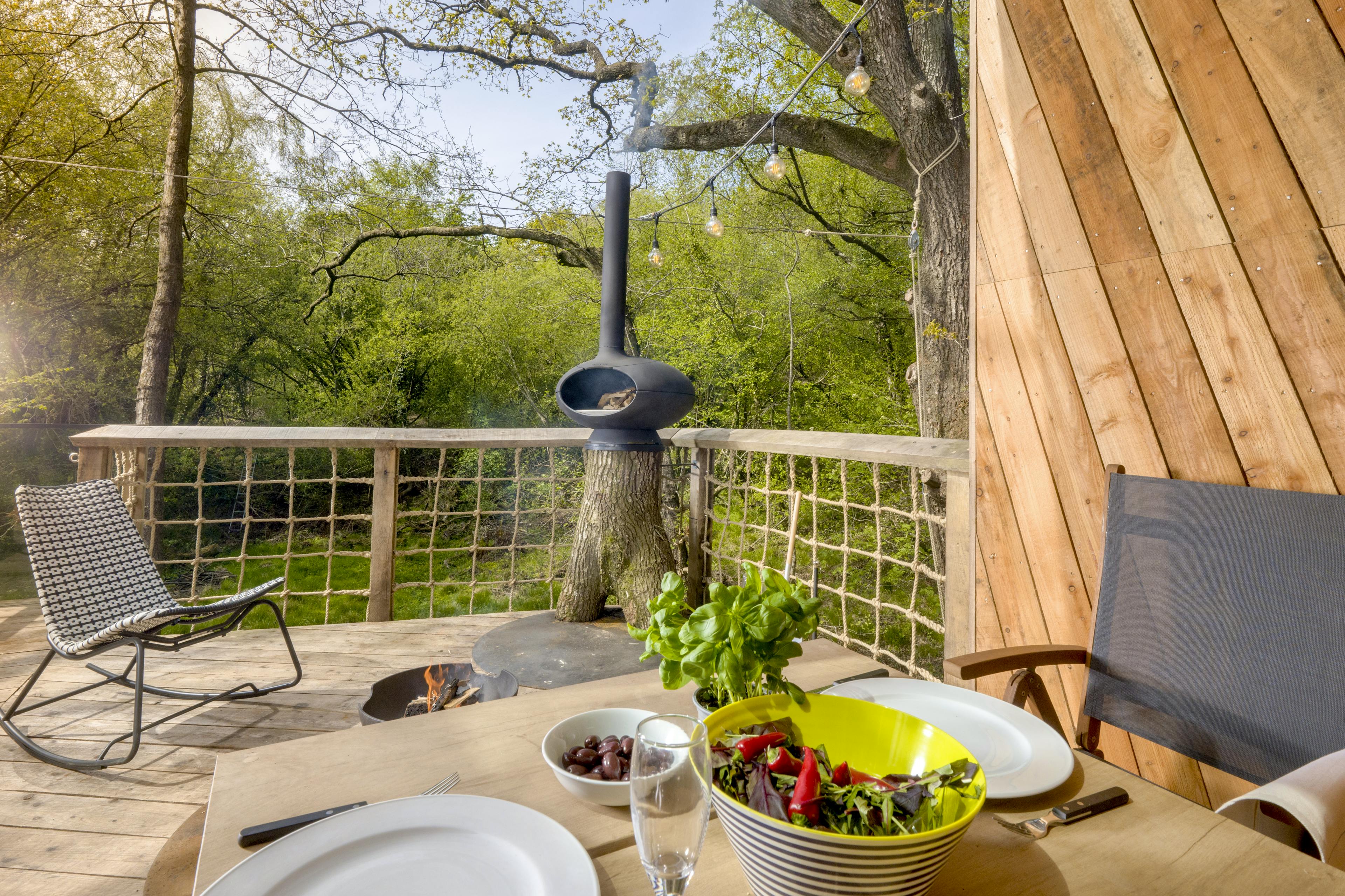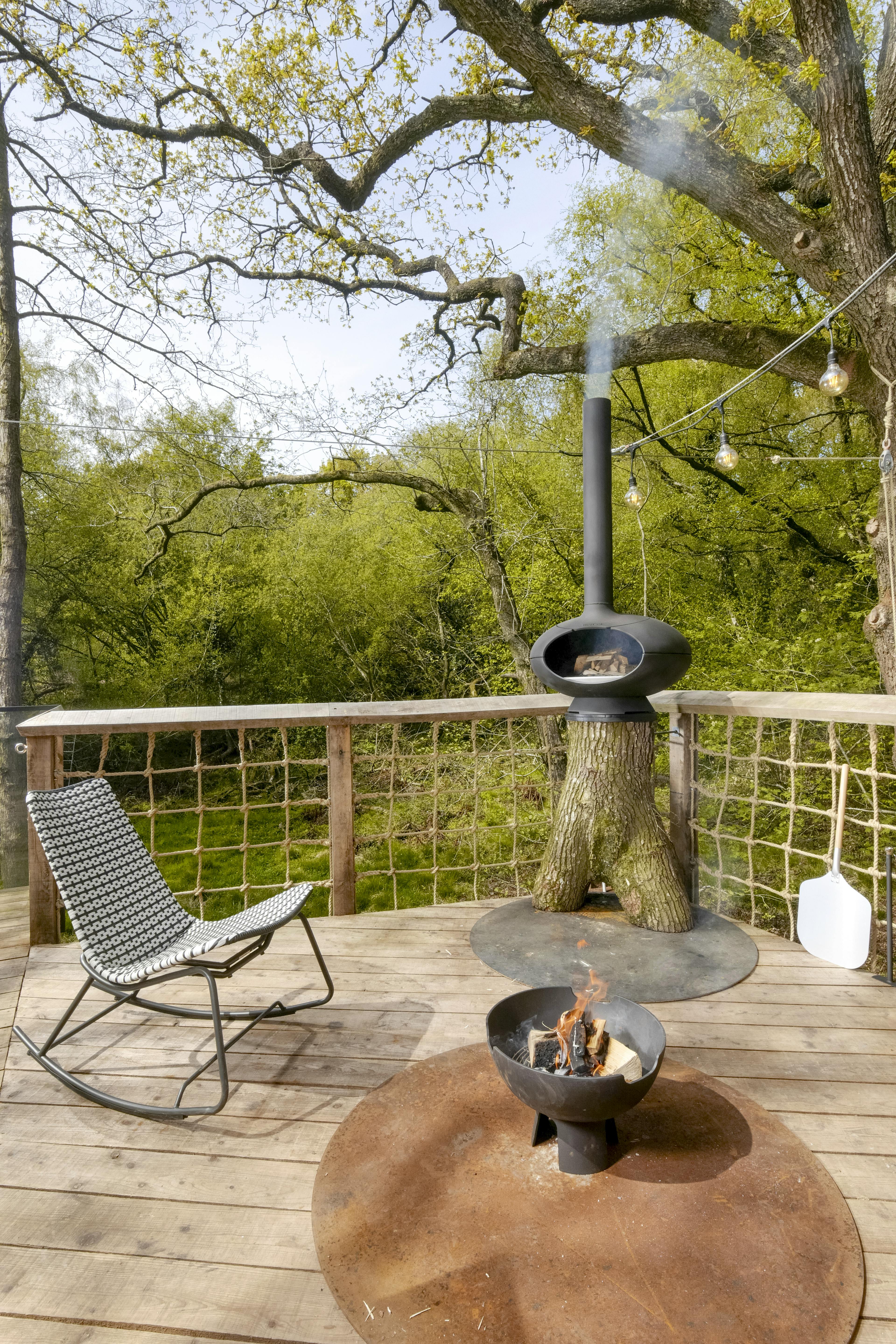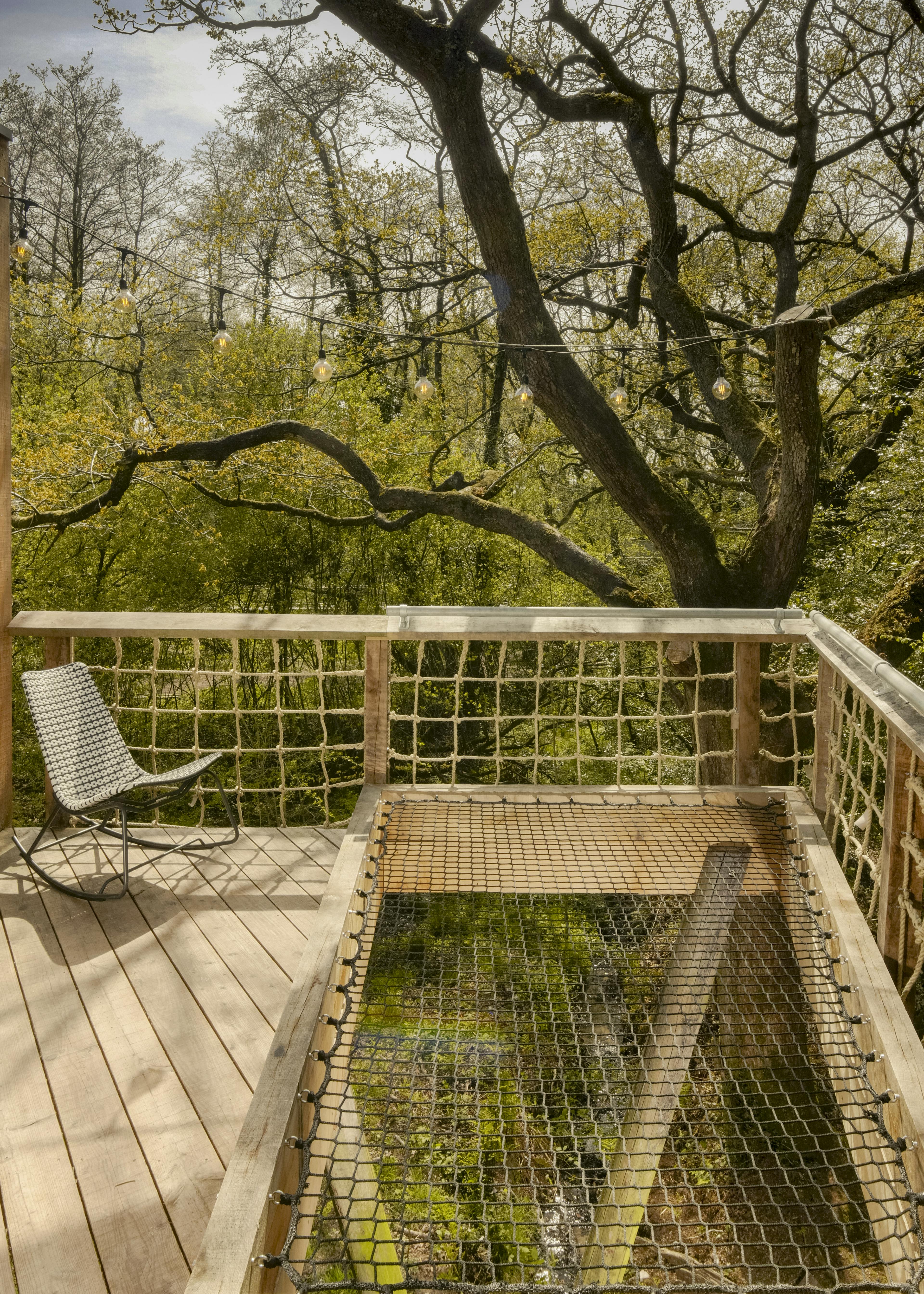 Architecturally extraordinary contemporary treehouse in Dorset from award-winning designers, with hot tub and pizza oven.
