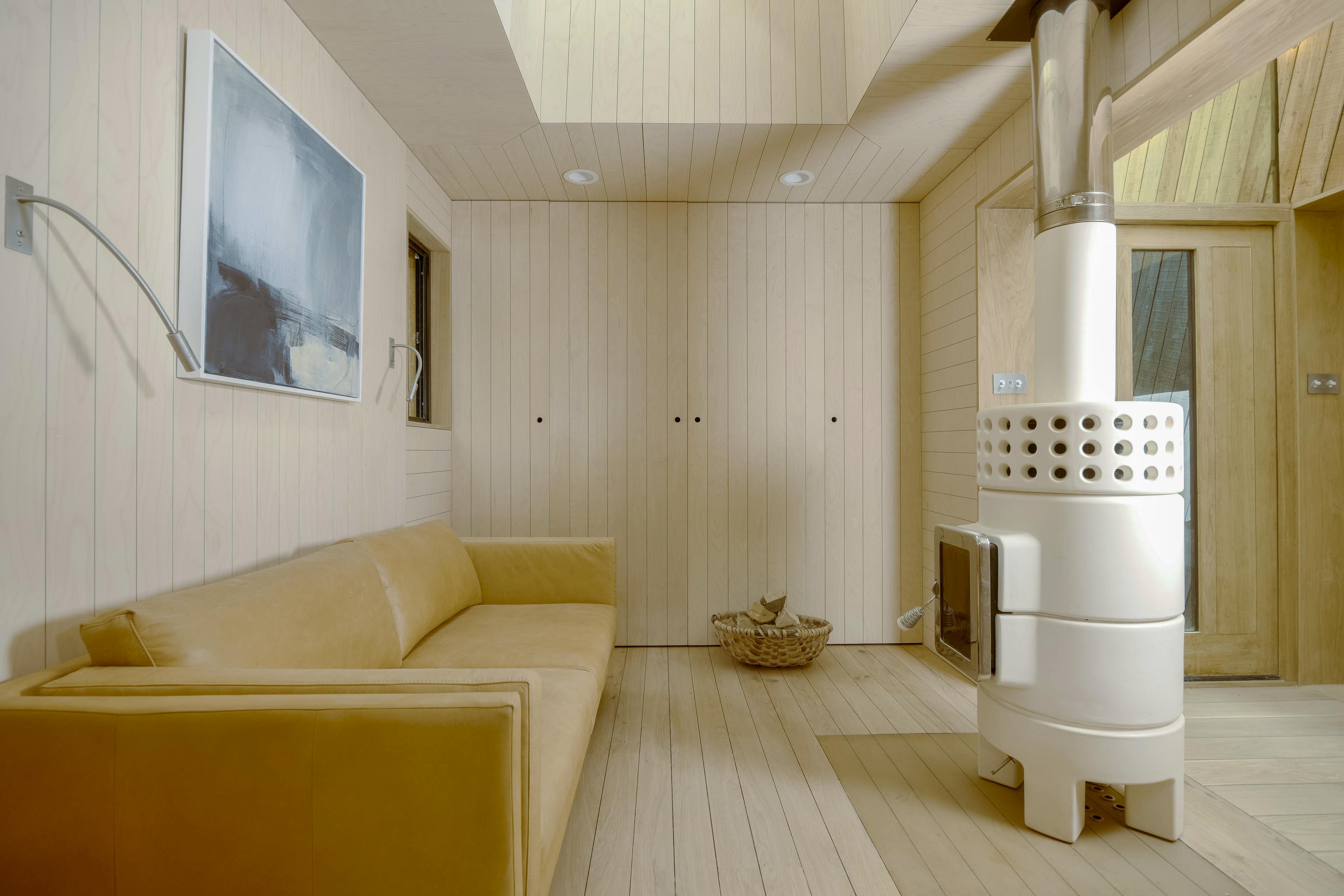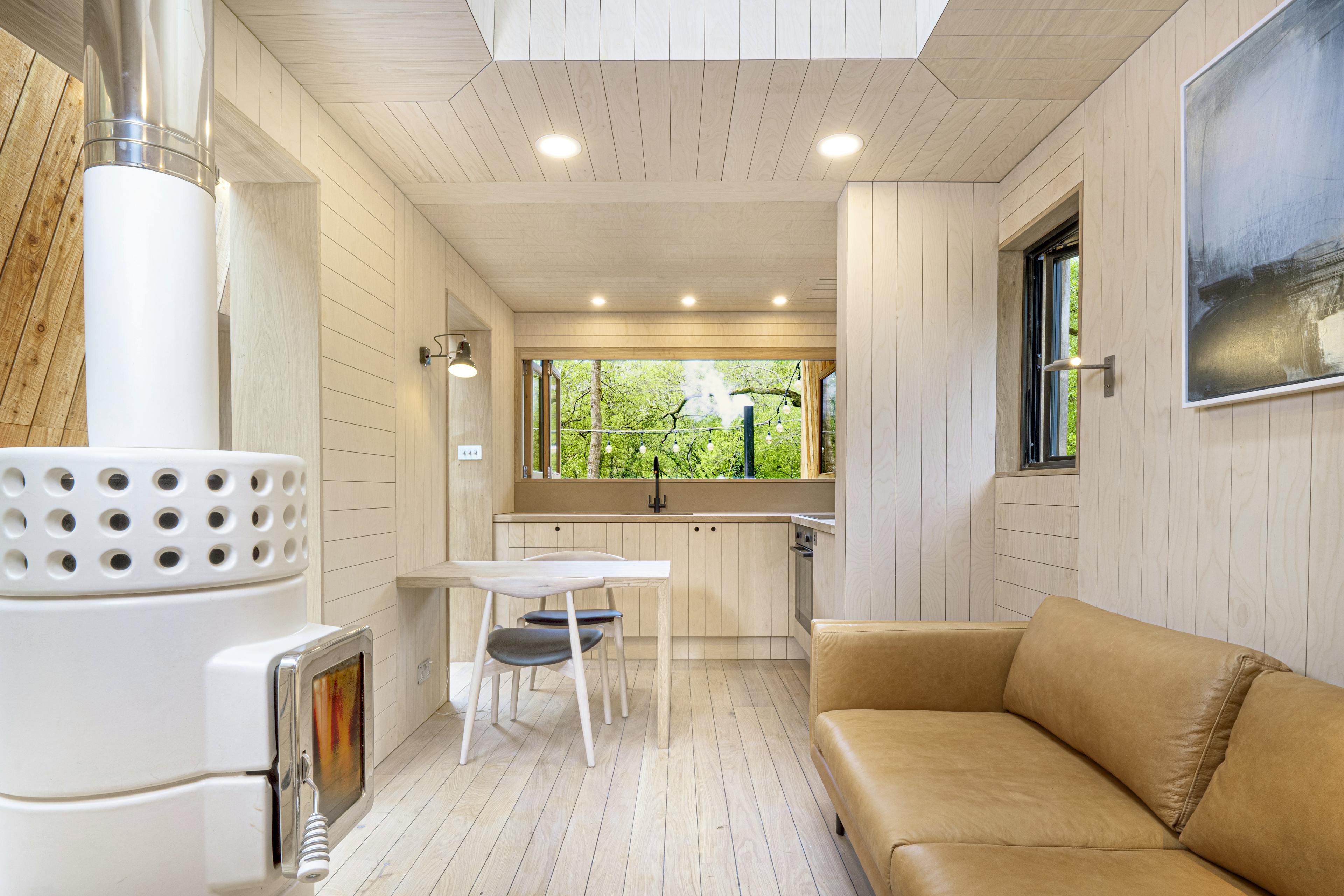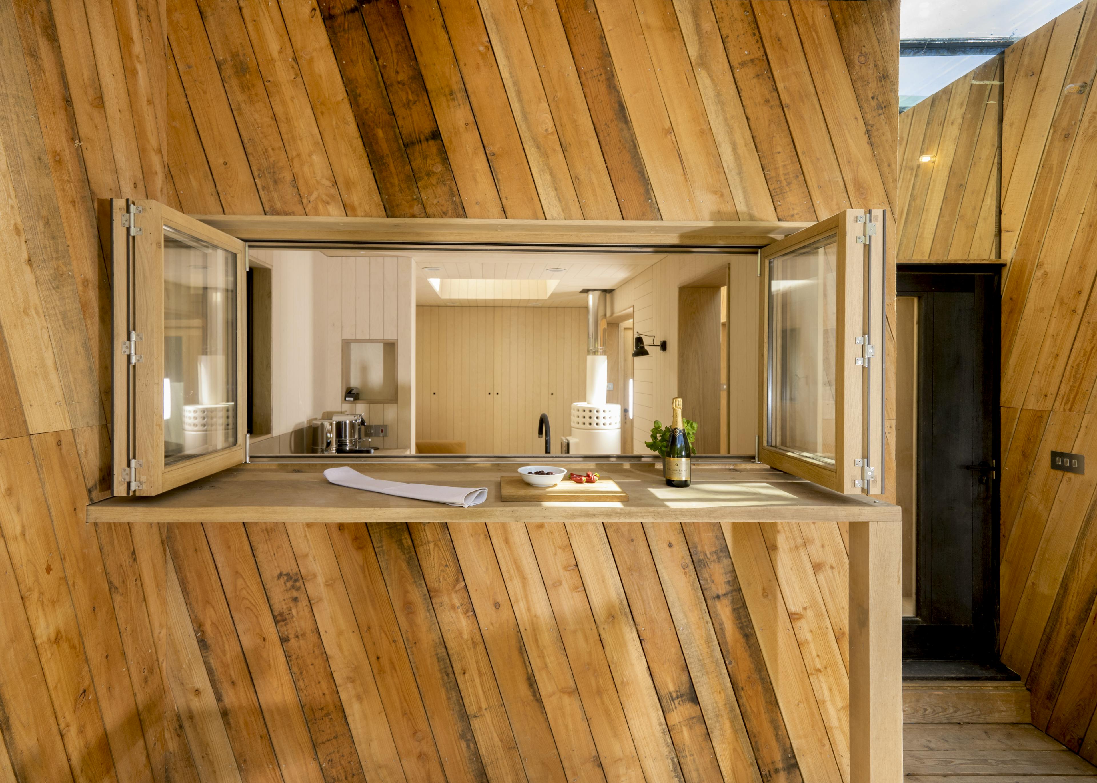 The comfy interior has all you need from a nicely equipped kitchen to a wood burning stove.