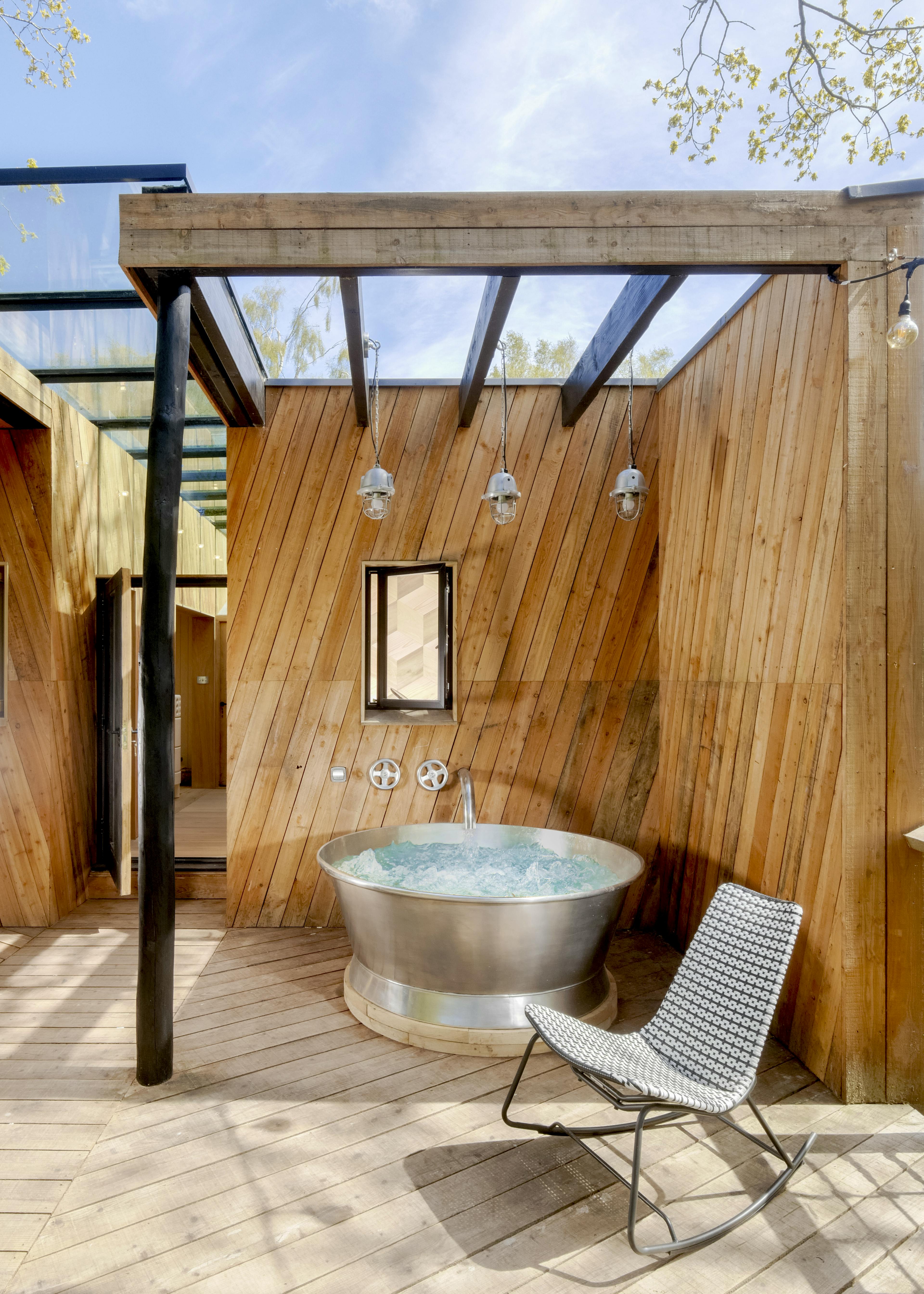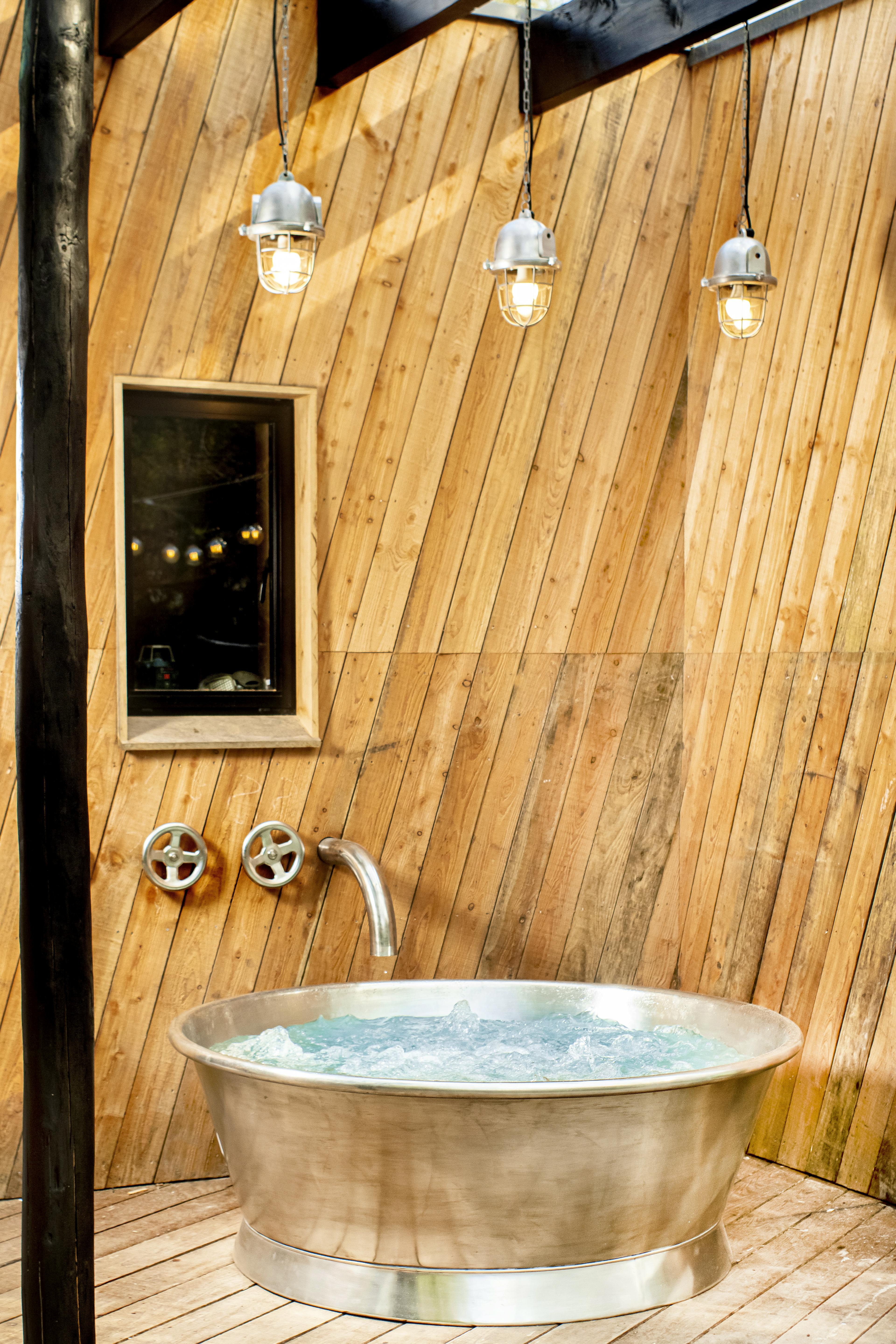 Relax on the deck in your own private hot tub gazing up at the stars.