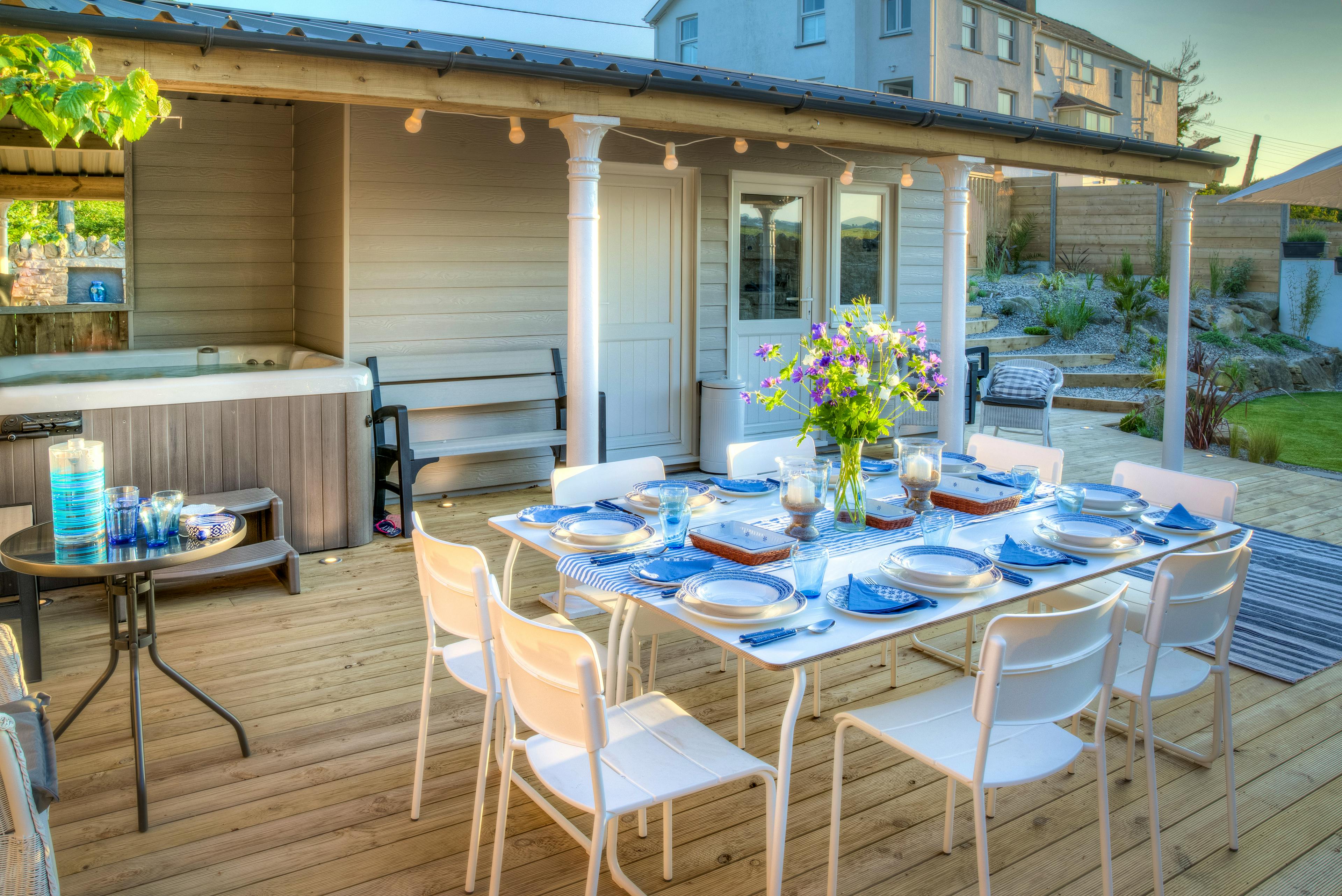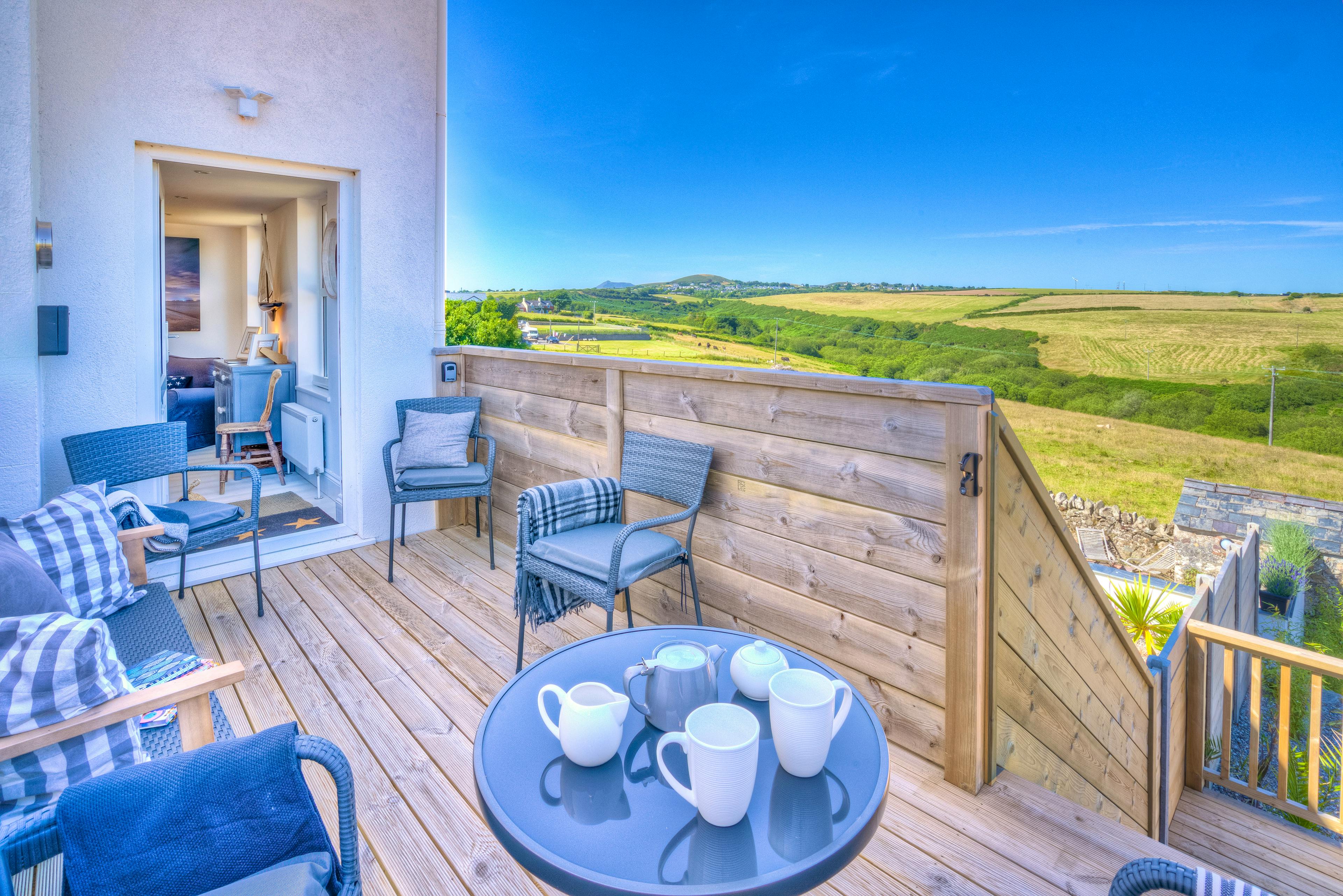 Beautifully refurbished period home close to the beach in Abersoch, Wales, with rural and sea views and a private hot tub.