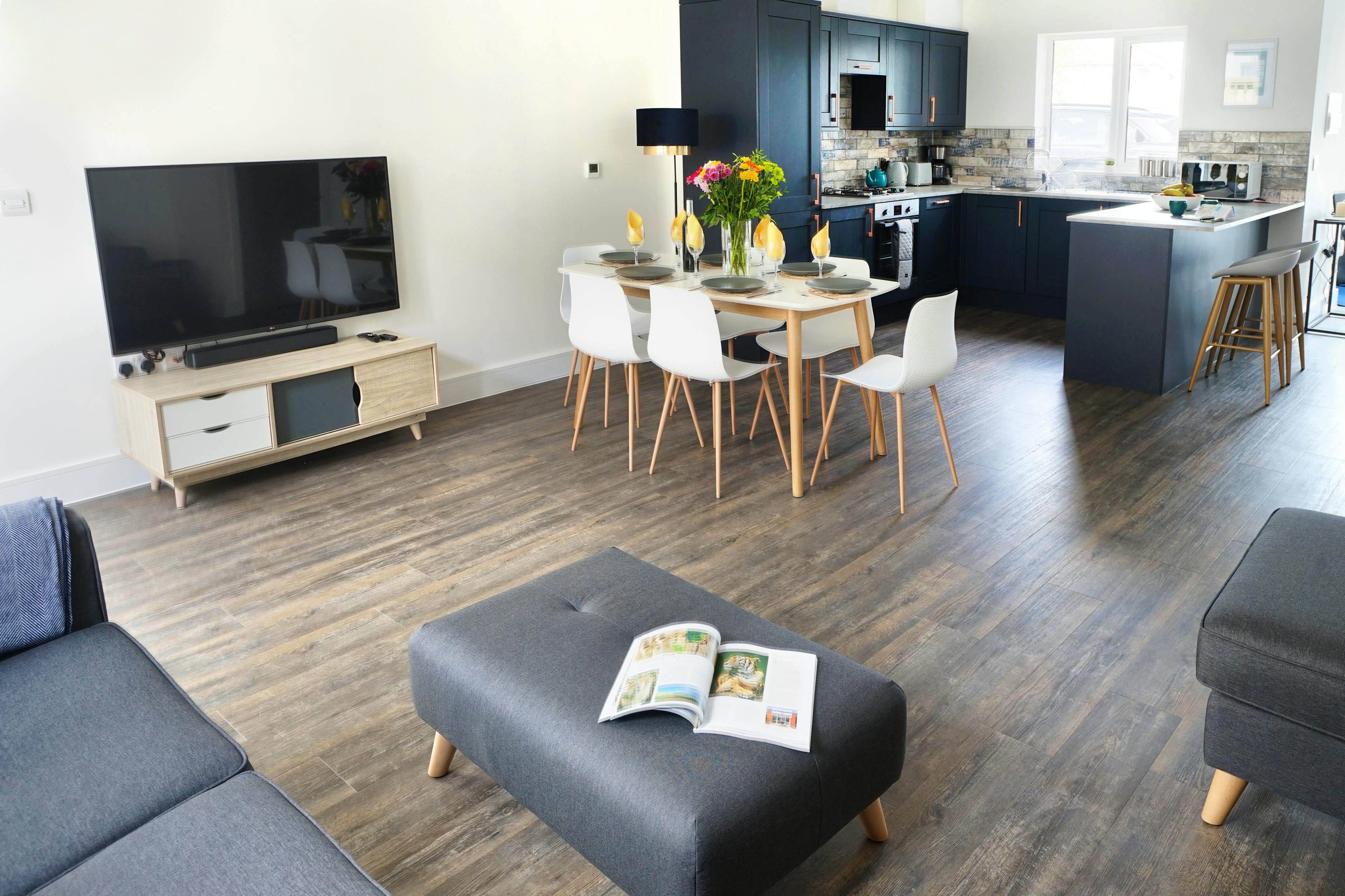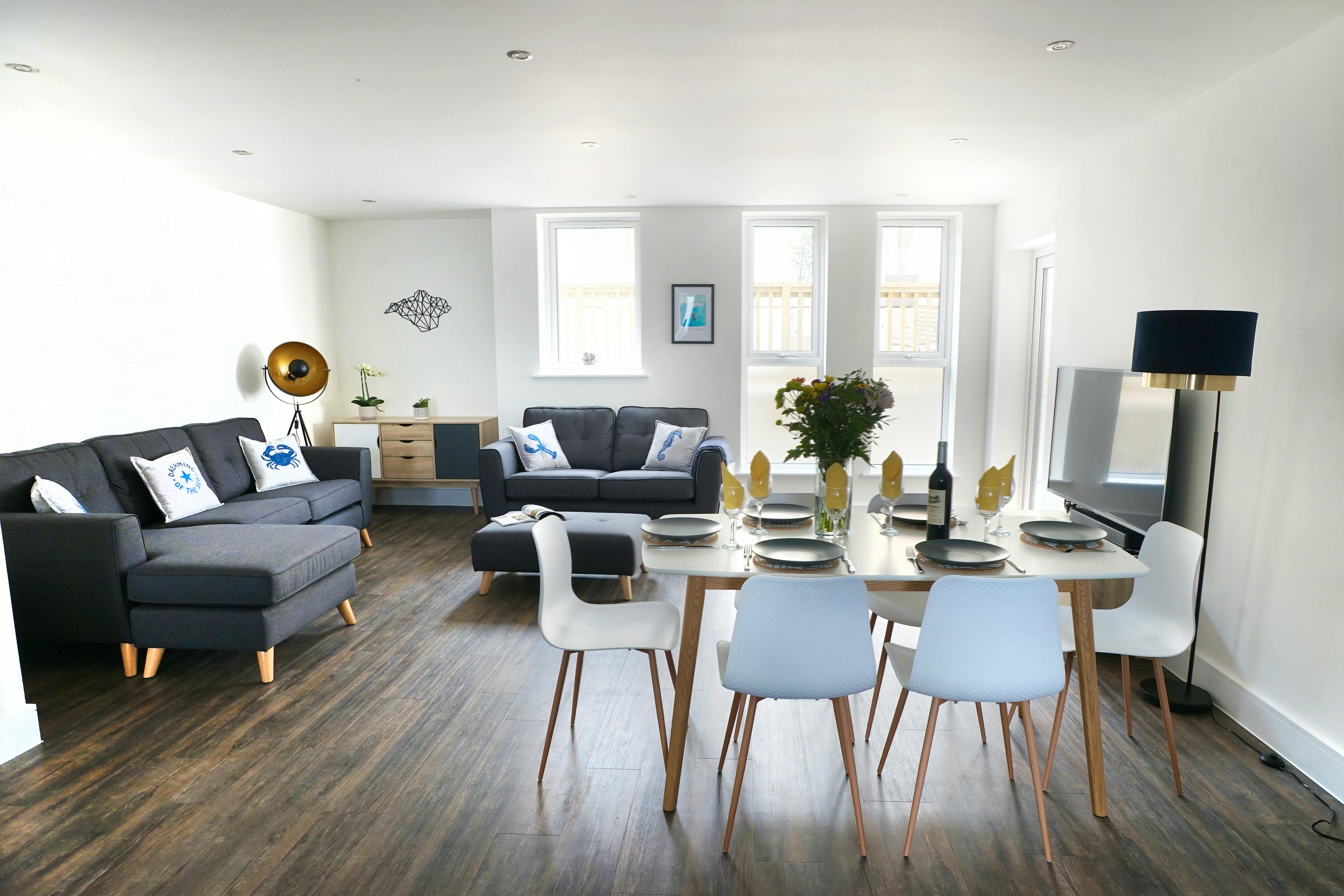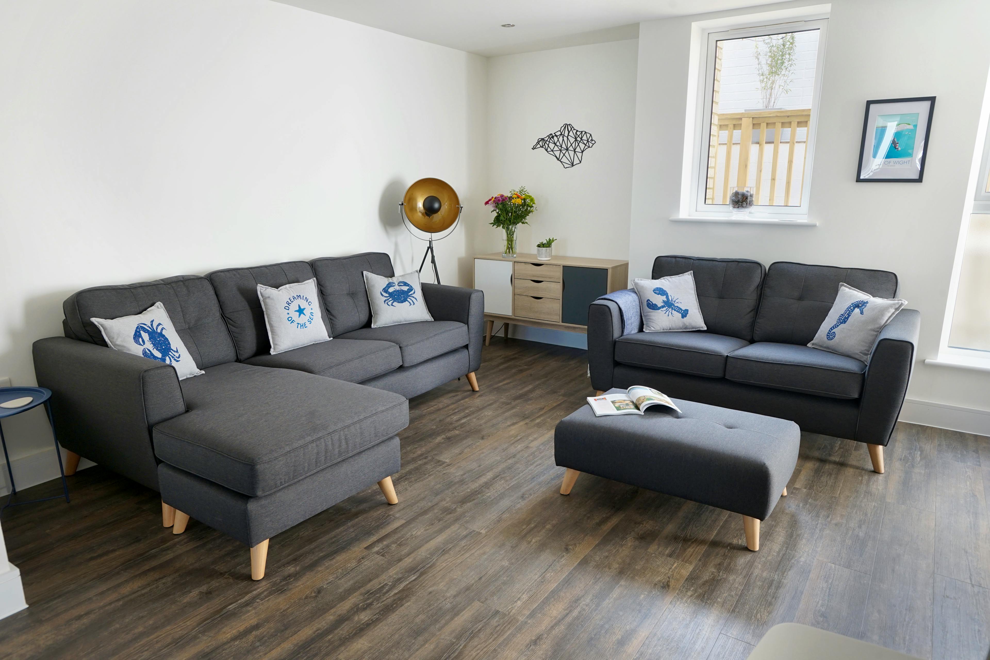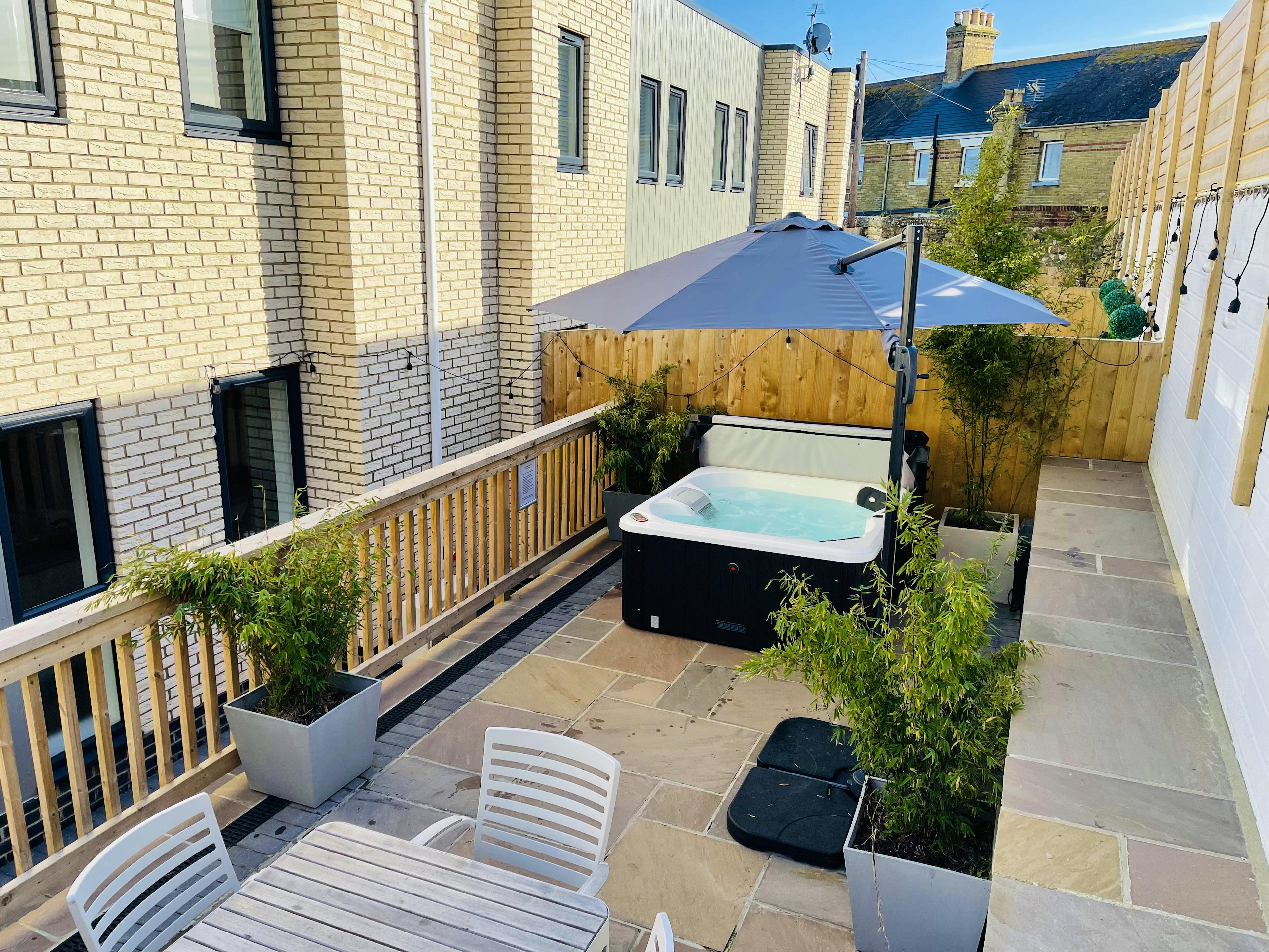 Luxurious, contemporary holiday home with private patio, BBQ and hot tub just a stone's throw from Blue Flag sandy beach on the Isle of Wight.