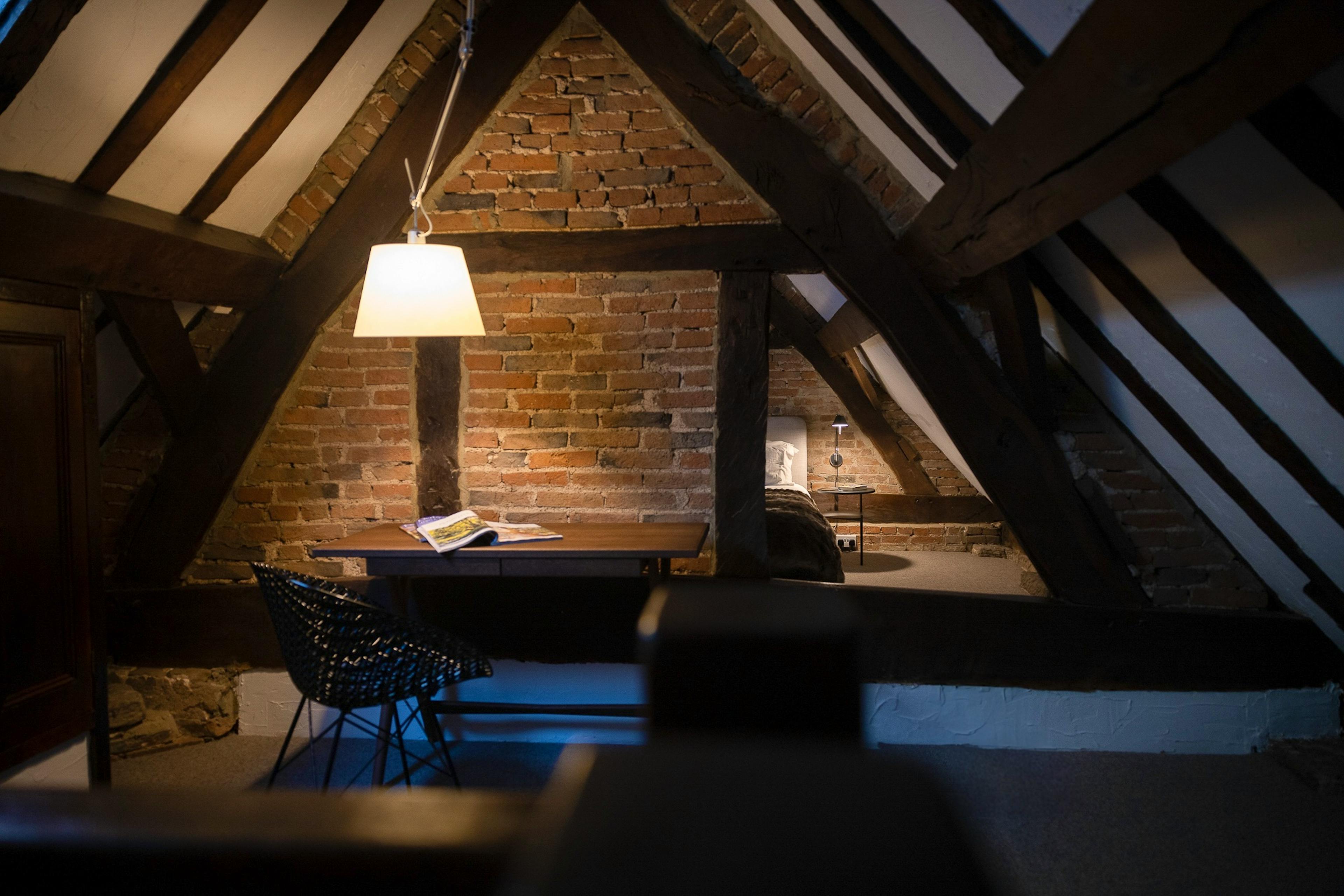 Bedroom access is via a quirky triangular wooden door, not suitable for those with limited mobility.