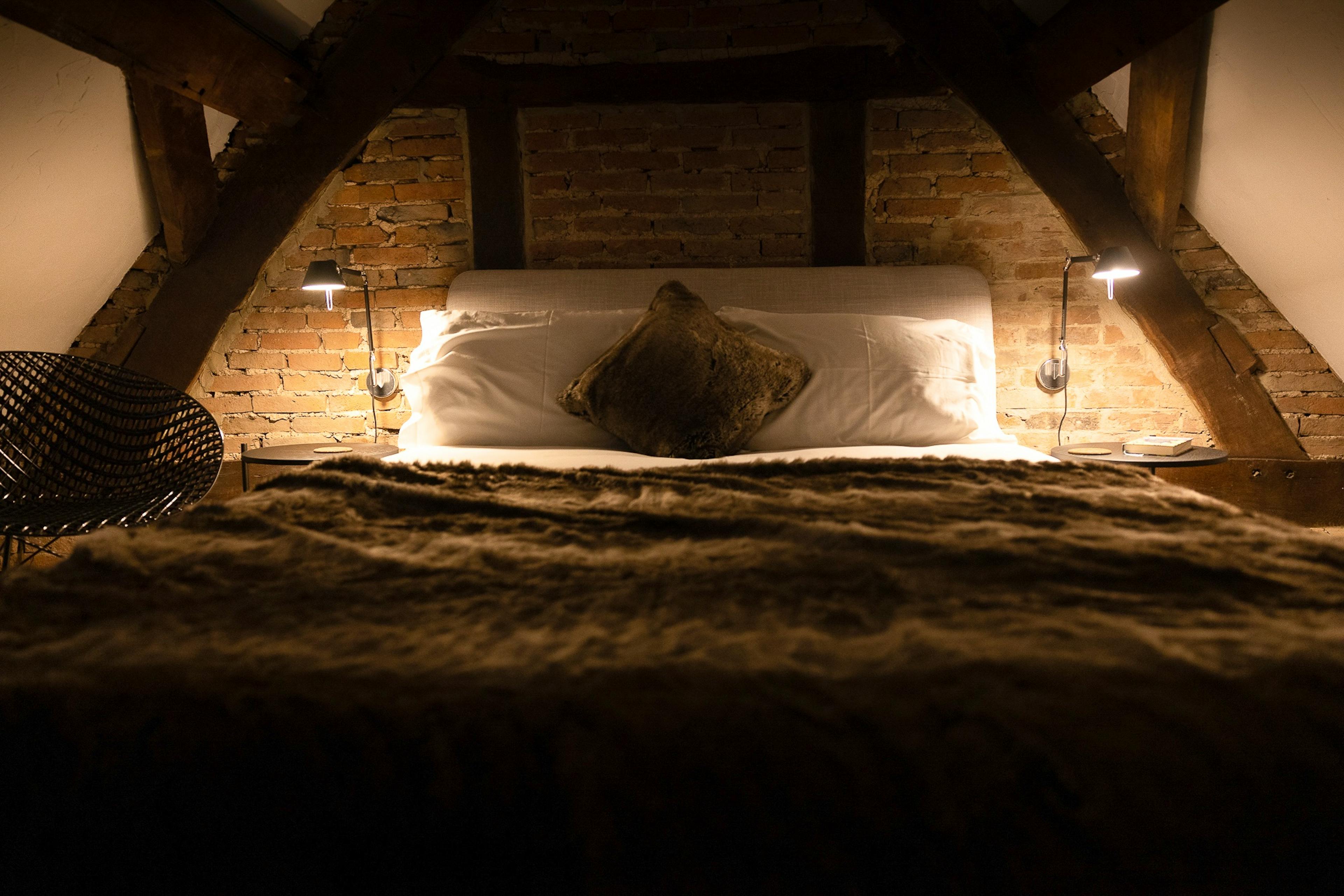 A supremely comfortable king size bed with Egyptian cotton linens, towels and robes for a boutique hotel feel.