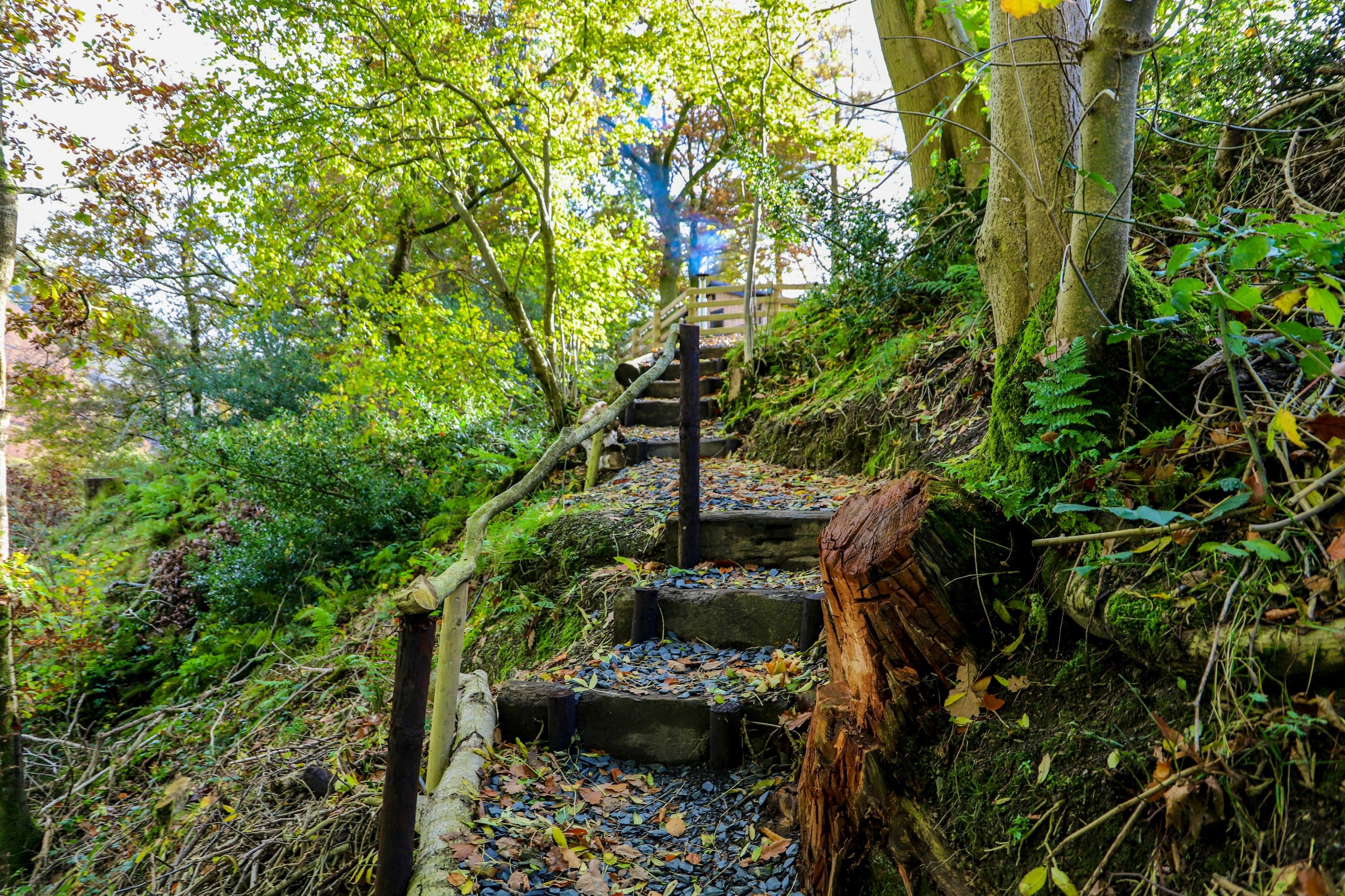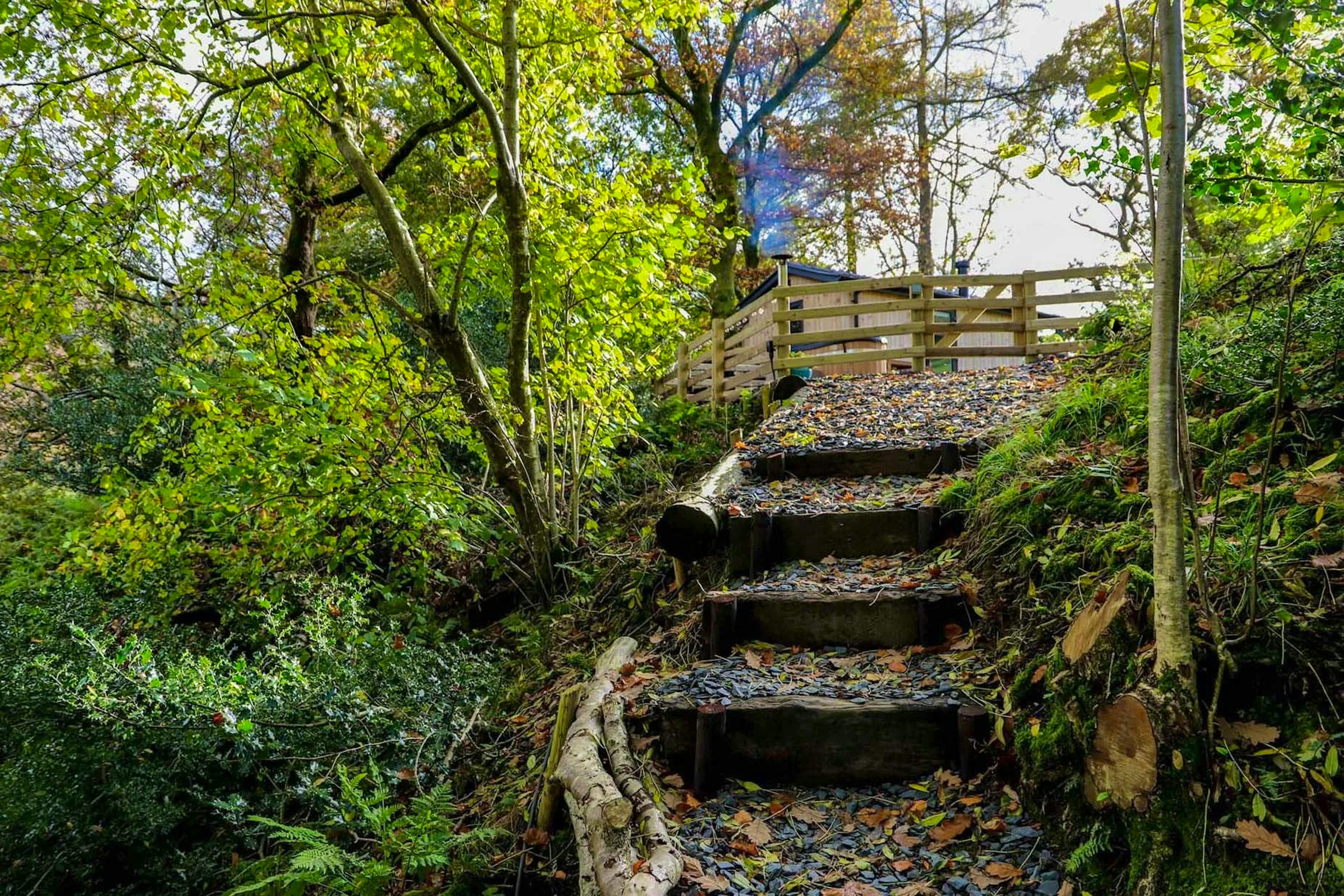 Access to Nant Gwenyn includes a gravel path and steps from the parking area.