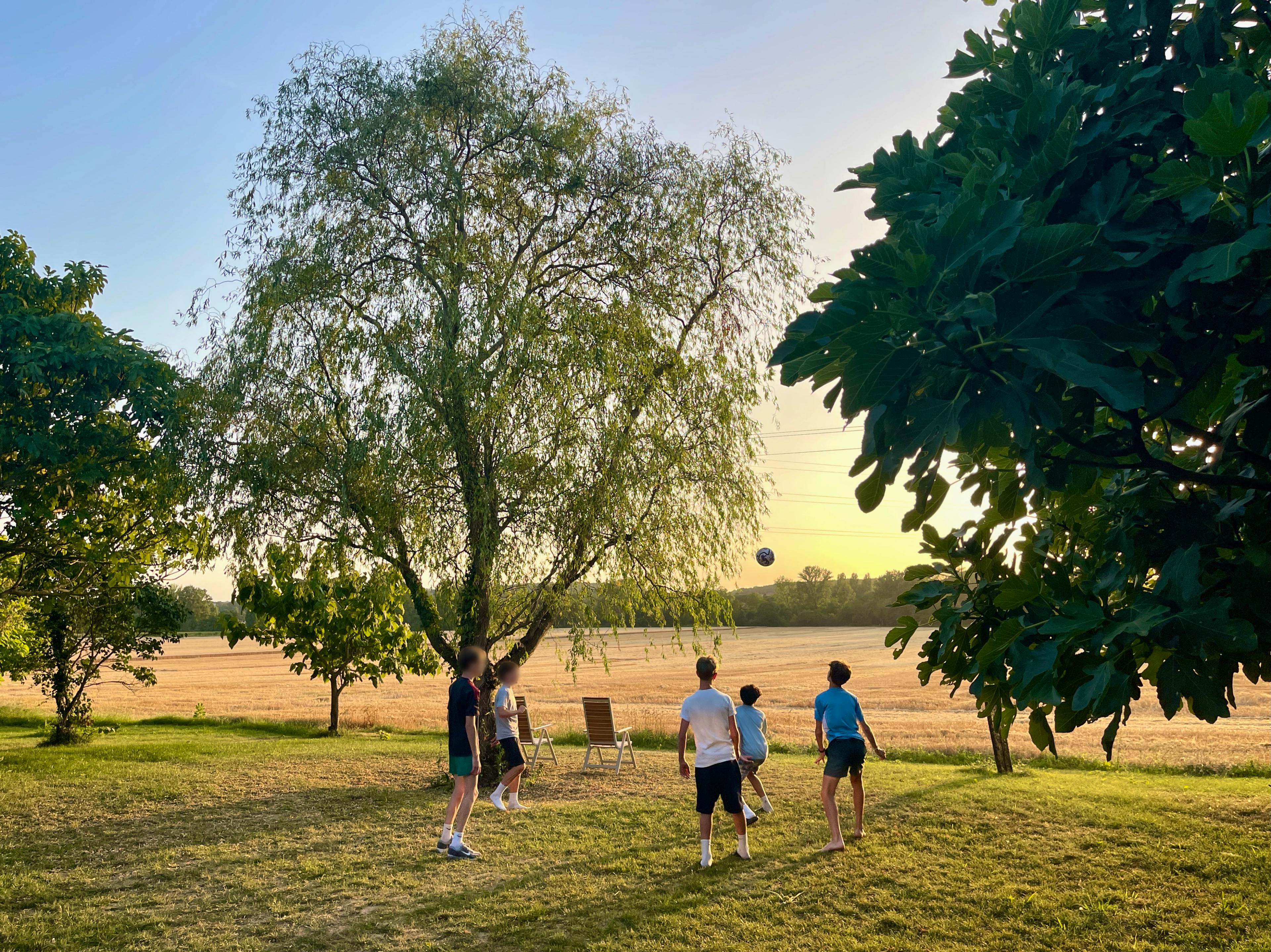 A beautiful 10 bedroom gite, surrounded by lush gardens with a private pool, La Rivière Vacances is the perfect home-from-home in the south west of France. Tucked away down a quiet road, this lovely property greets you as soon as you turn into the driveway. Once a farmhouse, it's been thoughtfully converted into a substantial country house and annexe, with 10 air-conditioned bedrooms, five bathrooms, secluded grounds and a swimming pool. Inside you'll find generous living spaces, ancient wooden beams and honey-coloured stone walls. The heart of the house is the vast kitchen/dining/ living area containing the large open-plan kitchen with its range stove and all equipment the chef could require. There's a dining table with seating for 16 (which can be modified for larger groups) and a comfortable living room area lit by grand arched windows which can be opened wide onto the pool area and stunning covered terrace swagged with grape vines where you’ll find a huge dining table for long alfresco lunches or lantern-lit evening celebrations. Also on the ground floor there's a further lounge where you can watch the large 72 inch TV connected to Netflix and streaming services or just enjoy some quiet time. There's also a family bedroom sleeping four in a double and two single beds. Also on the ground floor you'll find a library/games room with a Bonzini table football, and for further fun and games head up to the mezzanine where there's a full sized pool table. Upstairs the bedrooms are named after Cluedo characters: Mrs White is a large room with a double bed, plus an ensuite shower room. Reverend Green, Miss Scarlett and Professor Plum are all doubles or can be converted to twins, Mrs Peacock is a double and Colonel Mustard is an ensuite sleeping two adults with an adjoining nursery for two children. There is also a family bathroom, plus an office space on the first floor. Further accommodation can be found in the pretty cottage annexe next door. This has its own kitchen and living space, one double bedroom, one double or twin room with a set of bunk beds, a bathroom and space for a further guest on the sofa bed in the living room. There are a few extra single beds that can be added to different bedrooms, which almost always allows a room arrangement to suit each group or family. Step out into the fabulous gardens and explore the different play areas; the swing and slide set by the old cherry tree and barn, the 4m trampoline, the football field, the grassy areas for badminton and molkki matches or pétanque games on the drive. The large private pool with sun loungers, seating areas and large gas plancha for barbecues is perfect for a few lengths before breakfast or dips to cool off from the afternoon heat. Beyond the doorstep, the verdant countryside of the Comminges and Gascony region is waiting to be explored, with lovely walks and bike rides beginning straight from the house. The pretty village of L'Isle-en-Dodon is just a short walk away, home to welcoming cafes, a lively Saturday market and historic streets to wander, while the vibrant city of Toulouse is only an hour’s drive away. Head south and the scenery begins to rise towards the foothills of the majestic Pyrenees, reached in around 45 minutes, with highlights including the beautiful village of Saint-Bertrand-de-Comminges and its surrounding countryside. For mountain adventures, Bagnères de Luchon and Saint Lary ski stations are around 1 hour 15 minutes away, offering winter skiing, snow-shoeing and sledging, as well as hiking and outdoor adventures throughout the year. You’ll be warmly welcomed by a host who genuinely loves helping guests make the most of their stay. From suggesting brilliant local restaurants and days out to helping organise activities tailored to your group, they’re always on hand with friendly advice and local know-how, making your holiday feel effortless, relaxed and wonderfully stress free.