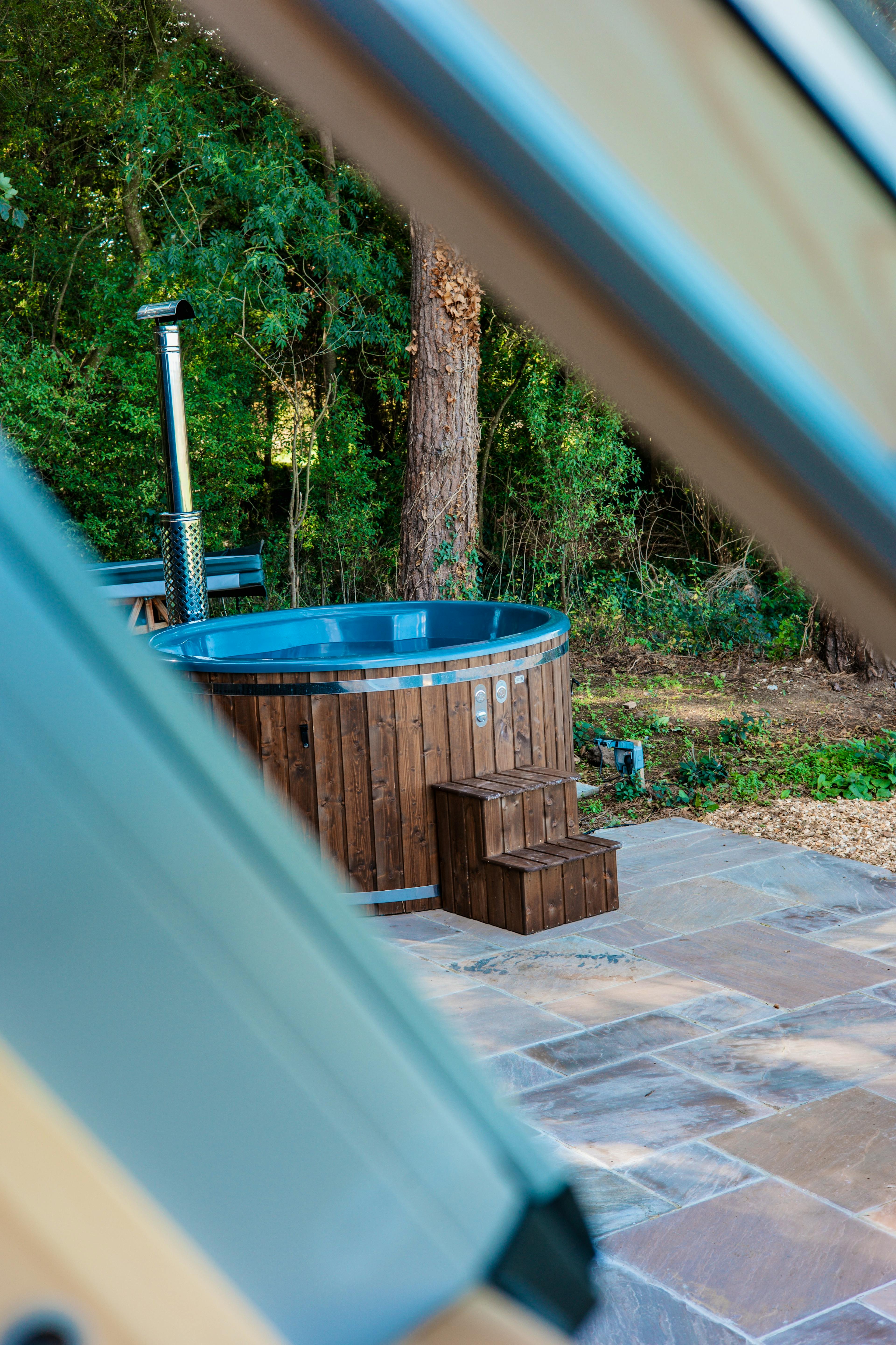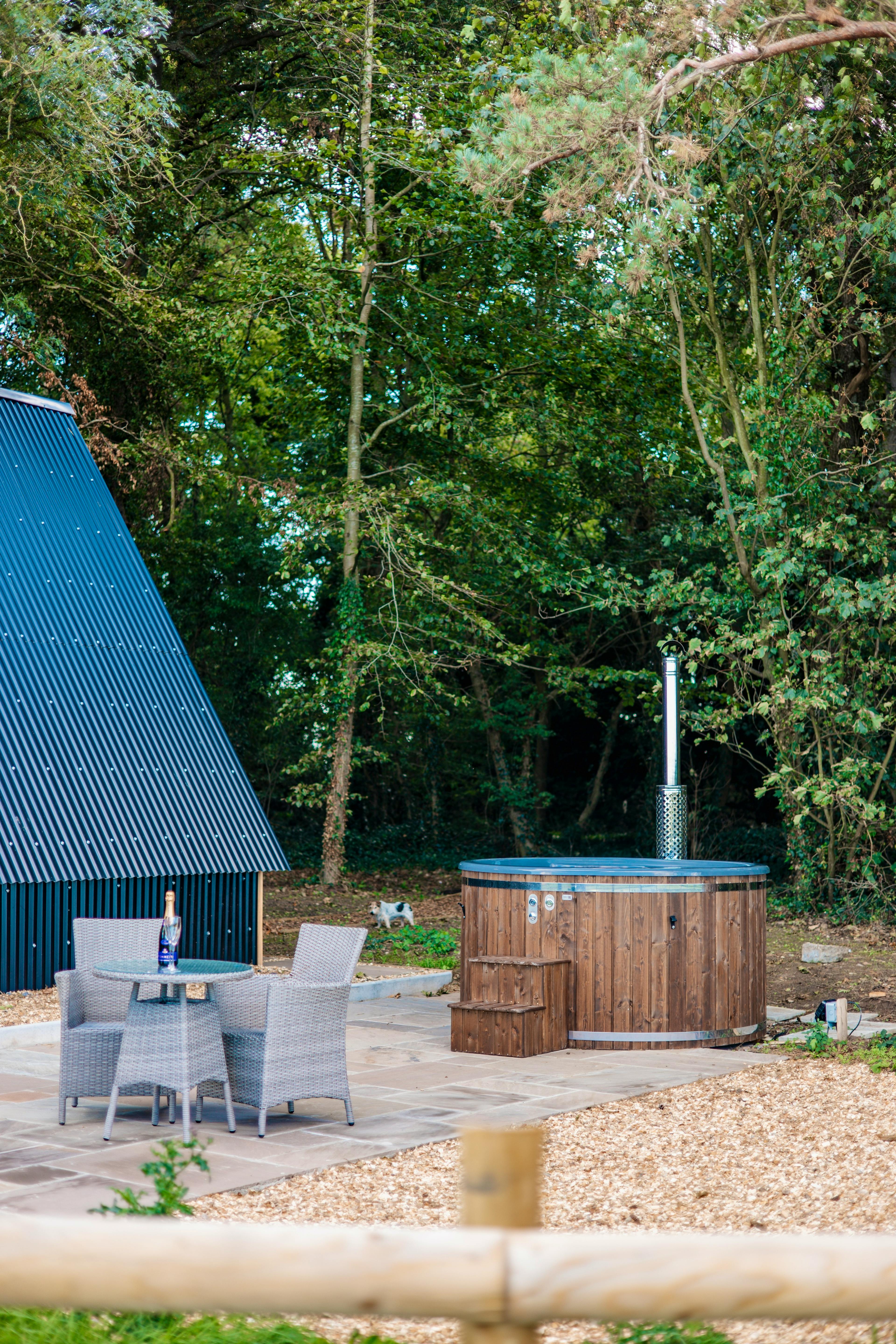 This romantic, hand-crafted cabin sits in peaceful, private woodland in Somerset and has its own wood-fired hot tub for indulgent starlit soaks.