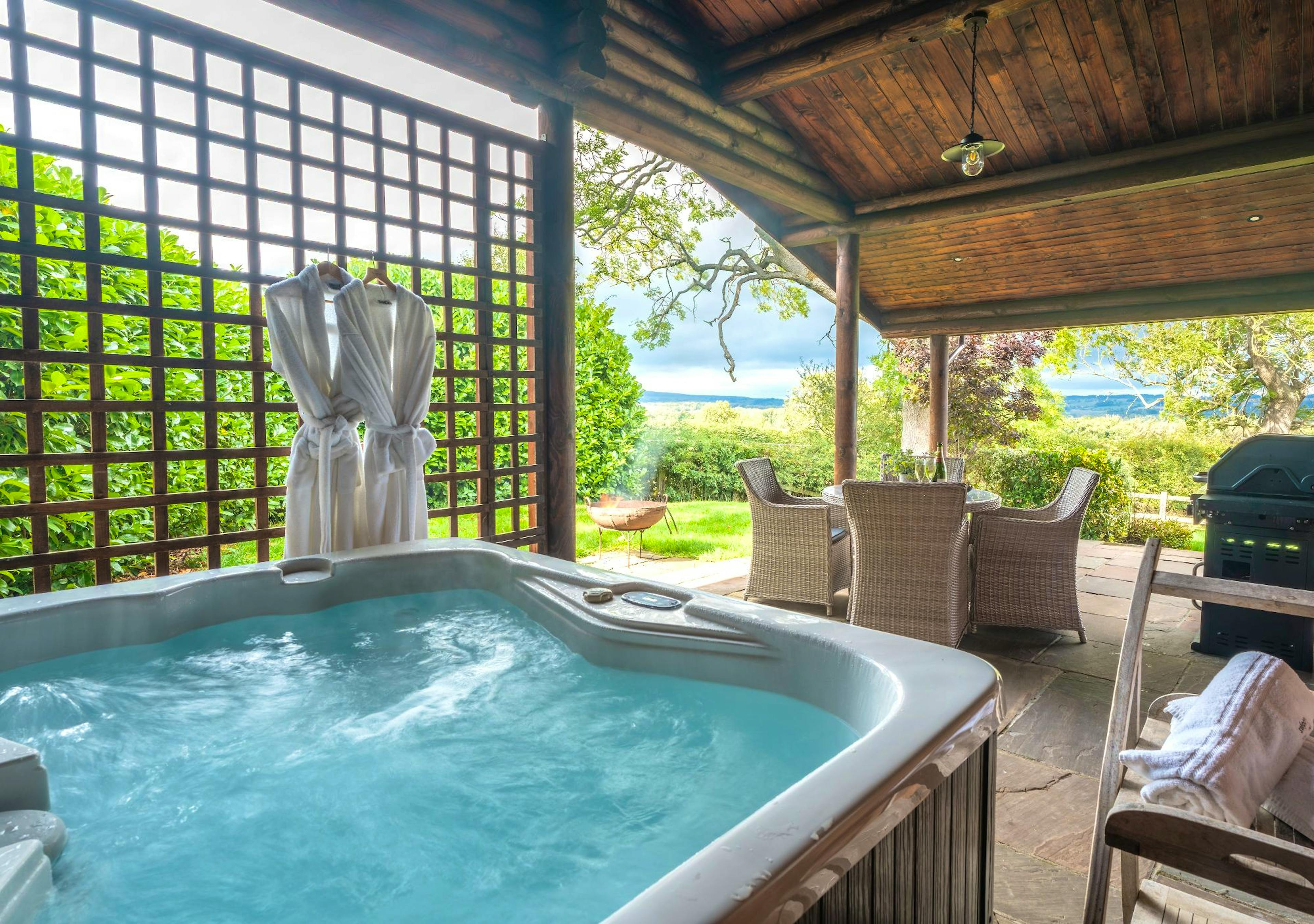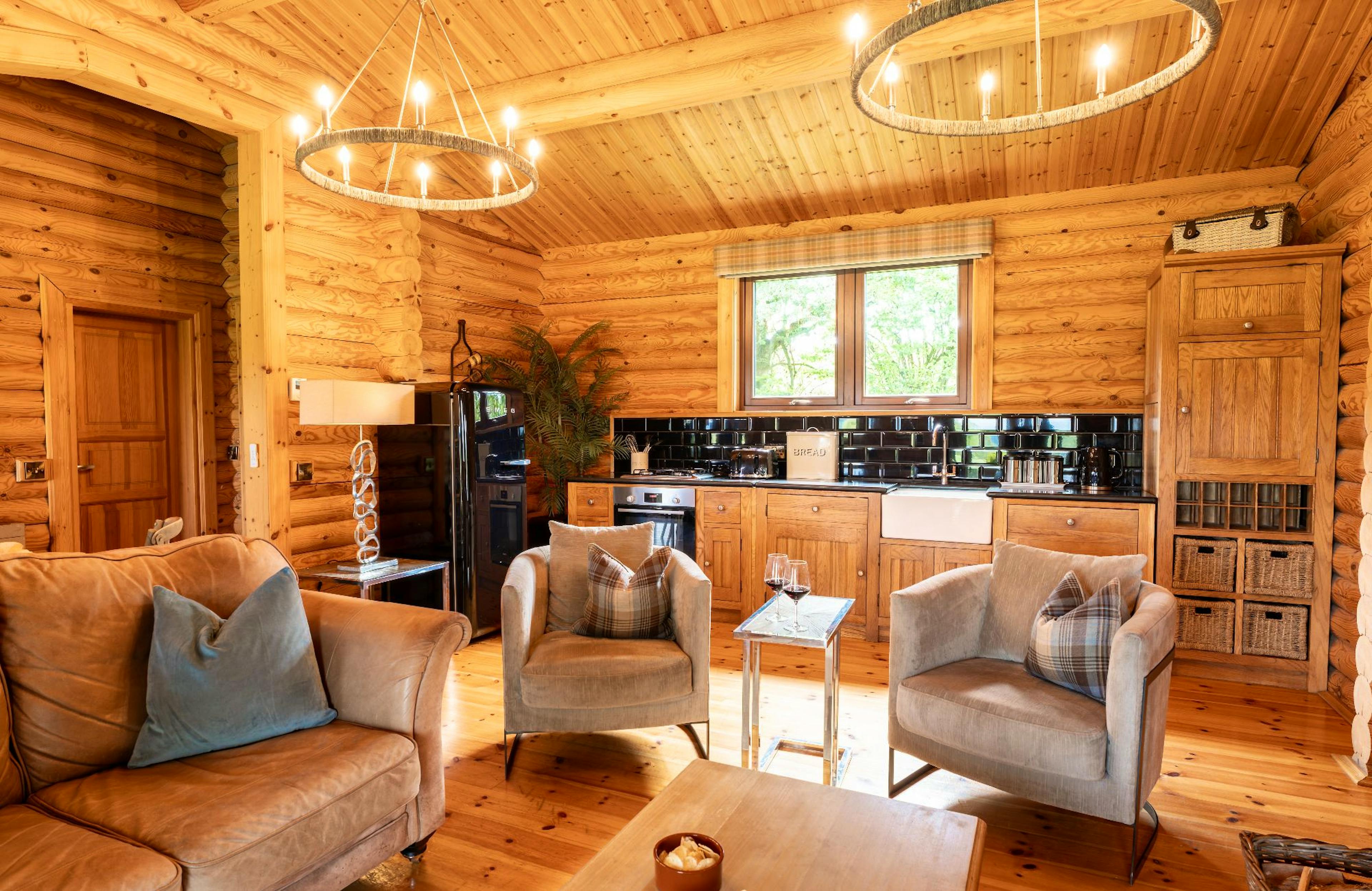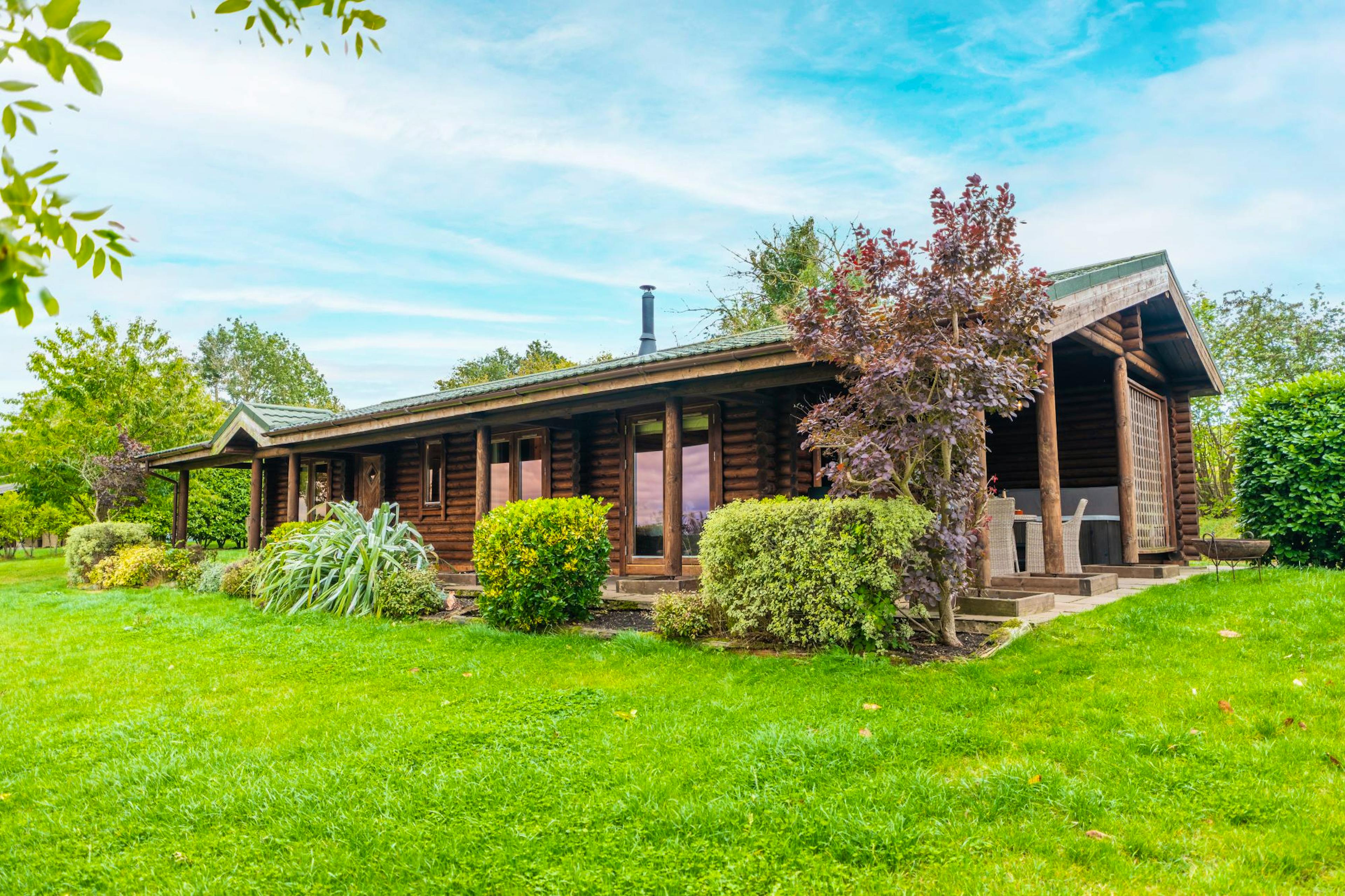 Two-bedroom luxury lodge with private hot tub, fire pit and enclosed garden, sleeping up to four guests in comfort and style.