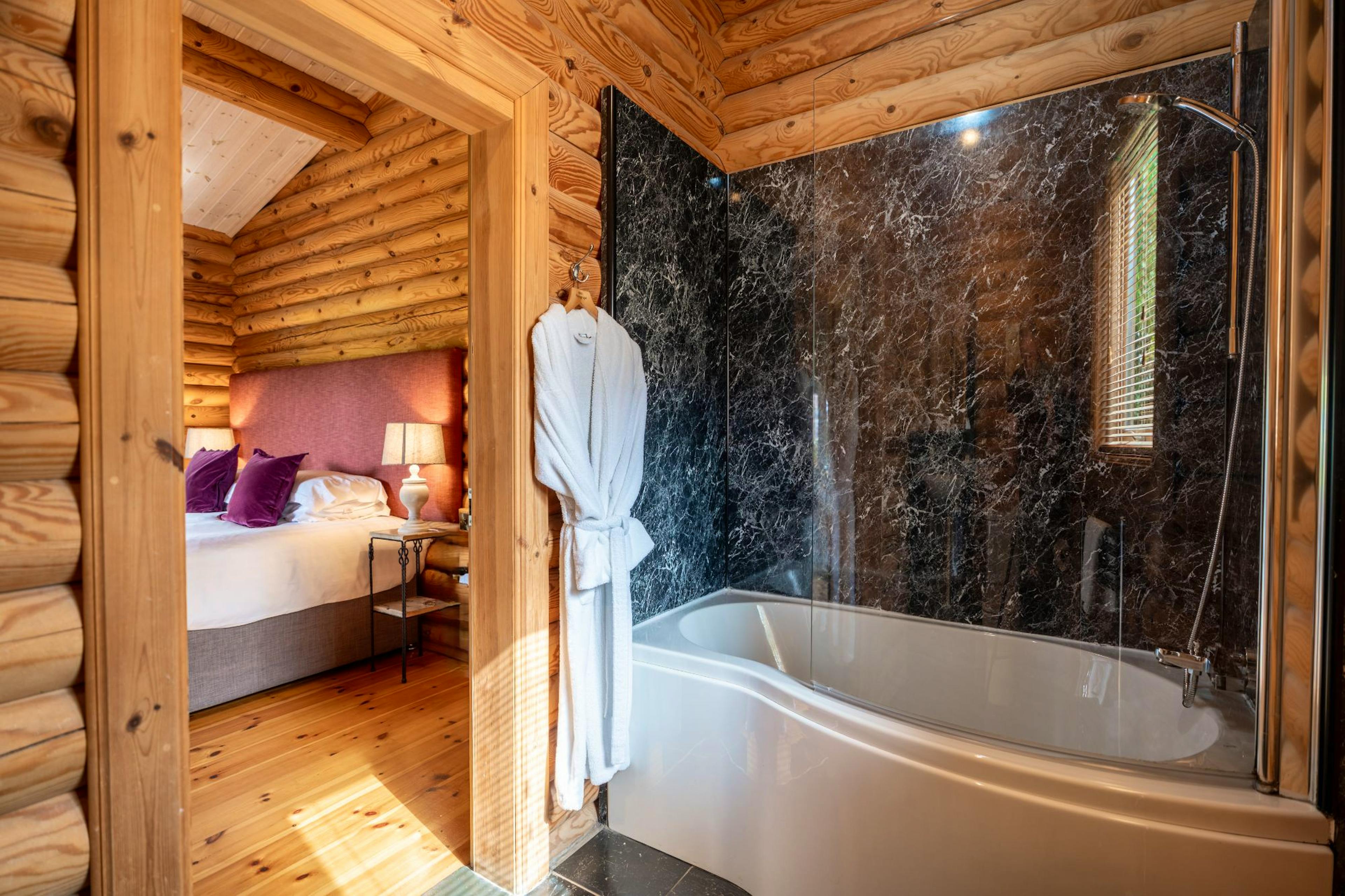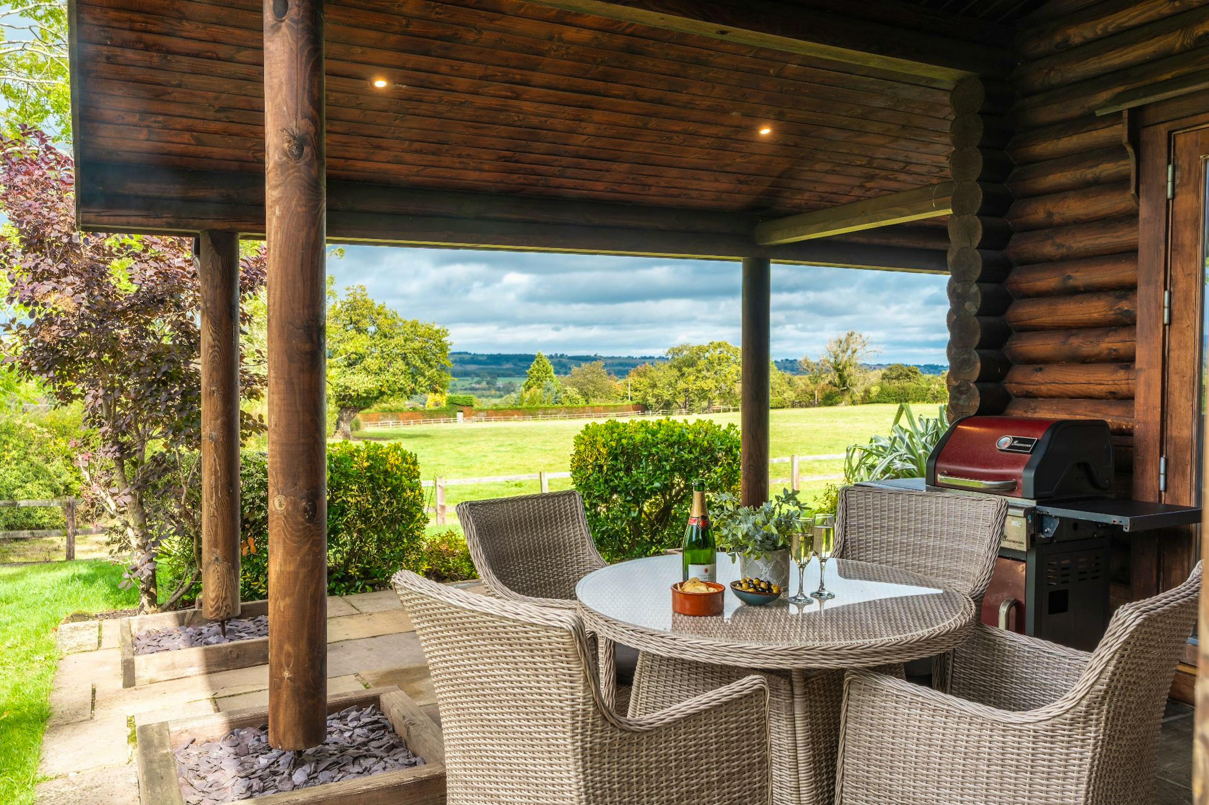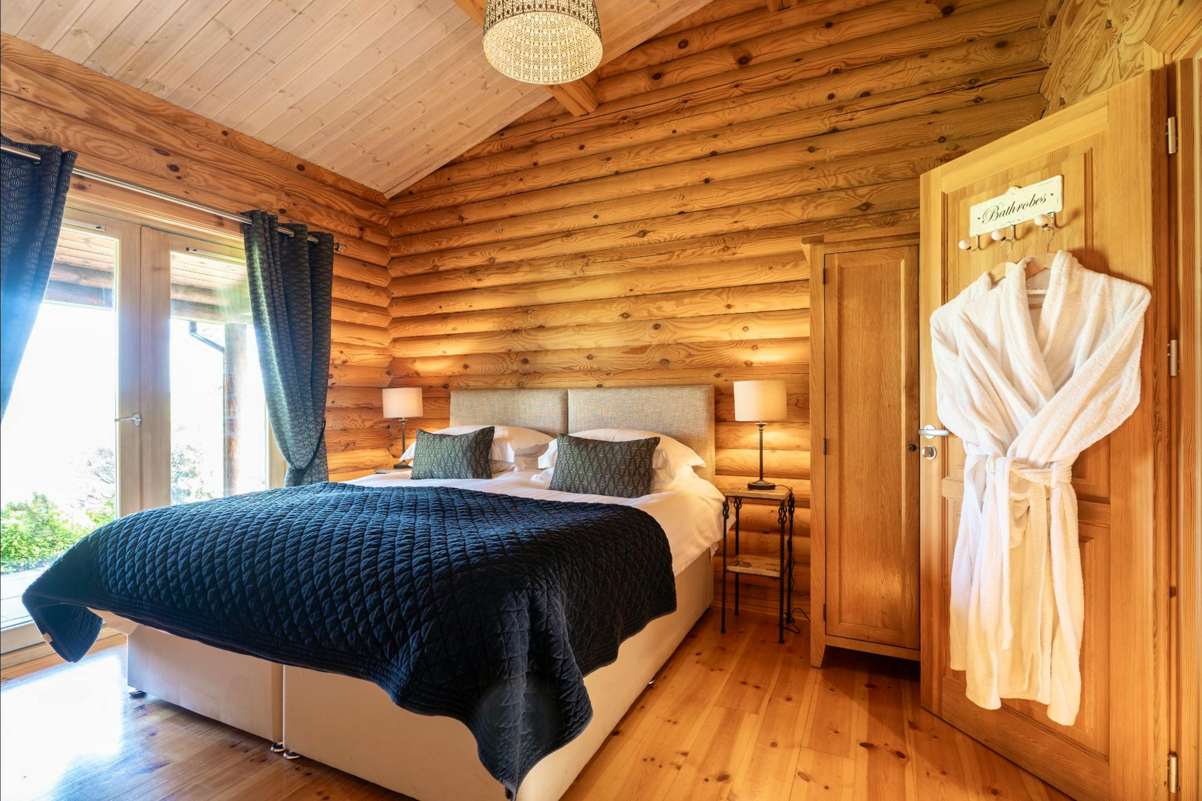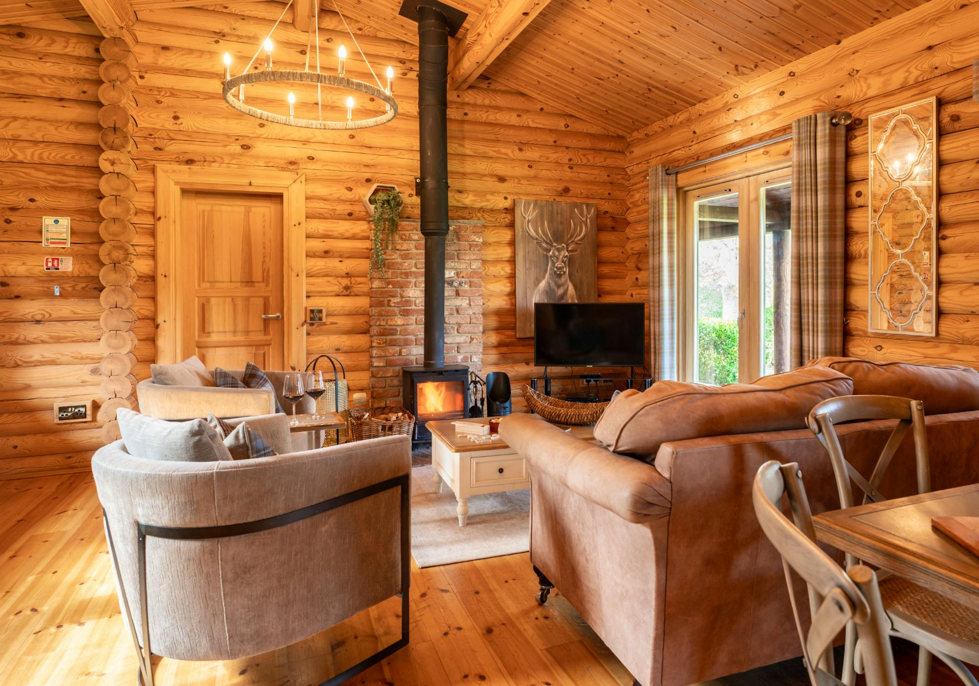 Two-bedroom luxury lodge with private hot tub, fire pit and enclosed garden, sleeping up to four guests in comfort and style.