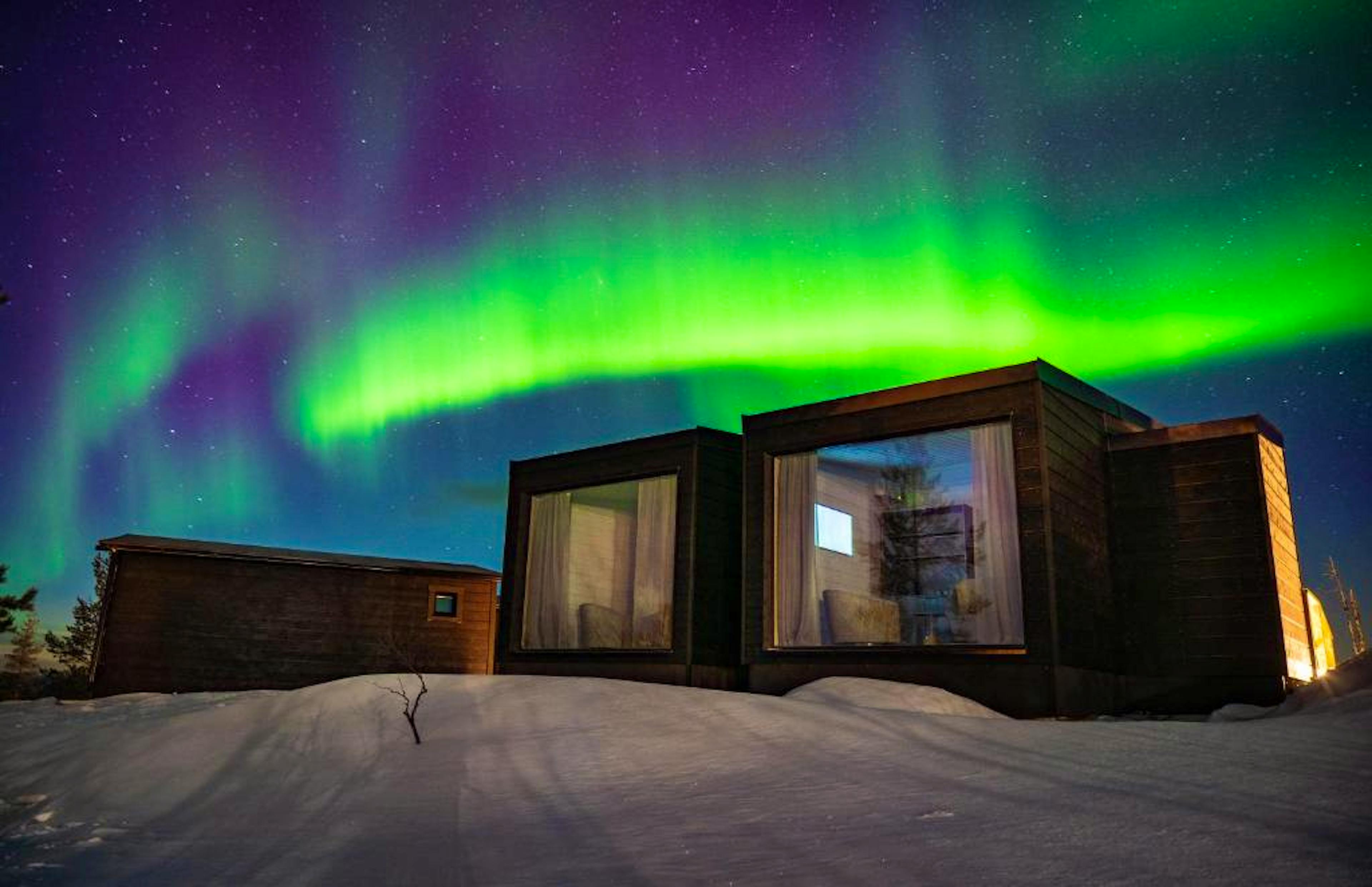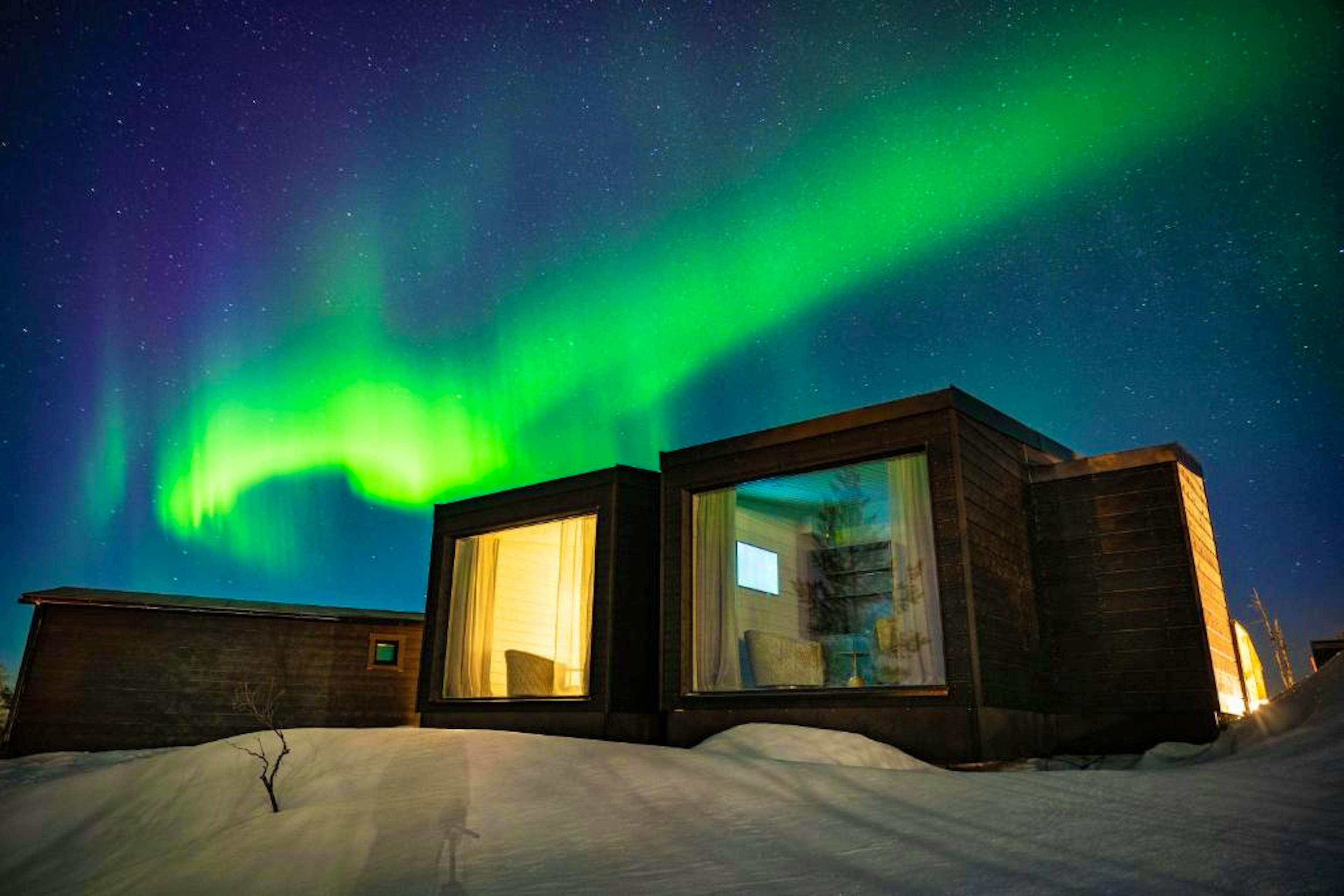Watch the Northern Lights from your bed or unwind in a private outdoor jacuzzi.