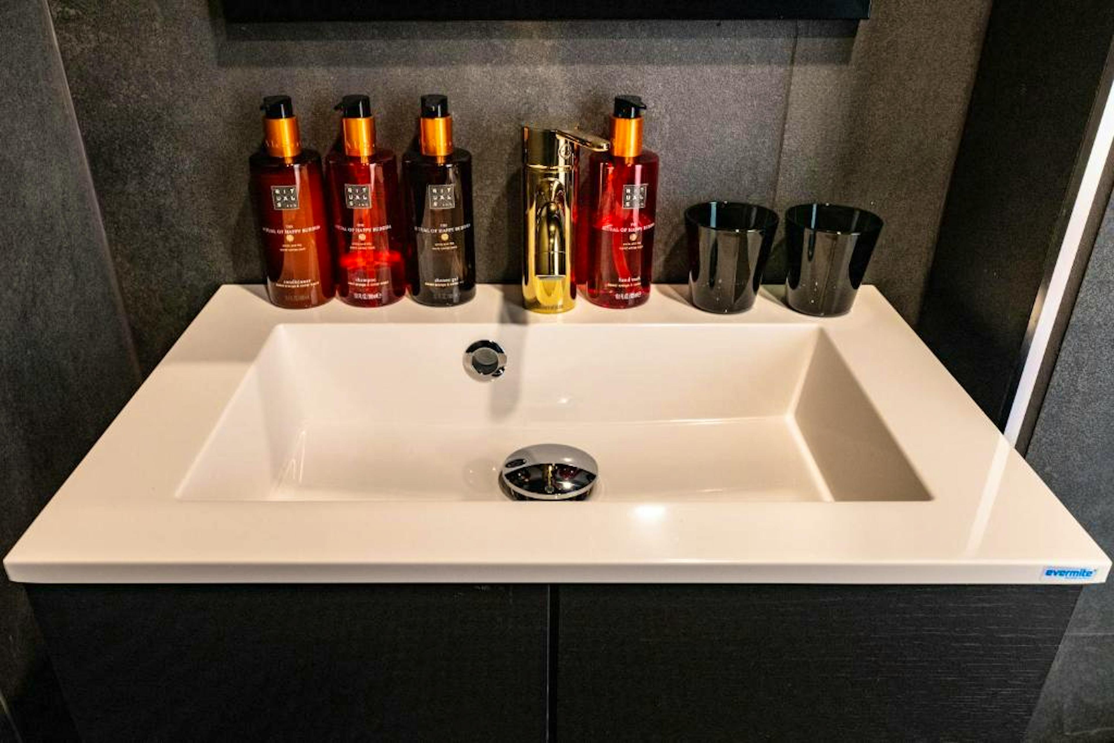 Each suite features luxurious amenities like private saunas and jacuzzis.