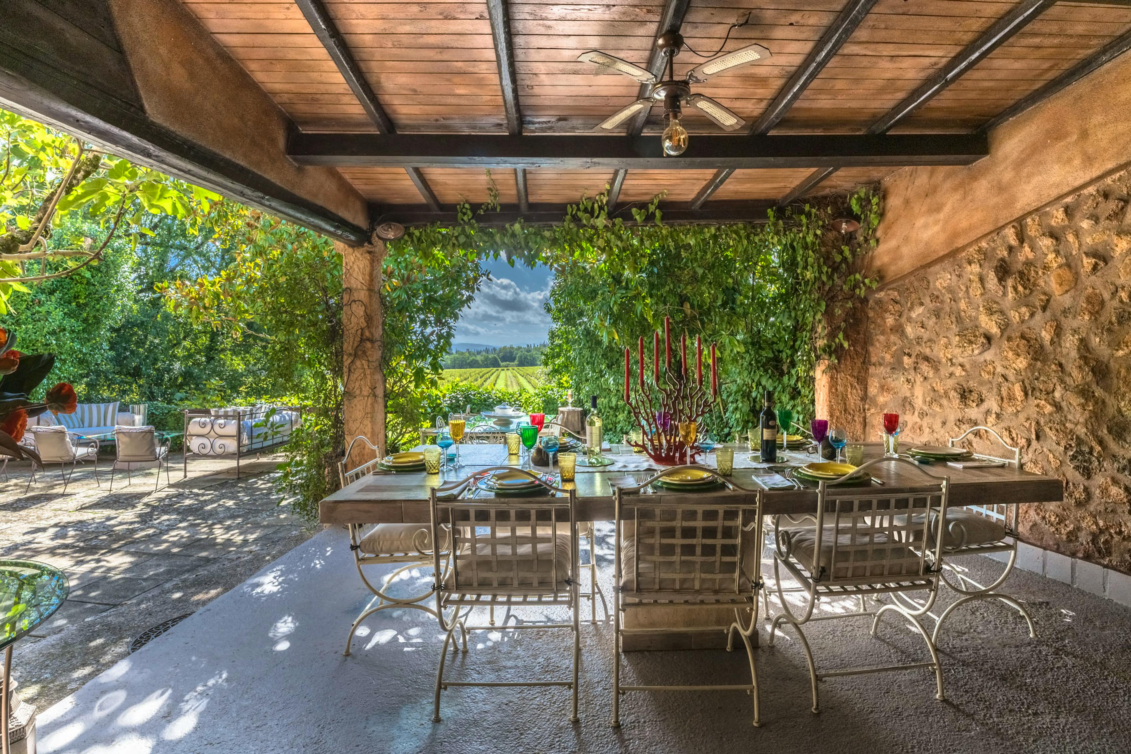 Generous alfresco dining areas beneath a shaded veranda, ideal for long Italian feasts and relaxed evenings with local wine.