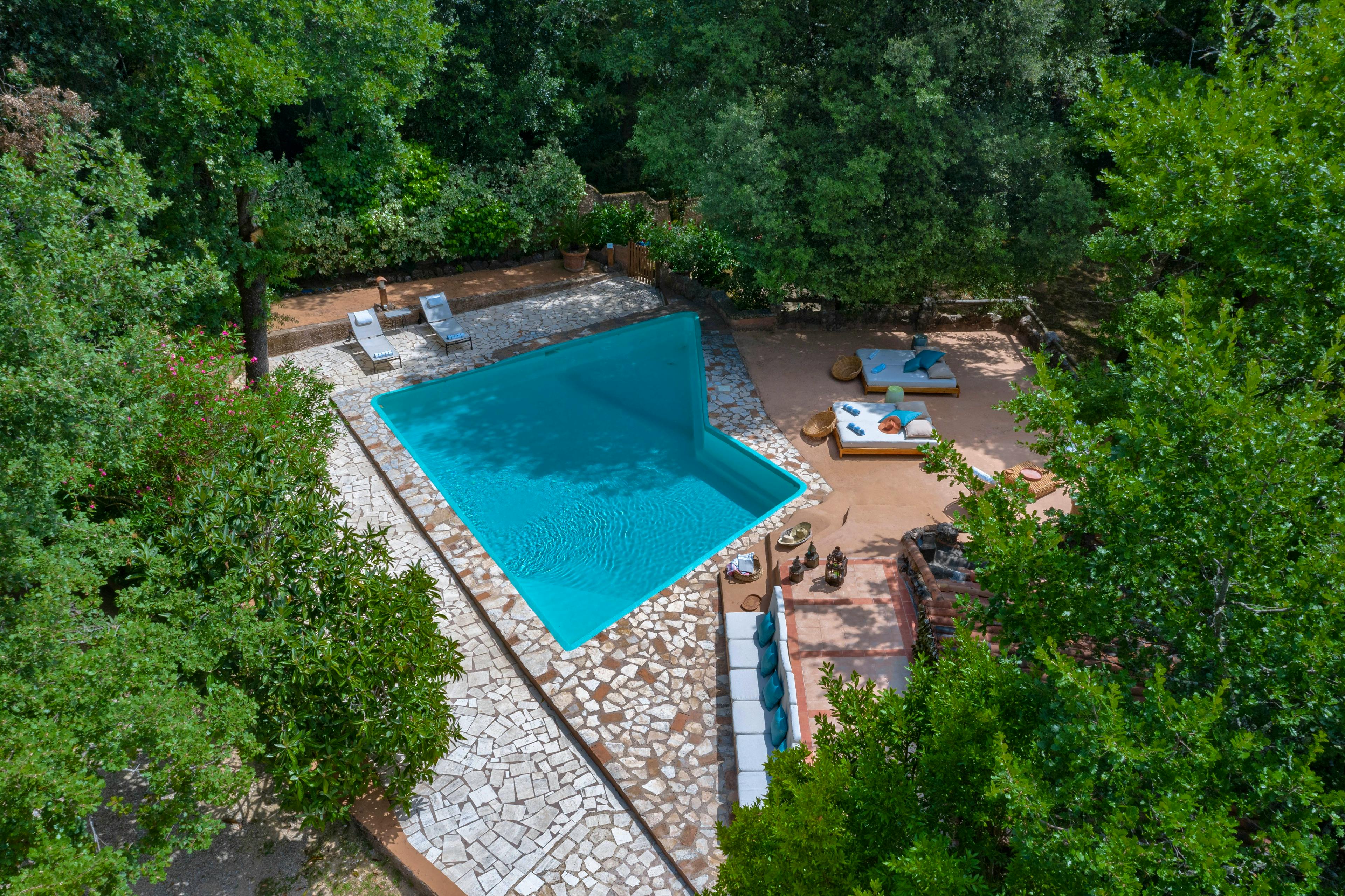 A sparkling private swimming pool set within a spacious garden, perfect for cooling off after sun-soaked afternoons exploring.