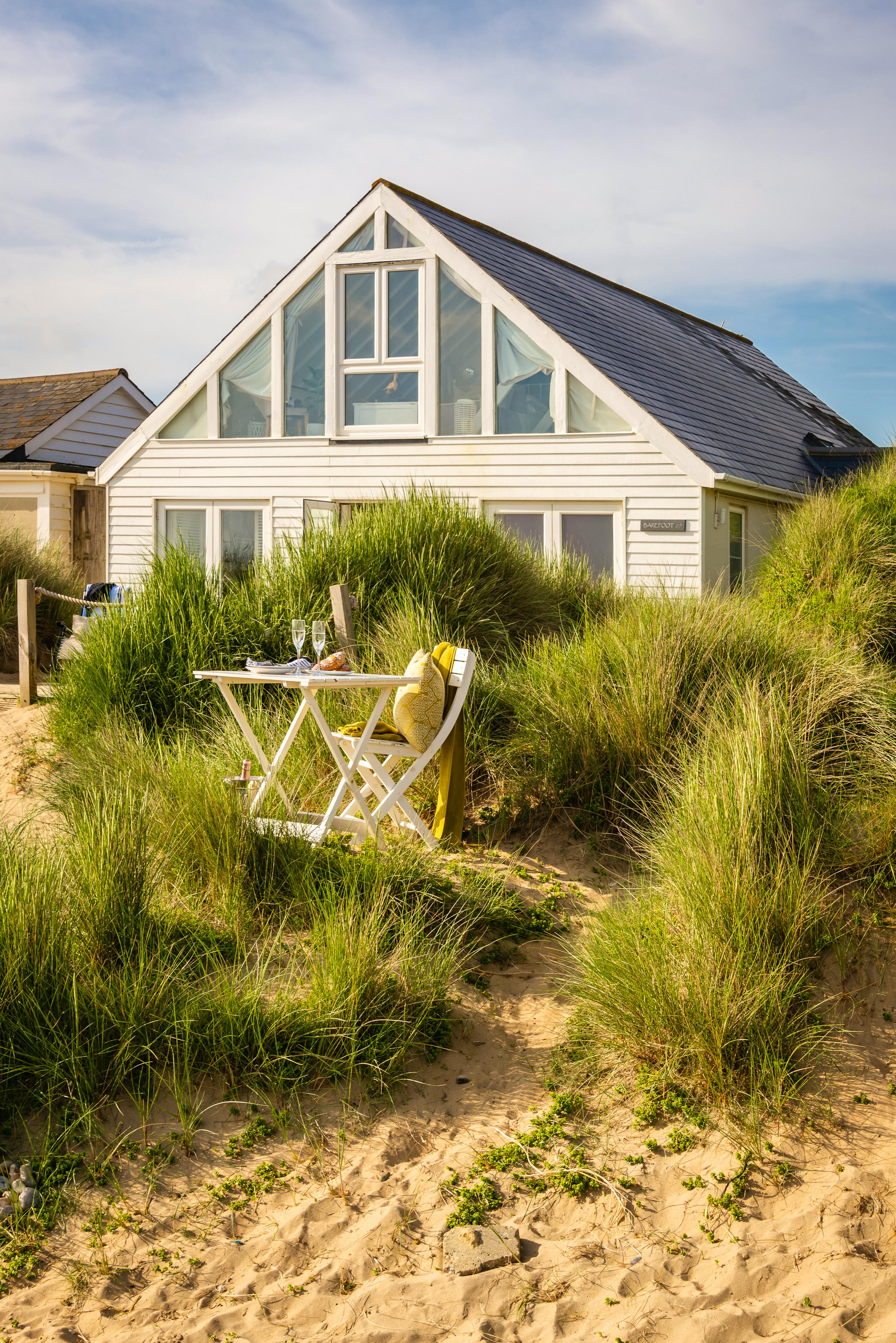 Step straight onto the beach from this stunning house nestled in a dune of the famous Camber Sands near Rye