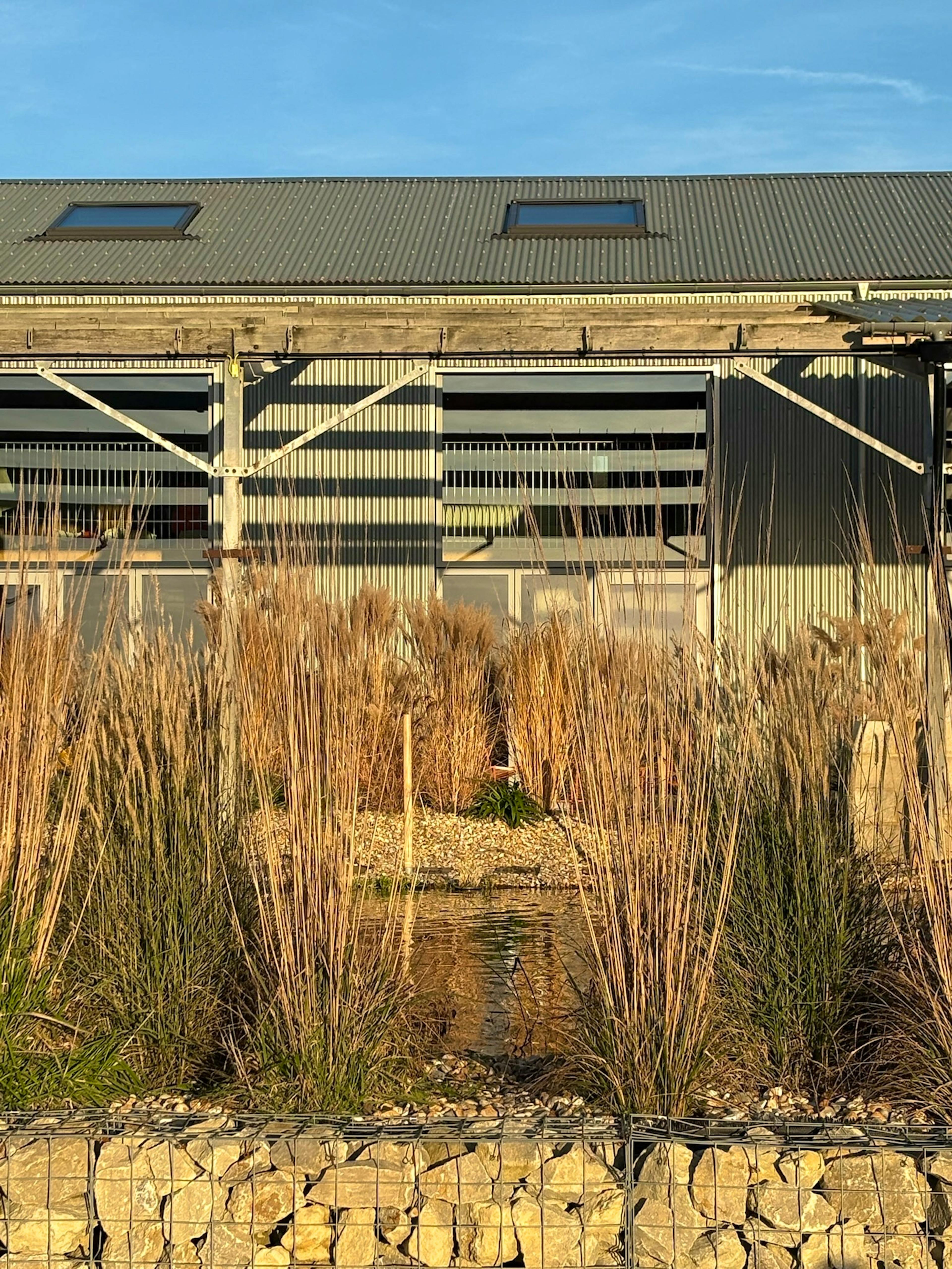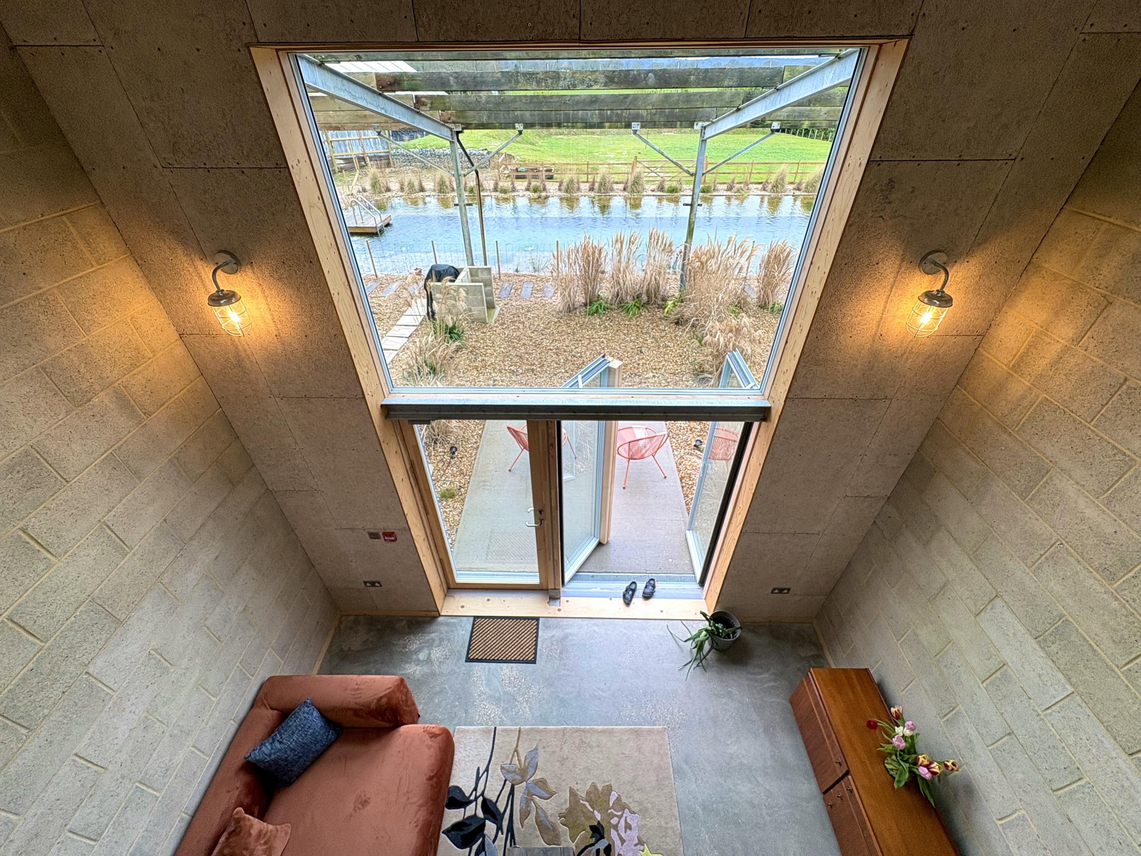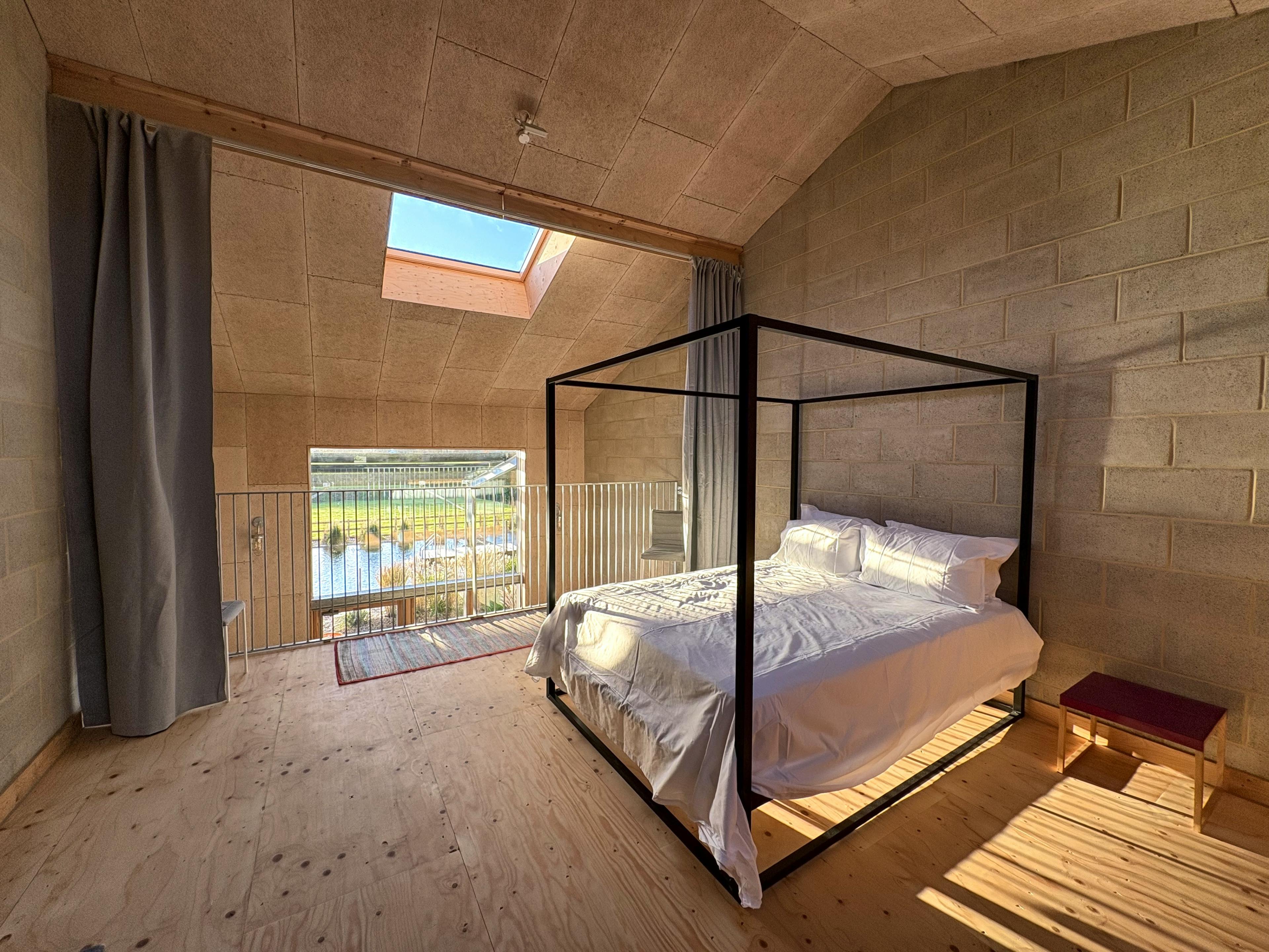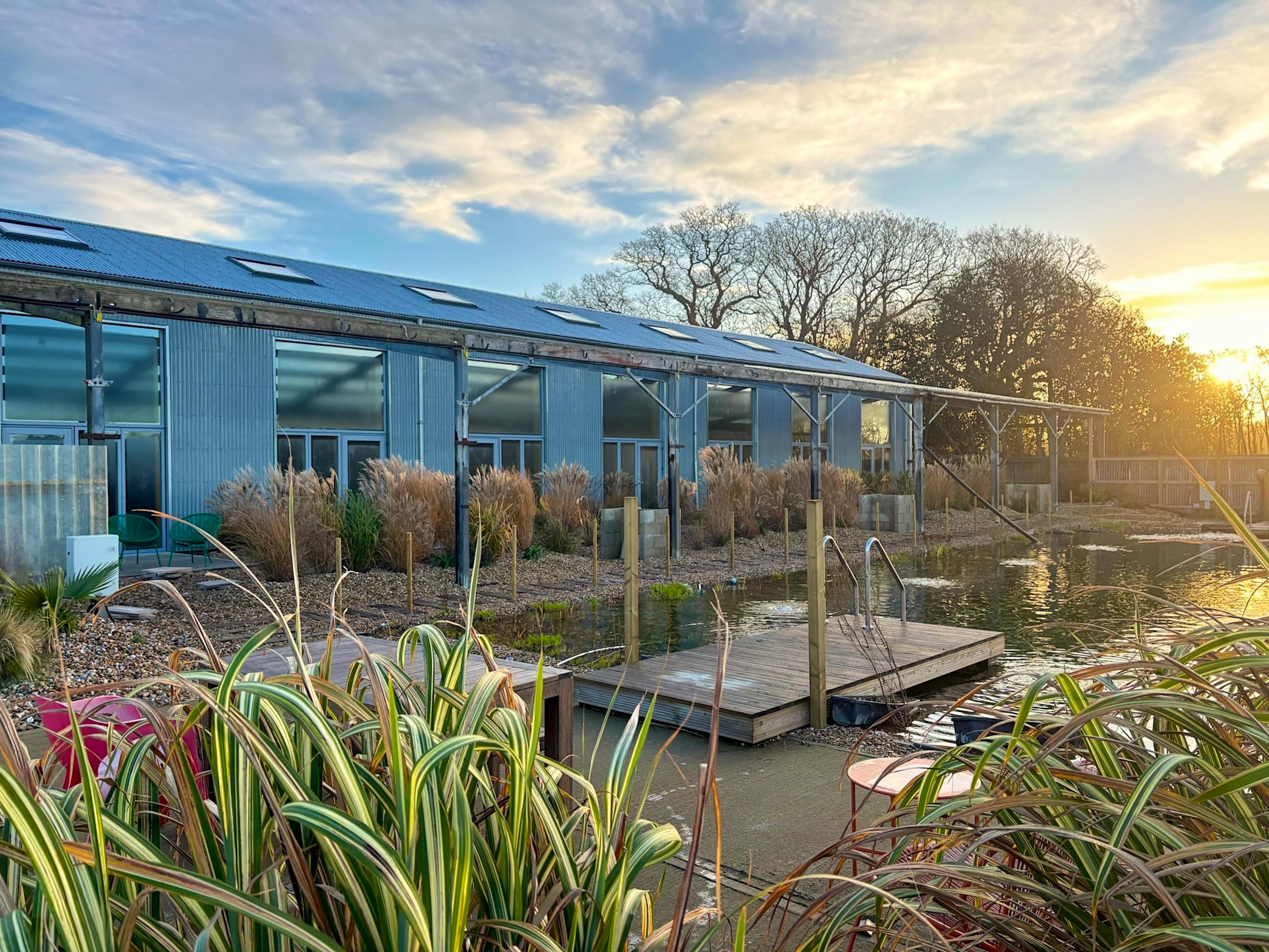 Bold eco-loft collection in the East Sussex countryside offering design-led stays with terraces and a natural swimming pond.