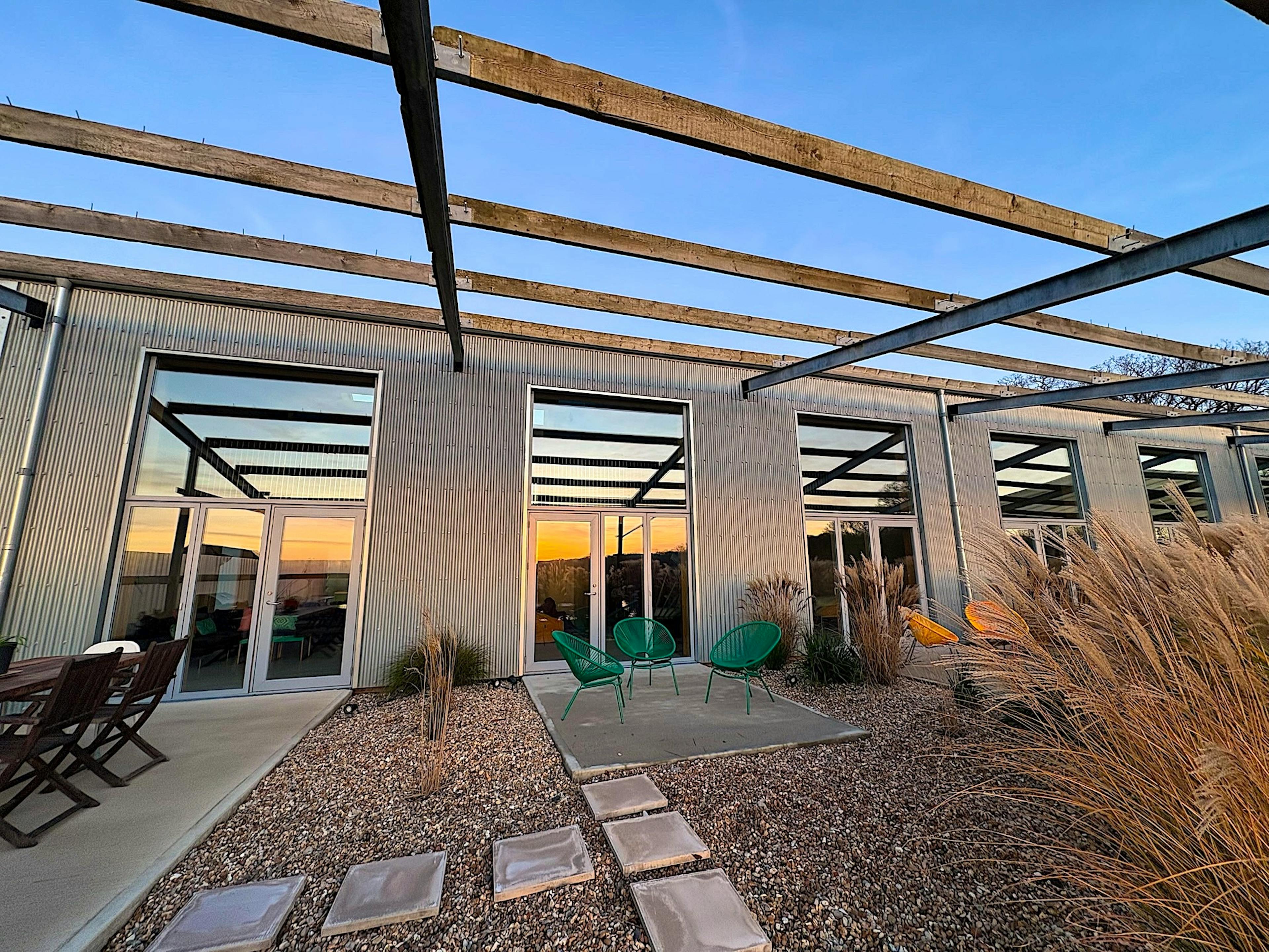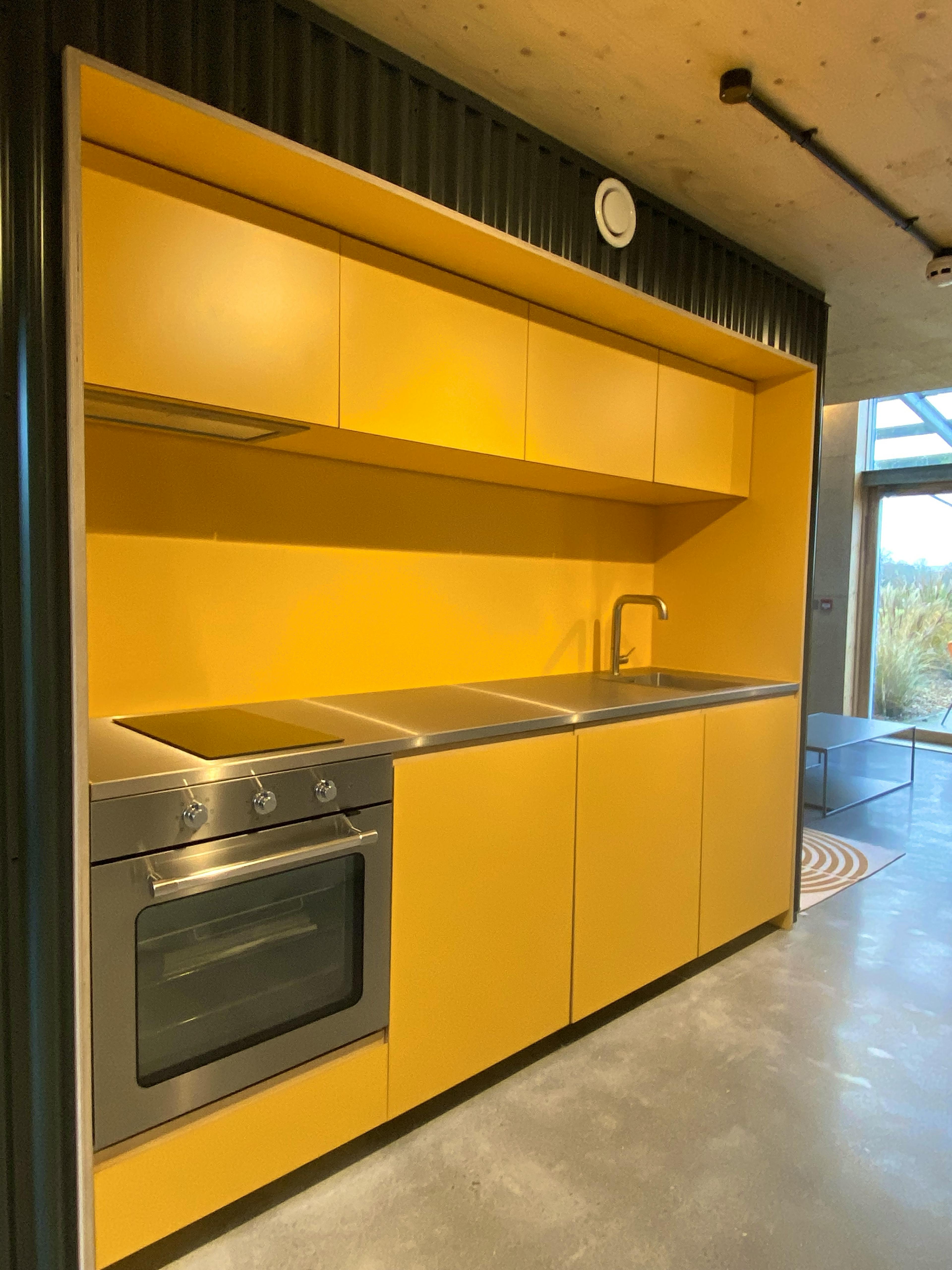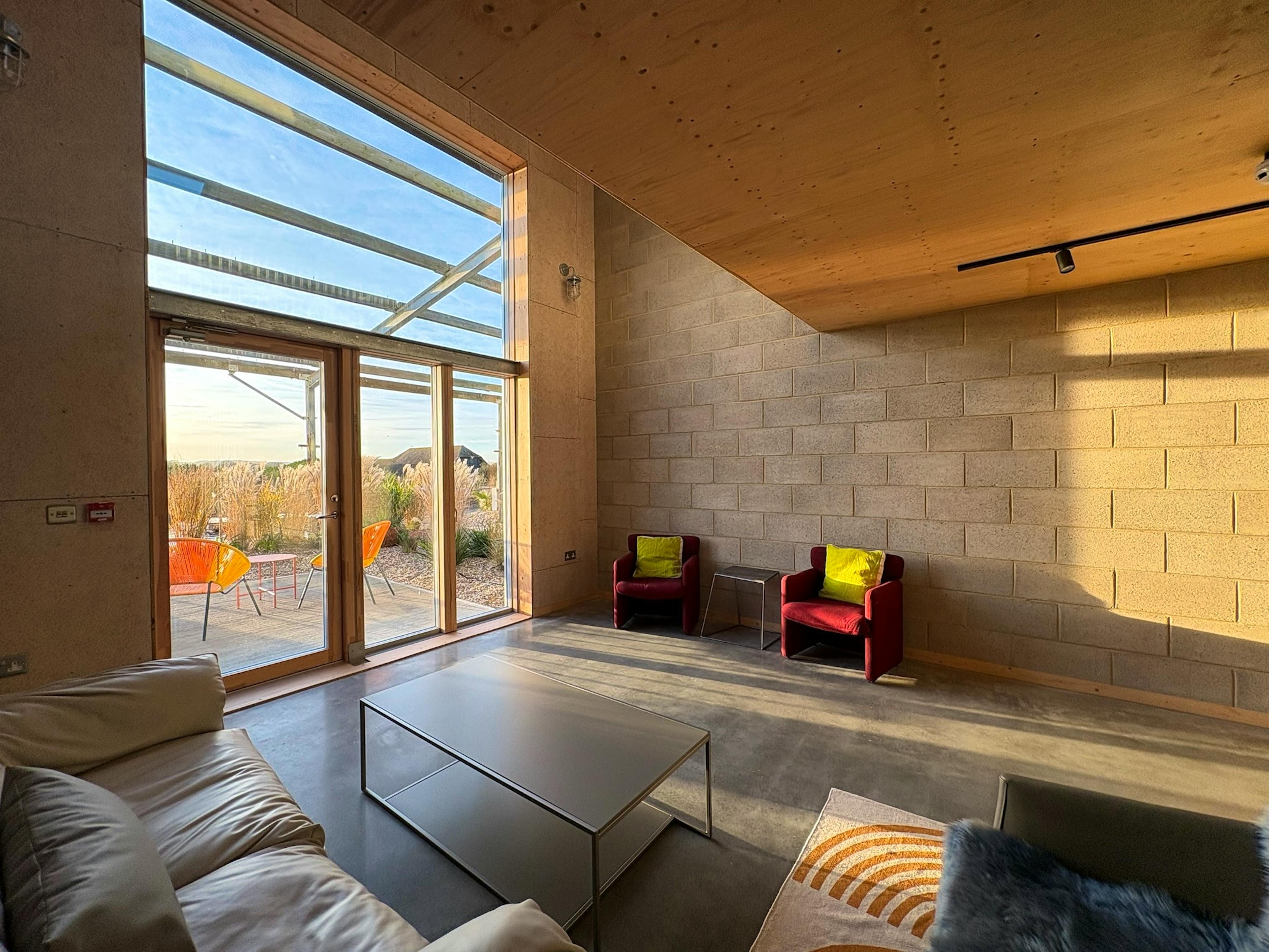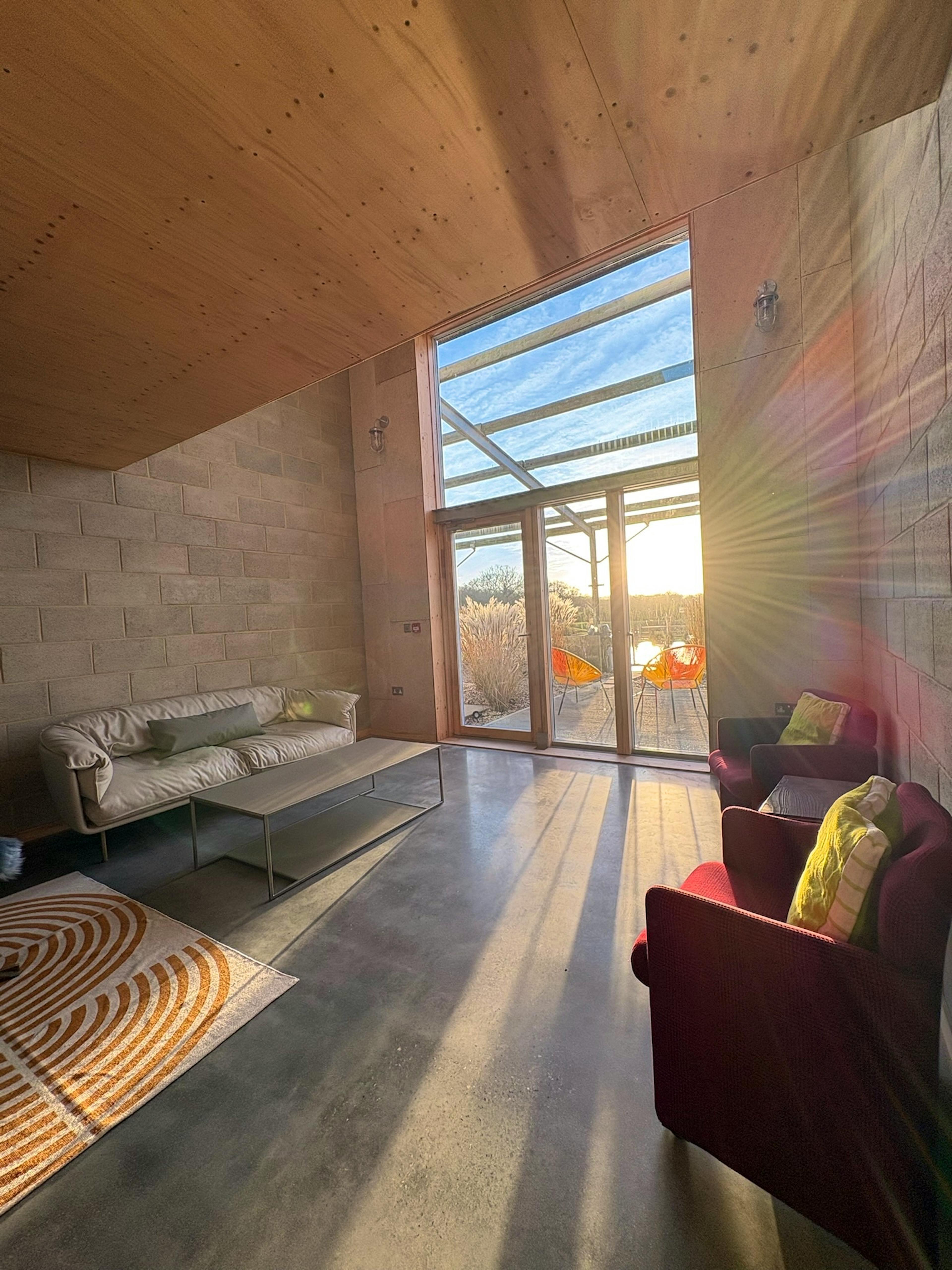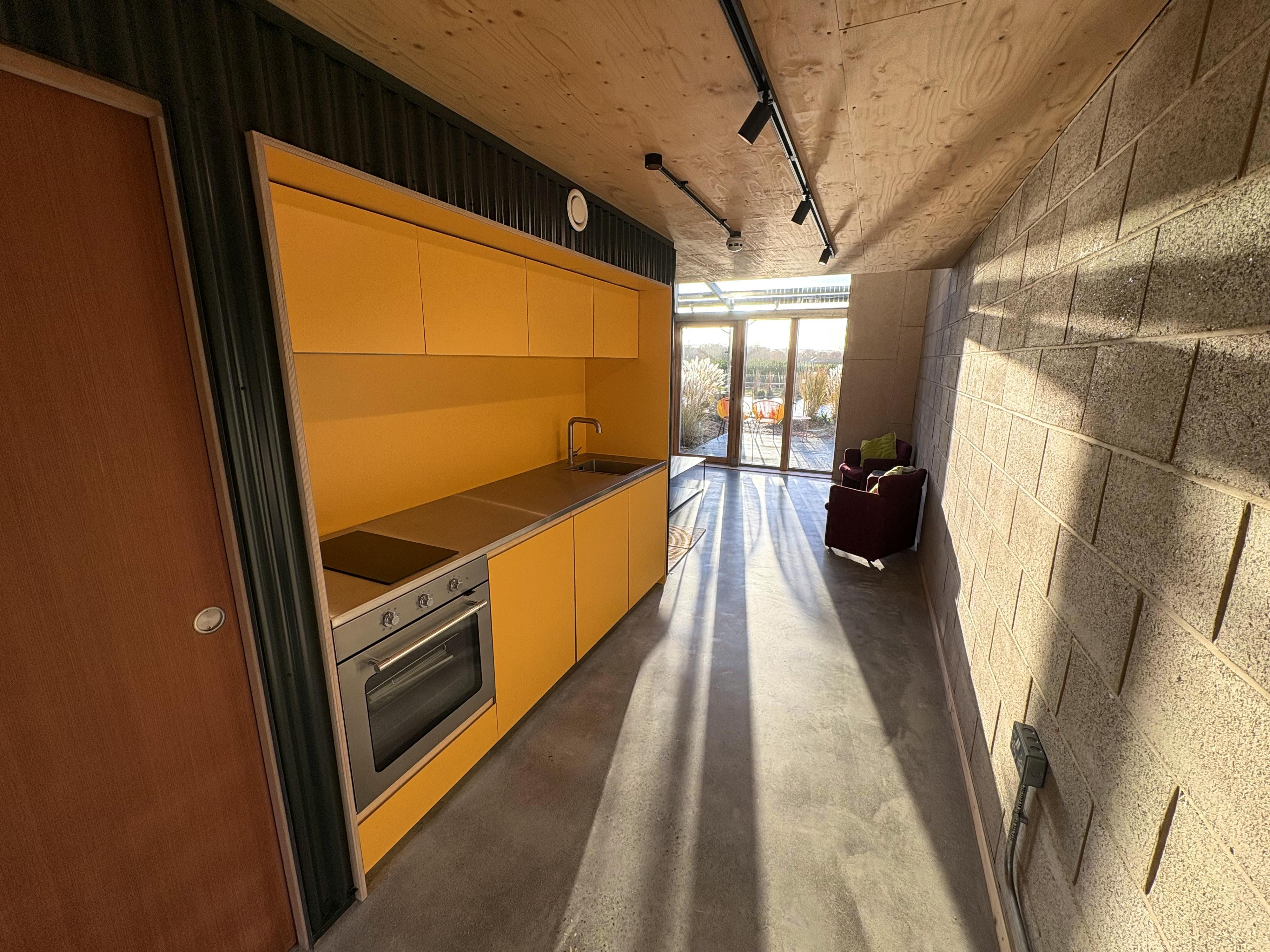 Set within a once-derelict cluster of agricultural buildings, this striking collection of eco-lofts is the result of a deeply personal and design-driven vision. Discovered at auction in 2017 by husband-and-wife team Colin and Linh, the site has been carefully transformed into a sustainable, wellness-focused retreat that celebrates reuse, creativity and thoughtful modern living. What was once a jumble of asbestos-clad barns, abandoned vehicles and overgrown brambles is now a beautifully cohesive destination, where each unit has its own distinct personality while sharing a strong architectural language. Yellow, Rusty, Stainless and Blue sit side by side, unified by bold industrial forms, natural materials and an uncompromising commitment to low-impact design. Each loft is formed within a reimagined agricultural structure, embracing dramatic double-height volumes, polished concrete floors and exposed blockwork. Colour plays a leading role here. From the sunshine-yellow kitchen of the Yellow loft to the oxidised steel walls of Rusty, the cool metallic sheen of Stainless and the rich blue tones of Blue, every space feels individual, expressive and confidently designed. Sleeping between two and four guests, the lofts are ideal for couples, friends or small families. King size beds sit on mezzanines overlooking the living spaces below, while clever additional sleeping areas, including playful beach-hut-style bunks, make the layouts flexible without ever feeling compromised. Designer furniture, carefully considered lighting and tactile finishes create interiors that feel both gallery-worthy and genuinely comfortable. Sustainability runs through every detail. A fabric-first approach underpins the entire development, with timber frames from responsibly managed forests, recycled wood fibre insulation and airtight construction delivering impressive comfort year-round. Air source heat pumps and MVHR systems quietly regulate temperature and air quality, while triple glazing keeps the spaces calm and insulated. These are buildings designed to feel good to stay in, as well as to tread lightly on the land. Outside, private terraces invite slow mornings and long evenings, while shared landscaped grounds open out into meandering paths, wildflower meadows and a natural swimming pond. It’s a place to disconnect, breathe deeply and reconnect with nature, without giving up design, comfort or character. This is not just a place to stay, but a bold example of what thoughtful rural reuse can become. From big-sky countryside to wild coastline, rural East Sussex is made for slow exploring and spontaneous adventures. Spend your days wandering ancient woodland and rolling farmland, or follow winding lanes to hidden vineyards, farm shops and characterful country pubs. Head south for bracing walks along the cliffs of the Seven Sisters, beachcombing at Camber Sands or swimming in quiet coves along the coast. History lovers can explore ruined abbeys, smugglers’ towns and medieval castles, while foodies will find everything from coastal seafood shacks to destination dining tucked away in villages. Whether you’re hiking, cycling, swimming or simply mooching with a coffee in hand, East Sussex rewards curiosity at every turn.