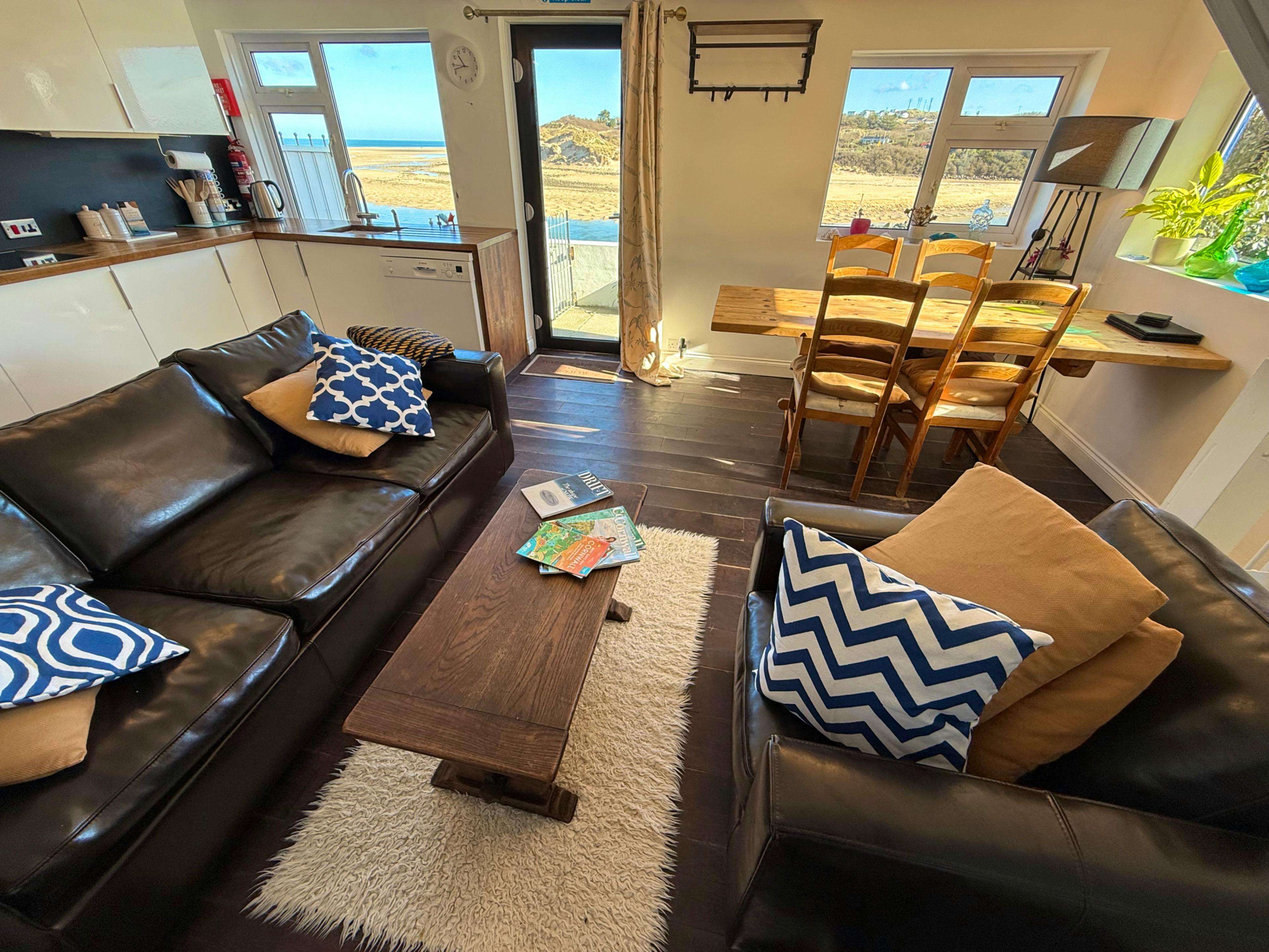 Stunning waterfront home with hot tub and sun terrace overlooking the huge sandy beach, with glorious views of St Ives Bay.