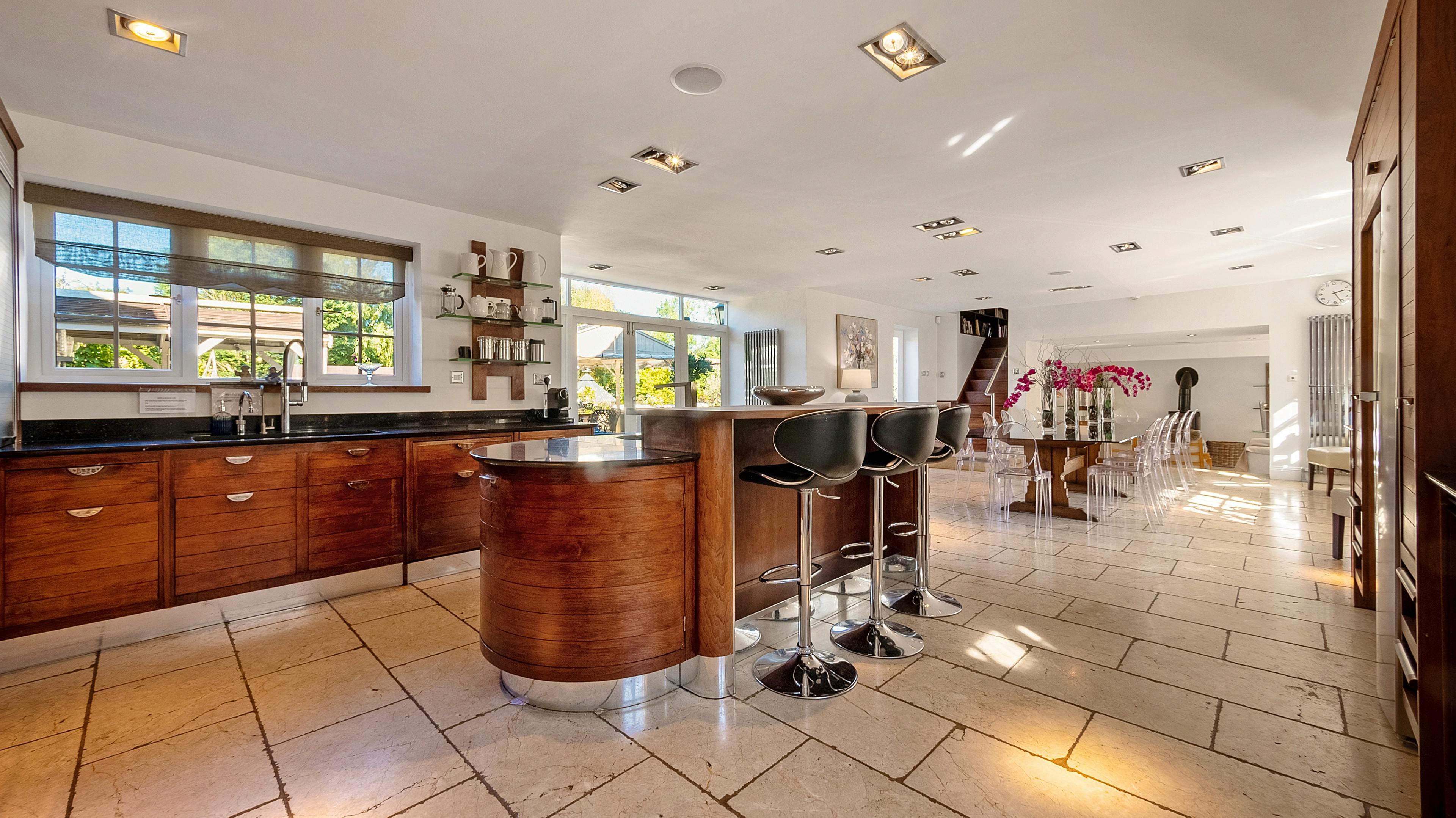 Elegant main house with six flexible bedrooms, wood-burning fires and a fully equipped Smallbone kitchen perfect for group feasts.