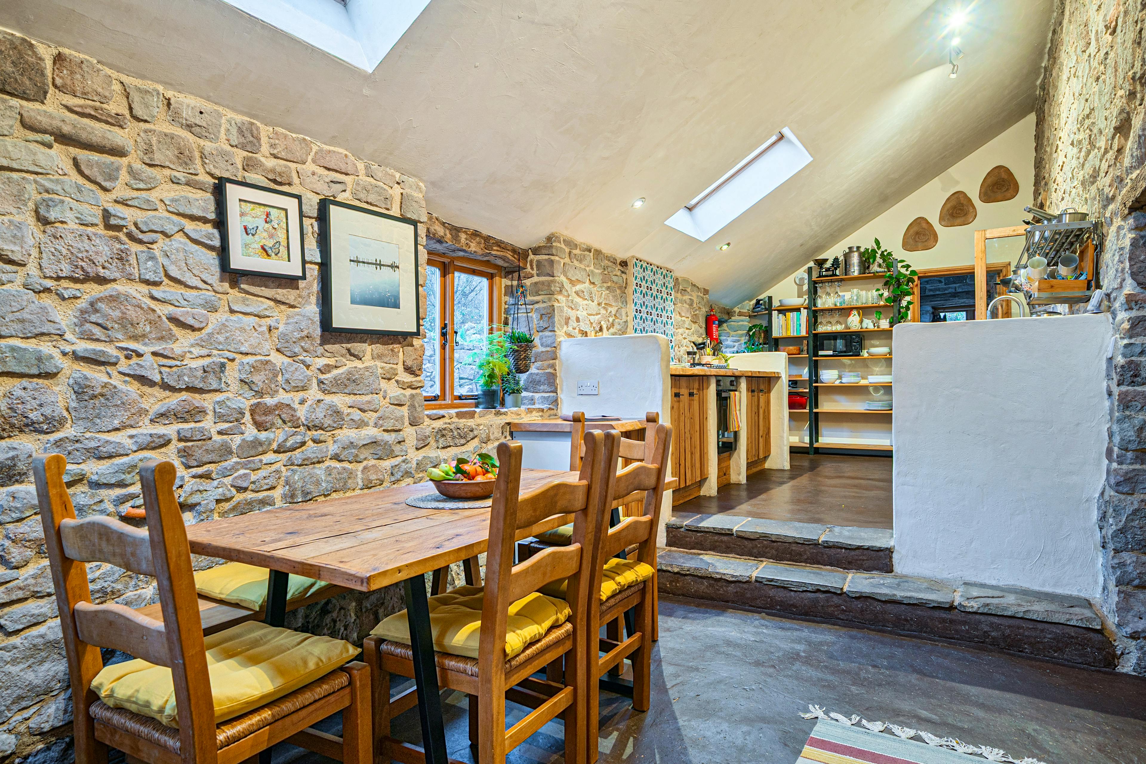 Tucked away in ancient woodland near the village of Brockweir, Birch Cottage is one of those places that immediately slows your pace. A beautifully restored stone cottage set deep in the Wye Valley, it offers total tranquillity, dark skies for stargazing and a wonderfully thoughtful eco approach that lets nature take centre stage. Wake to birdsong, wander straight onto legendary walking trails and end the day sweating it out in your own private woodland sauna. Inside, the cottage sleeps up to six guests across three inviting double bedrooms. The master bedroom sits upstairs, accessed via its own staircase from the living room, and features a king size bed and ensuite shower room. Two further ground-floor double bedrooms share a spacious family bathroom with both a bath and separate shower, making the layout ideal for families, friends or walking groups. The heart of the cottage is the cosy living room, where deep sofas and a wood burner create a snug retreat in every season. Flick on a film, curl up with a book or simply enjoy the glow of the fire after a long day outdoors. Heating and hot water are sustainably powered by a wood-burning boiler and solar thermal panels, with electric heaters available as backup. Next door, the kitchen dining room is a sociable space designed for relaxed meals and long conversations. Built using locally sourced ash slabs and recycled pallet wood, it blends rustic charm with modern appliances, making cooking together a pleasure. Step outside and you’ll find one of Birch Cottage’s standout features: a secluded sauna cabin tucked into the woodland. With a cold shower and peaceful forest views, it’s the perfect place to unwind after walking Offa’s Dyke Path or exploring Tintern Abbey. The Wye Valley is right on your doorstep, with footpaths, viewpoints and riverside walks leading straight from the cottage. Tintern Abbey is close by, while Monmouth, the Forest of Dean, Bristol, Bath and Cardiff are all within easy reach for day trips. A village shop and café in Brockweir is just a mile away, rounding off this wonderfully restorative escape.