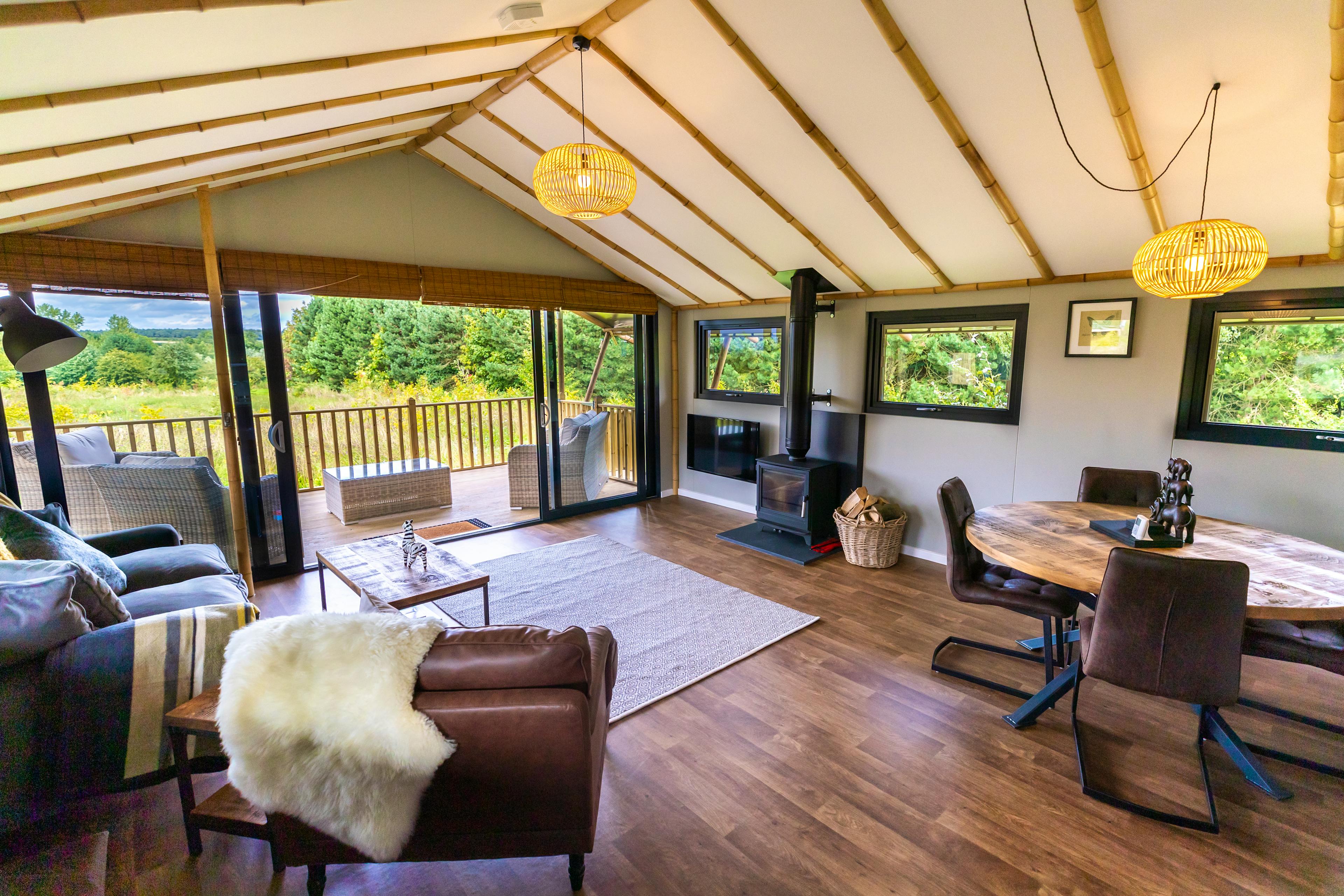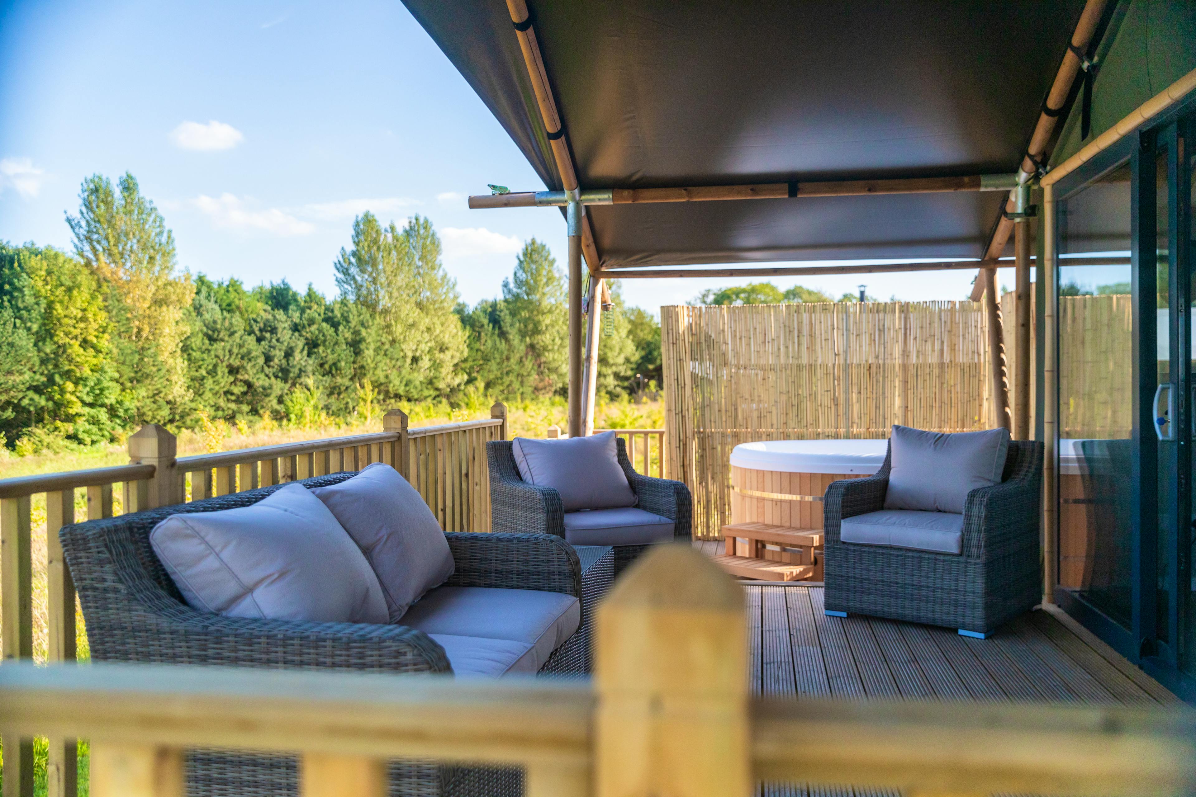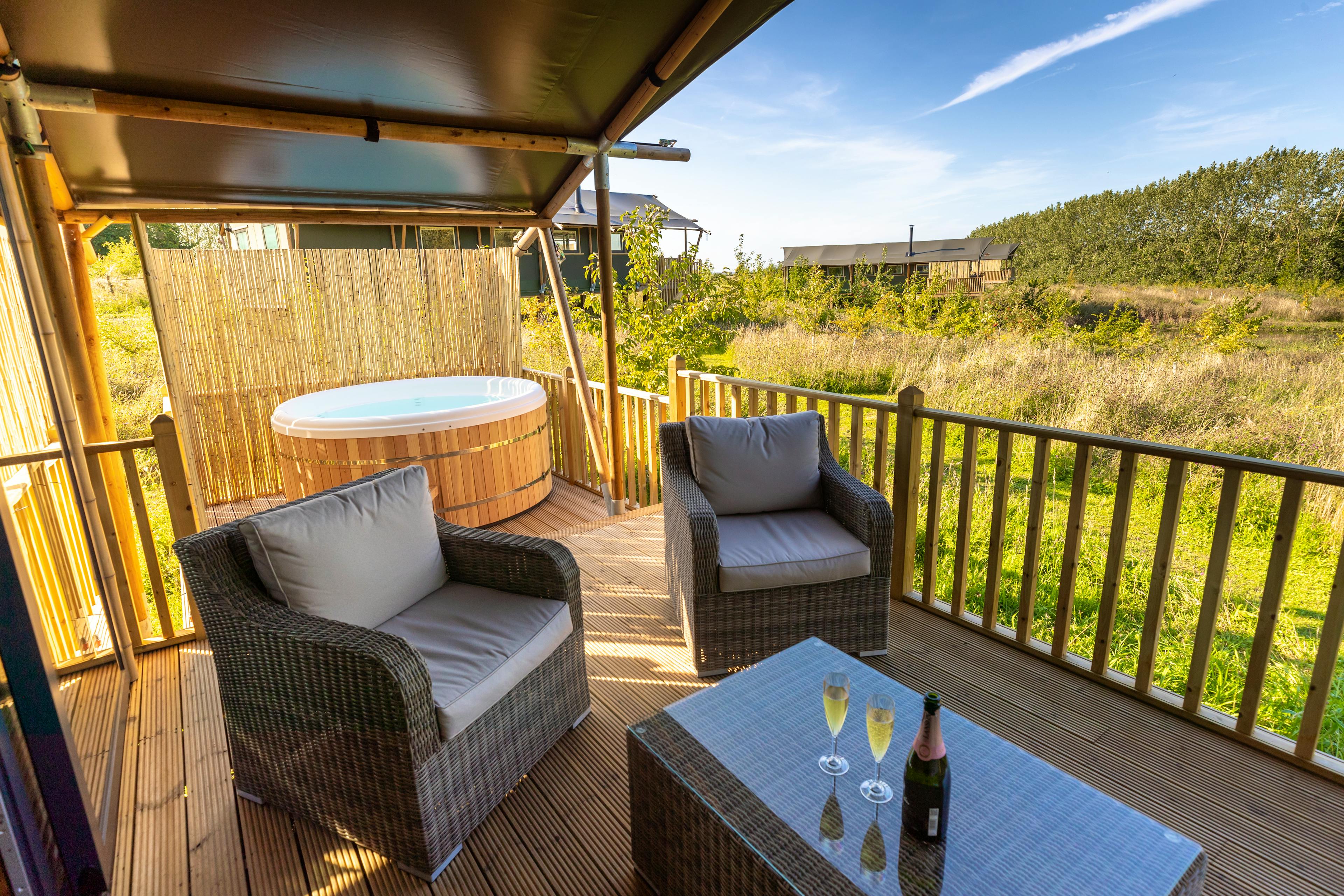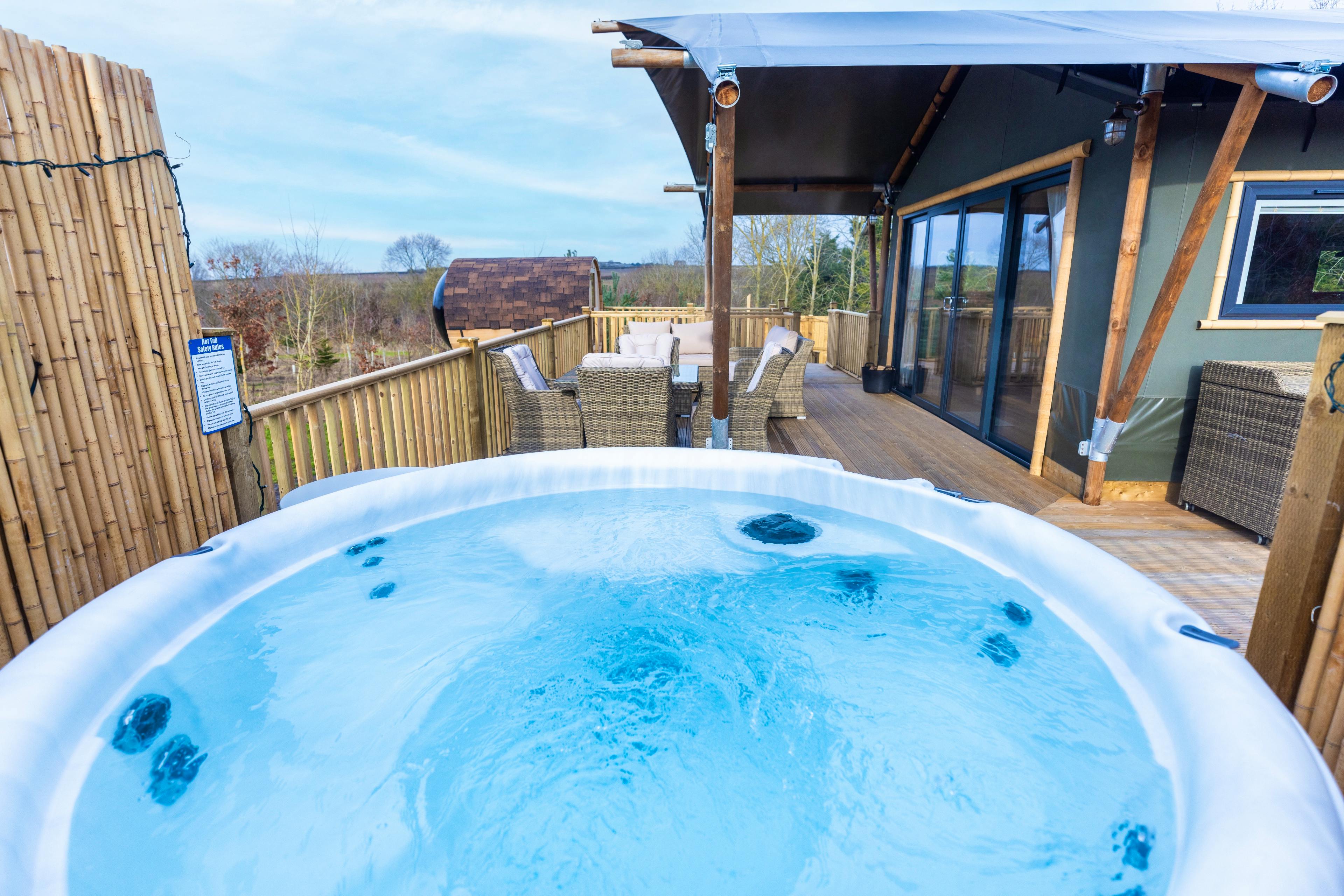 Enjoy a luxury glamping experience complete with a private hot tub - set among woodland and meadows in Nottinghamshire at Birdholme Glamping.