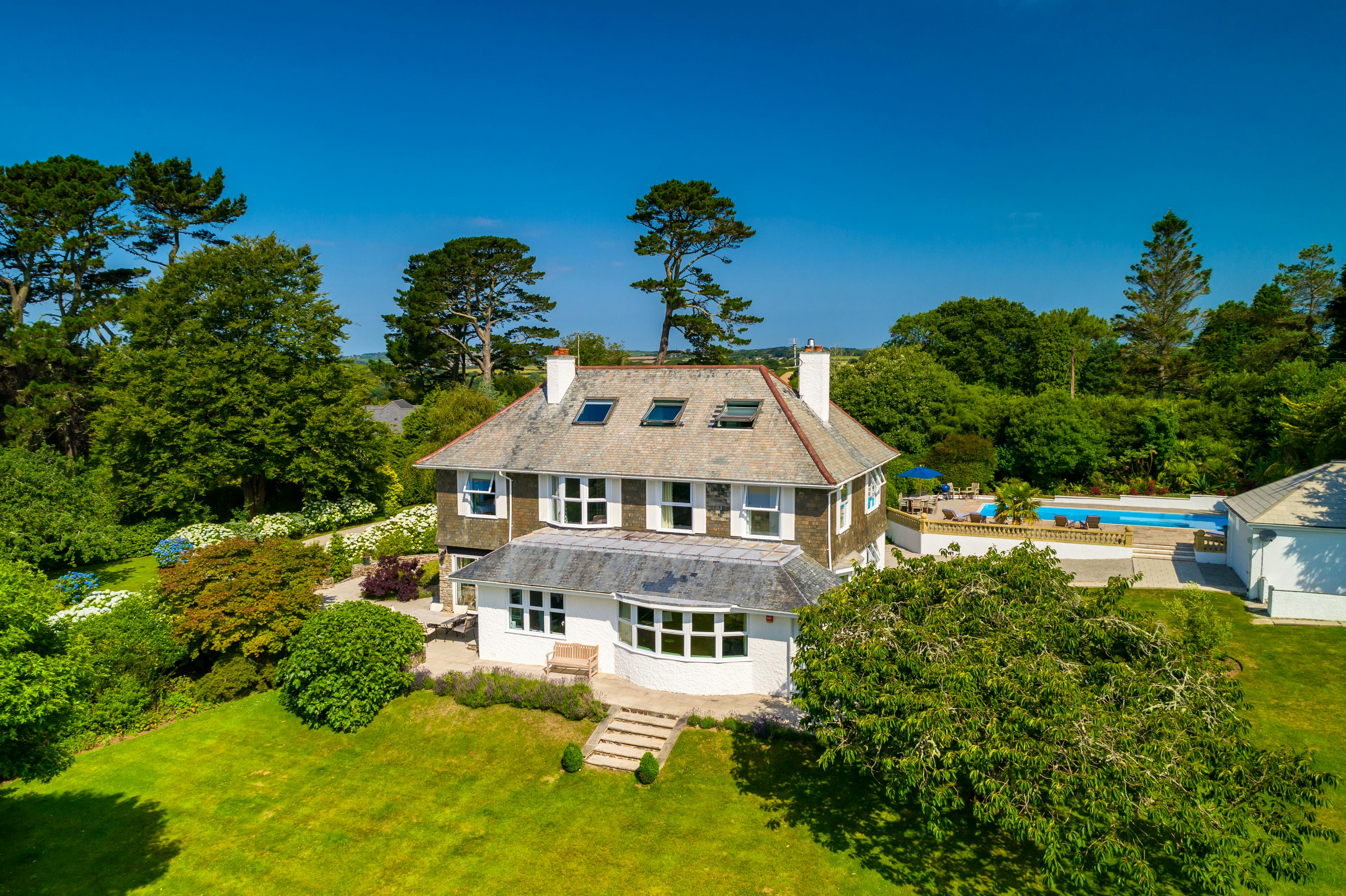 This beautiful property in a quiet idyllic location is nestled minutes away from the Helford River. In close proximity to many coves and beaches it’s a 20 minute drive to Falmouth. This lovely property, with a large well kept garden and pool, offers a quiet restful retreat. The house is immaculately maintained with a tasteful decor, quality linens and a well equipped kitchen. Regular housekeeping ensures our stay felt like a cross between a boutique hotel and a home from home. We had a lovely holiday with our adult children, 4 young grandchildren as well as our 2 golden retrievers. We all loved it! We would definitely book again.