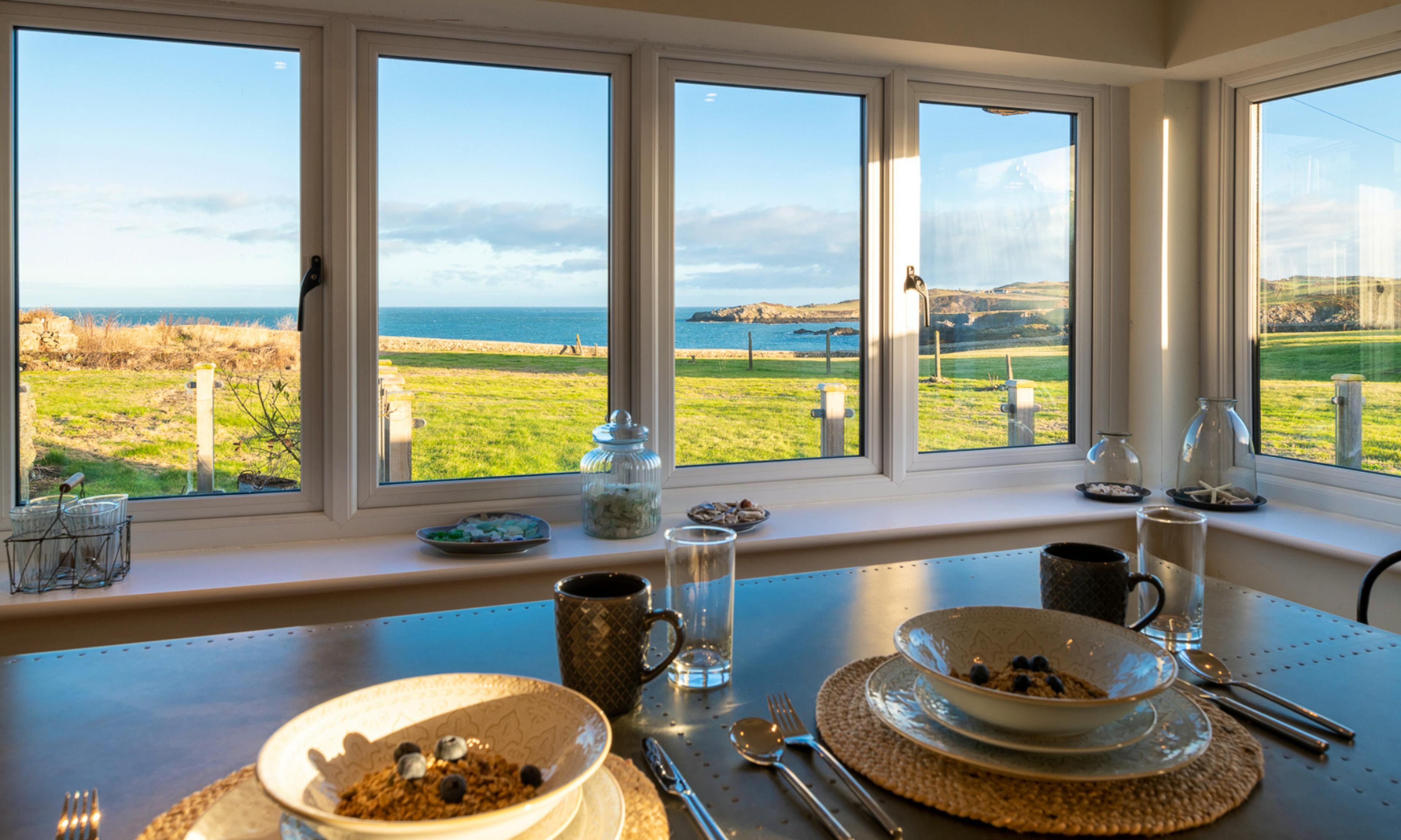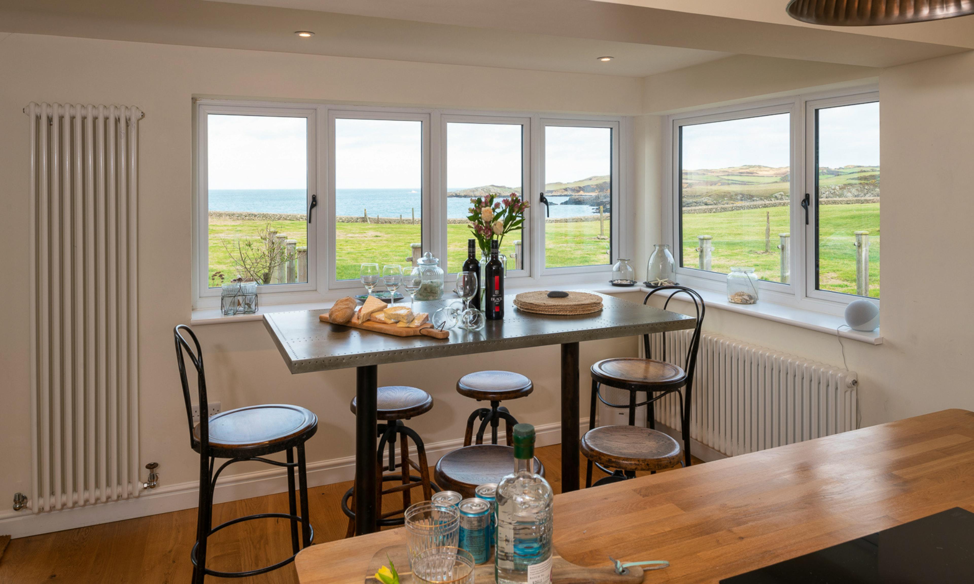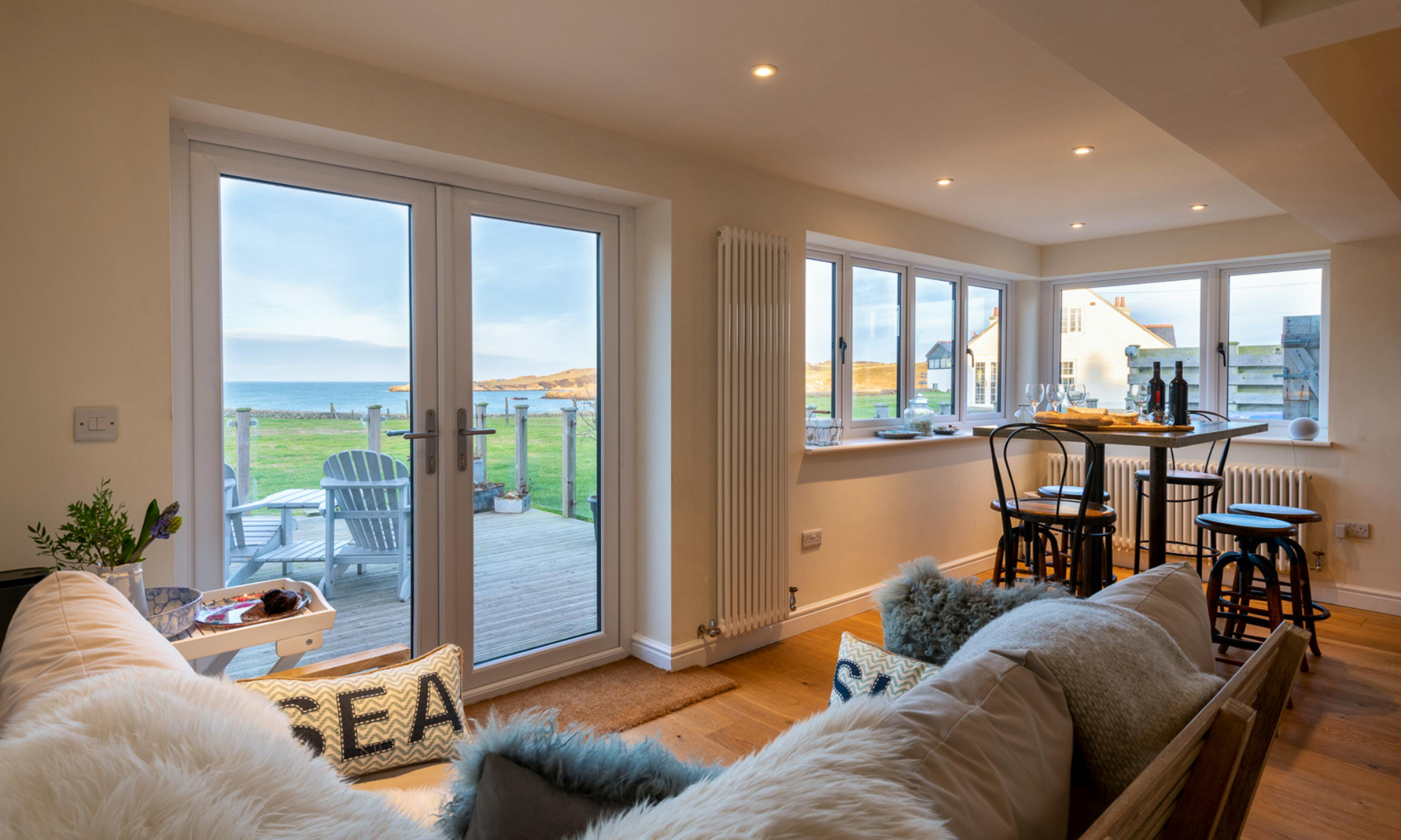 A stylish three-bedroom cottage perched on a headland with breathtaking views over Cemaes Bay in Anglesey.