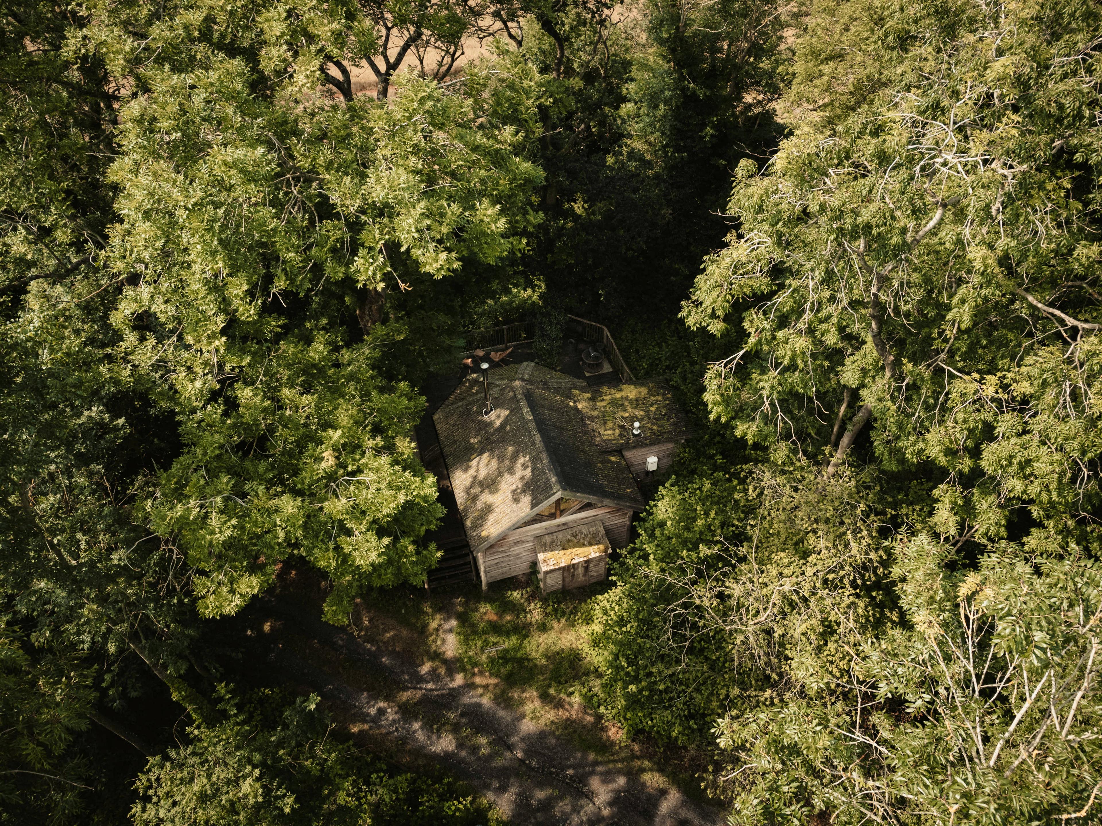 Collection of four charming treehouse cabins in a peaceful Herefordshire wood with pizza ovens, BBQs and deluxe bathtubs.