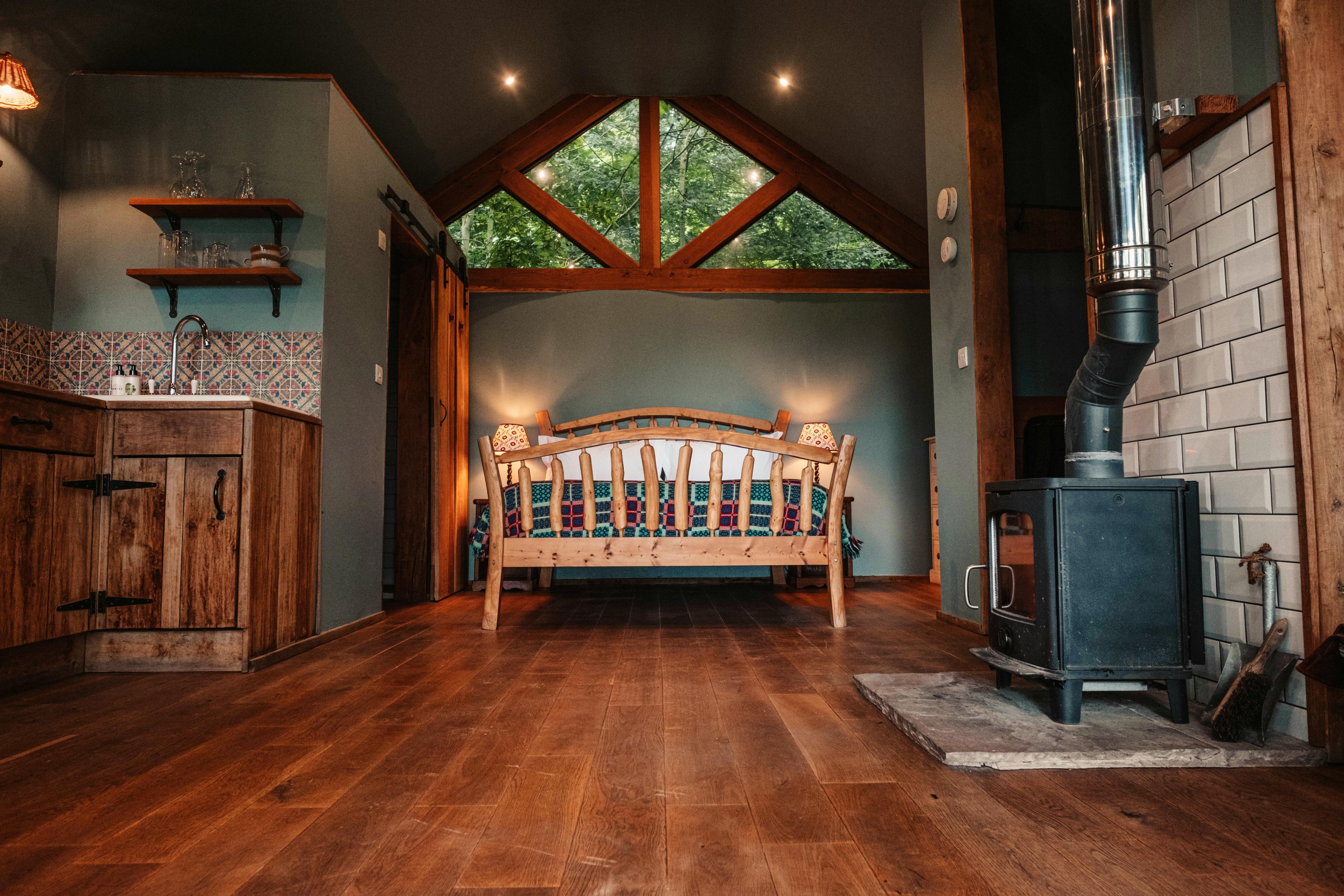 Four delightful and cosy cabins and treehouses sitting in a peaceful slice of Herefordshire wood.
