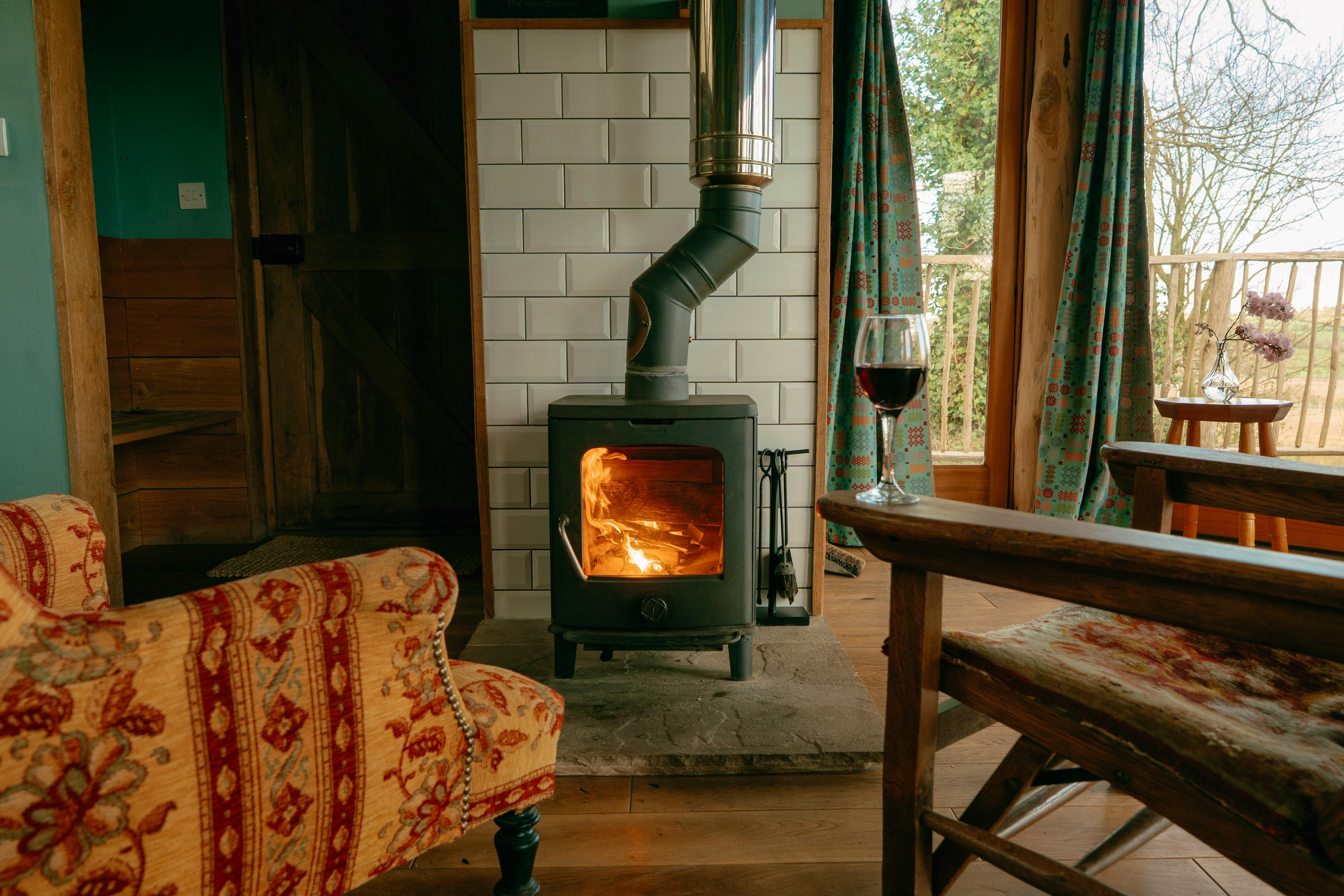 Each of the four cabins has a warm interior thanks to the wood-burning fireplace and comfy armchairs where you can settle in with a book and a glass of wine.