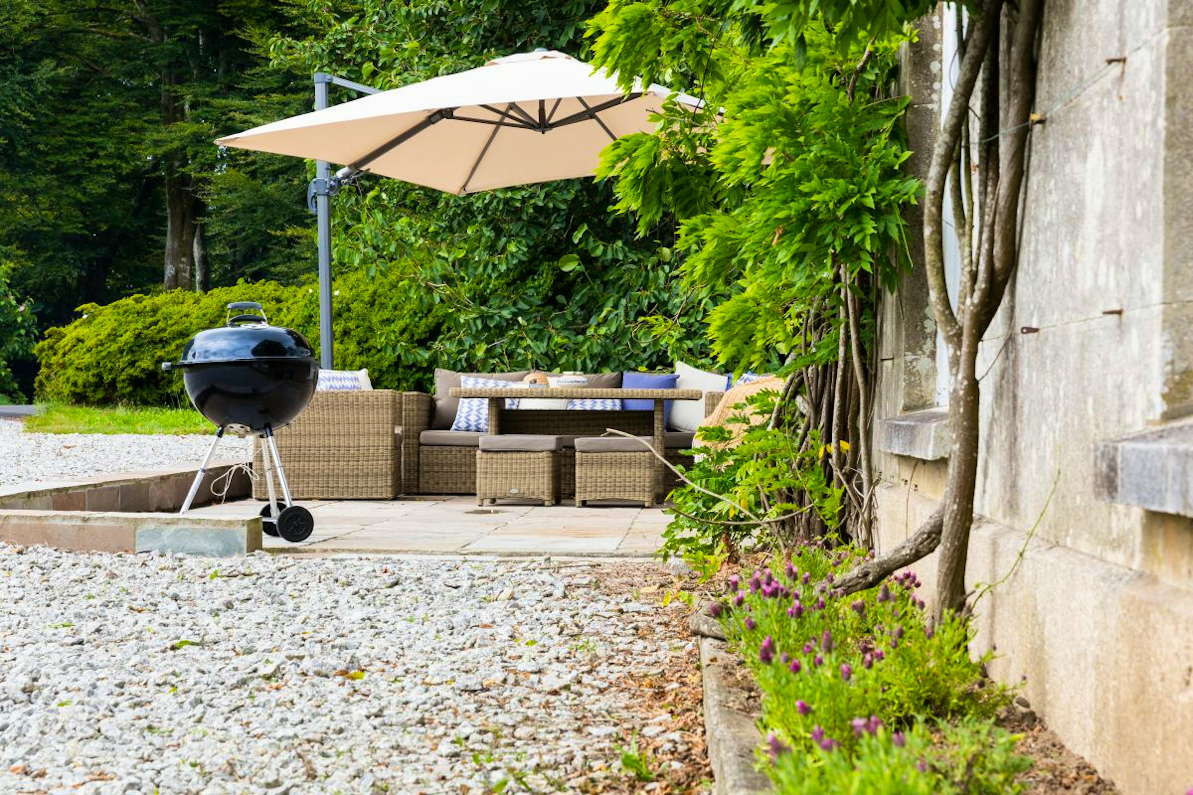 Truly magical outdoor spaces, including a furnished patio with a barbecue and outdoor seating. The rear courtyard is more secluded, with its hot tub and outdoor shower.