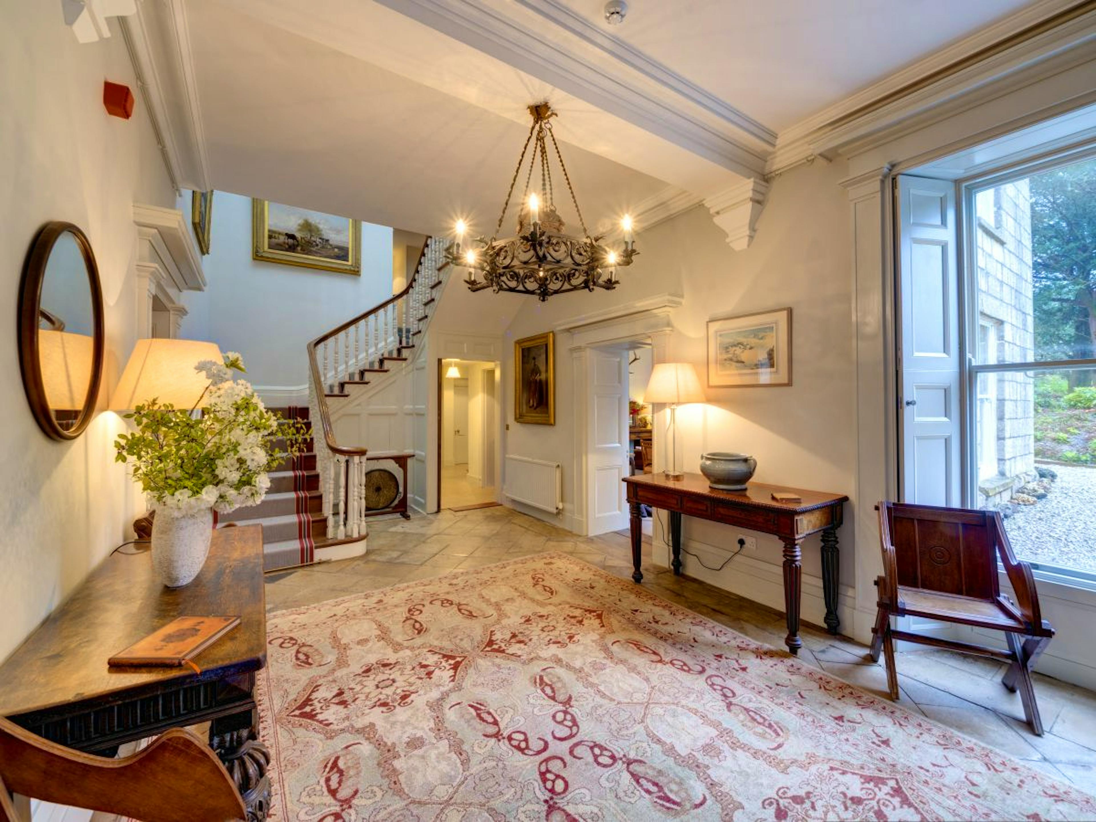 Set within the magnificent Caerhays Estate, close to Redruth, Burncoose House is an extraordinary seven bedroom home, available to rent on a self-catered basis. Replete with woodland paths, croquet lawns, and acres of private land, Burncoose House is the dream escape for anybody looking to stay in luxury in one of the most stunning landscapes in Cornwall. With palatial rooms, high ceilings, and original features, the house is seriously decadent. The main living space is a drawing room which artfully combines original grandeur with high-end contemporary amenities. Recline in front of the 55” Smart TV, rack up the billiard balls, or plug into the world class integrated sound system. Multi-generational groups will be pleased to find that there are several alternative leisure spaces, including a library stocked with books and DVDs, as well as a fireplace and Smart TV, and a study, ideal for getting work done while the rest of the group gets stuck into the day’s activities. Everything about the kitchen has been conceived, designed, and fitted with convenience and luxury in mind. Even the most serious of amateur cooks are wowed by the Falcon range with its double oven and ceramic hob. For casual breakfasts and less formal meals, up to six guests can comfortably fit around the breakfast bar. Alternatively, eat in style inside the grand sixteen person dining room, with its elegant fixtures and open fireplace. Each of Burncoose House’s seven en-suite bedrooms is a testament to taste, luxury, and versatility. The master bedroom is particularly extravagant, with its Smart TV, expansive garden views and array of high-end furniture. A family-style set up features a super king-size bed in one room with twin singles in the next room along, accessed via lockable connecting doors. Off the middle landing you’ll find two exquisitely appointed super king-sized bedrooms, and a third bedroom with twin singles. These bedrooms have a choice of storage facilities and enjoy magnificent views of the grounds. The final sleeping space is a self-contained apartment style annexe, with a small kitchen, dining and bathroom spaces, Smart TV and super king-sized bed. Whether your ideal holiday is outdoors, culturally enriching, culinary or simply spending time in a beautiful house and gardens with loved ones, Burncoose House is guaranteed to please. Redruth is a charming town and World Heritage Site, steeped in local history. There is a thriving arts scene, with a number of galleries, and fish and seafood lovers will be delighted by the restaurants. Just ten minutes away from the beach, Redruth is well placed if you’d like to visit the beautiful coastal village of Portreath. That said , many guests see little reason to leave the stunning house and tranquil grounds.