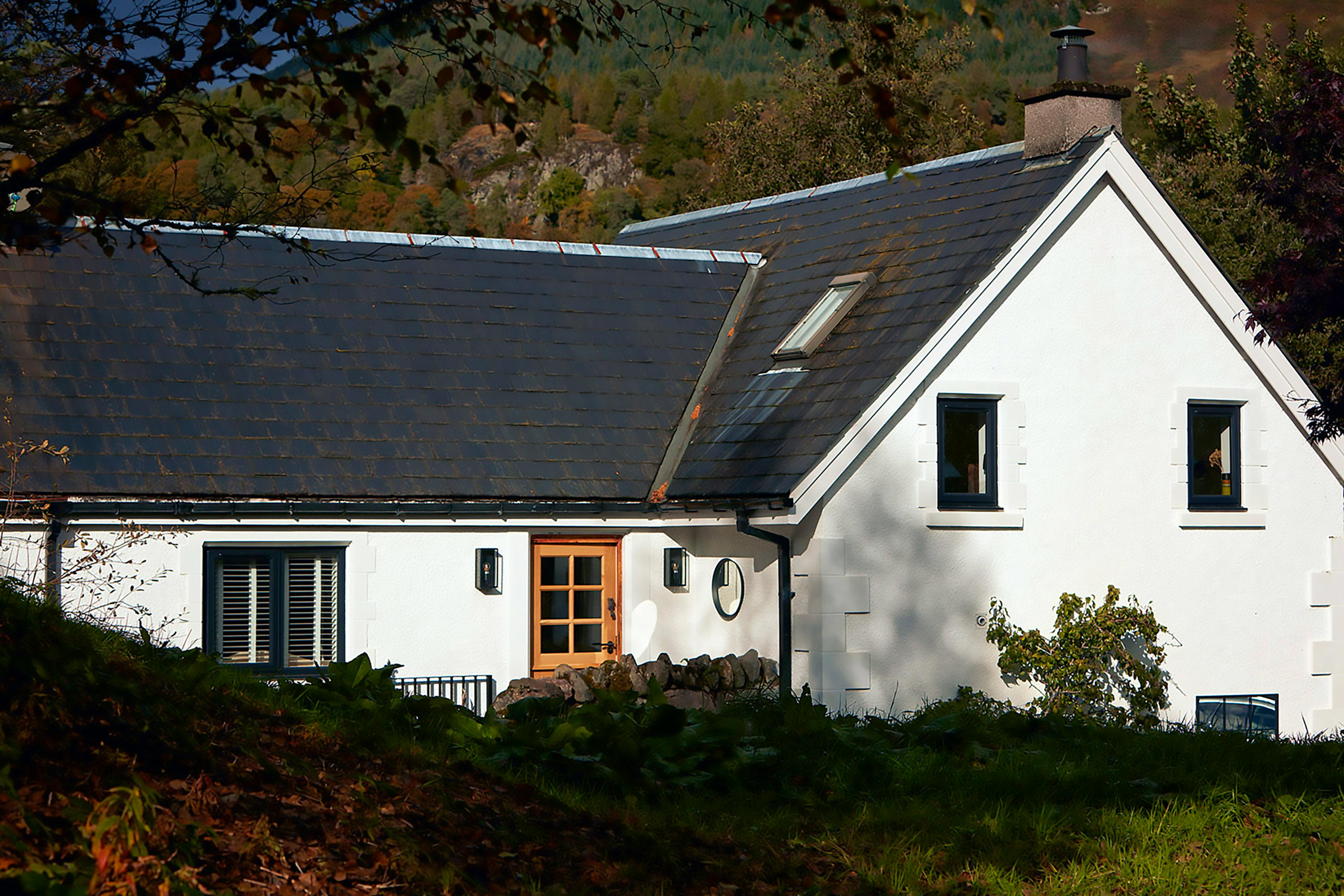 Escape to rural Perthshire, Scotland with a visit to the charming Calair Cottage, boasting a wood-fired hot tub, log fire and stunning mountain views