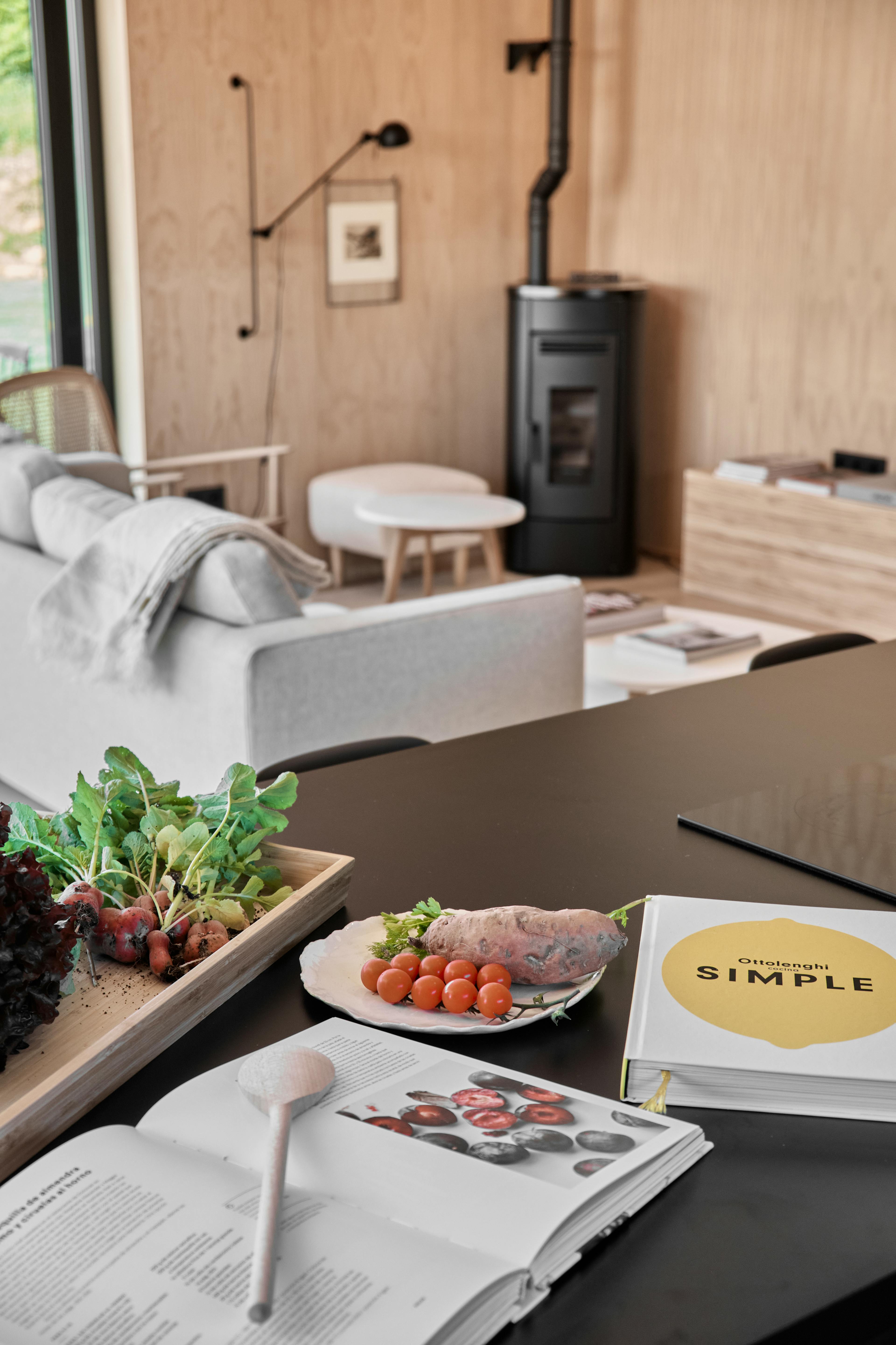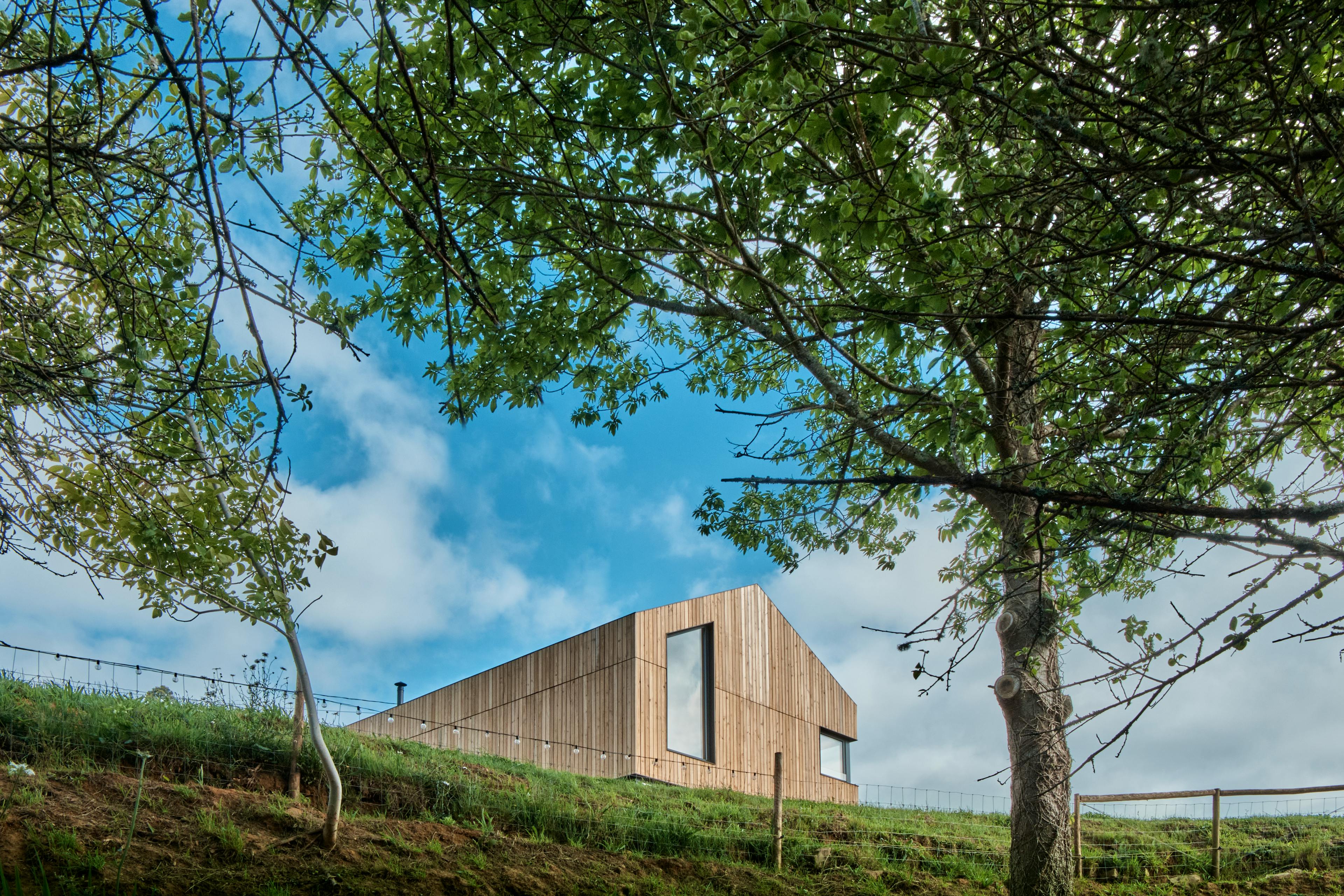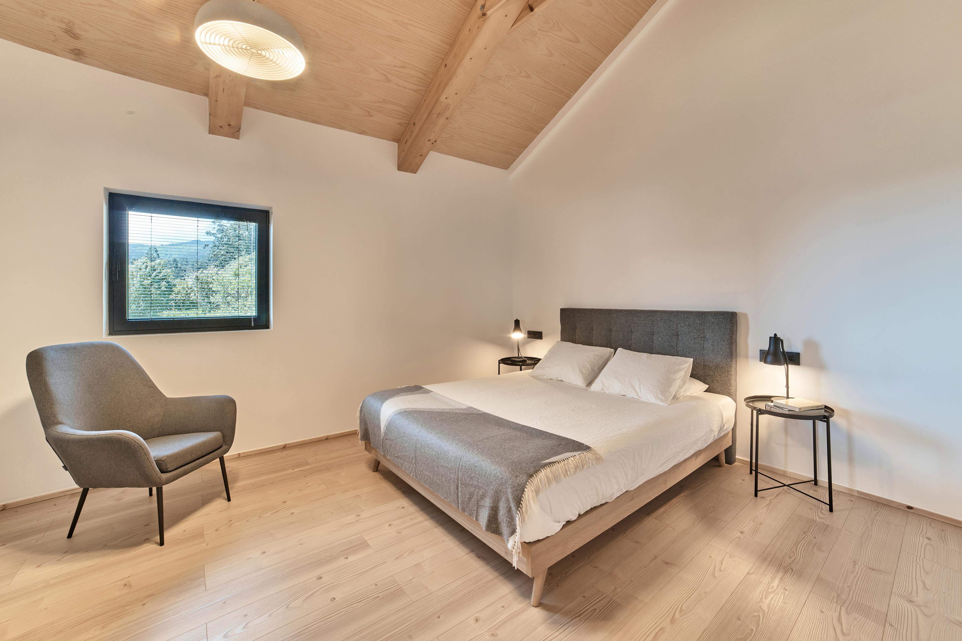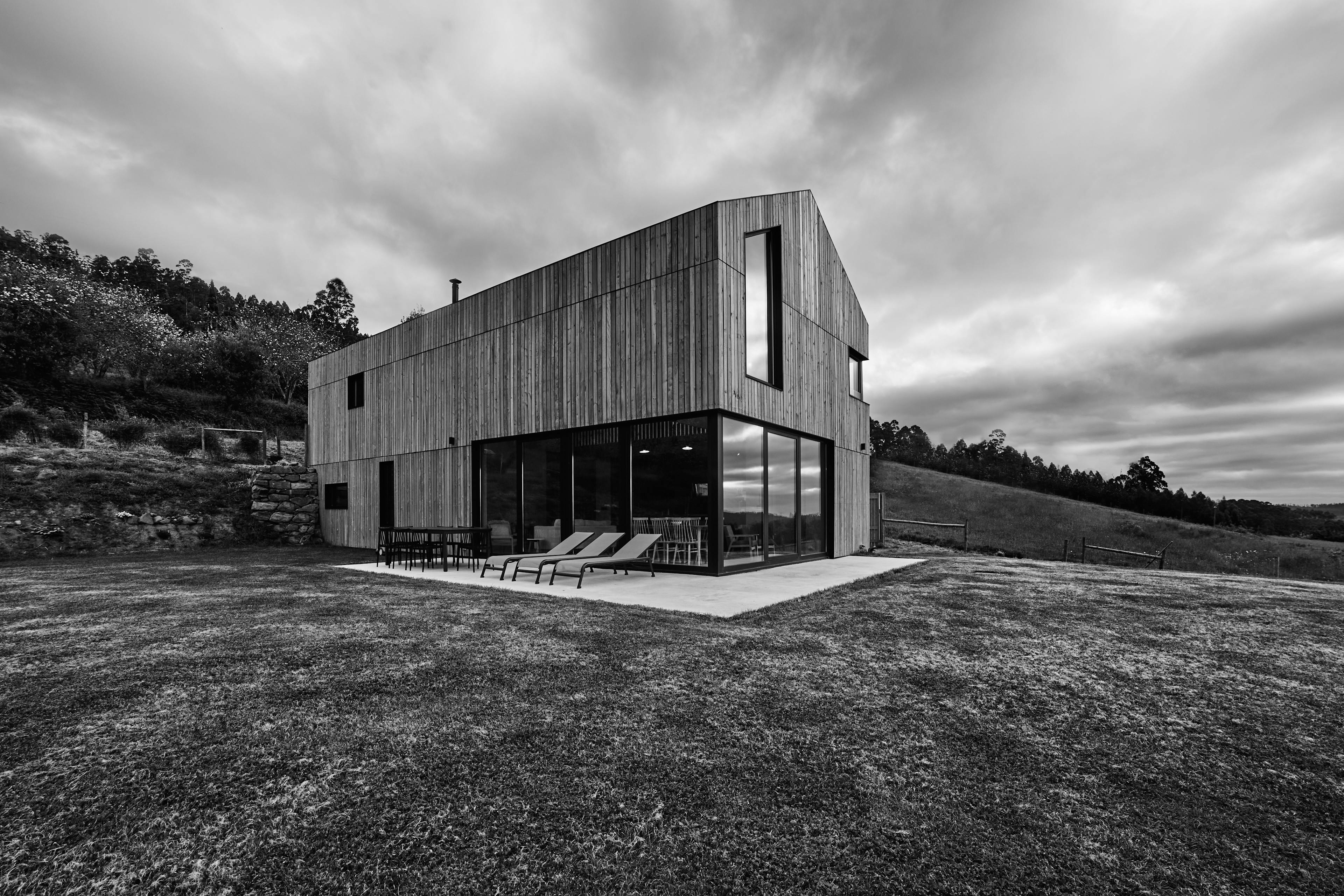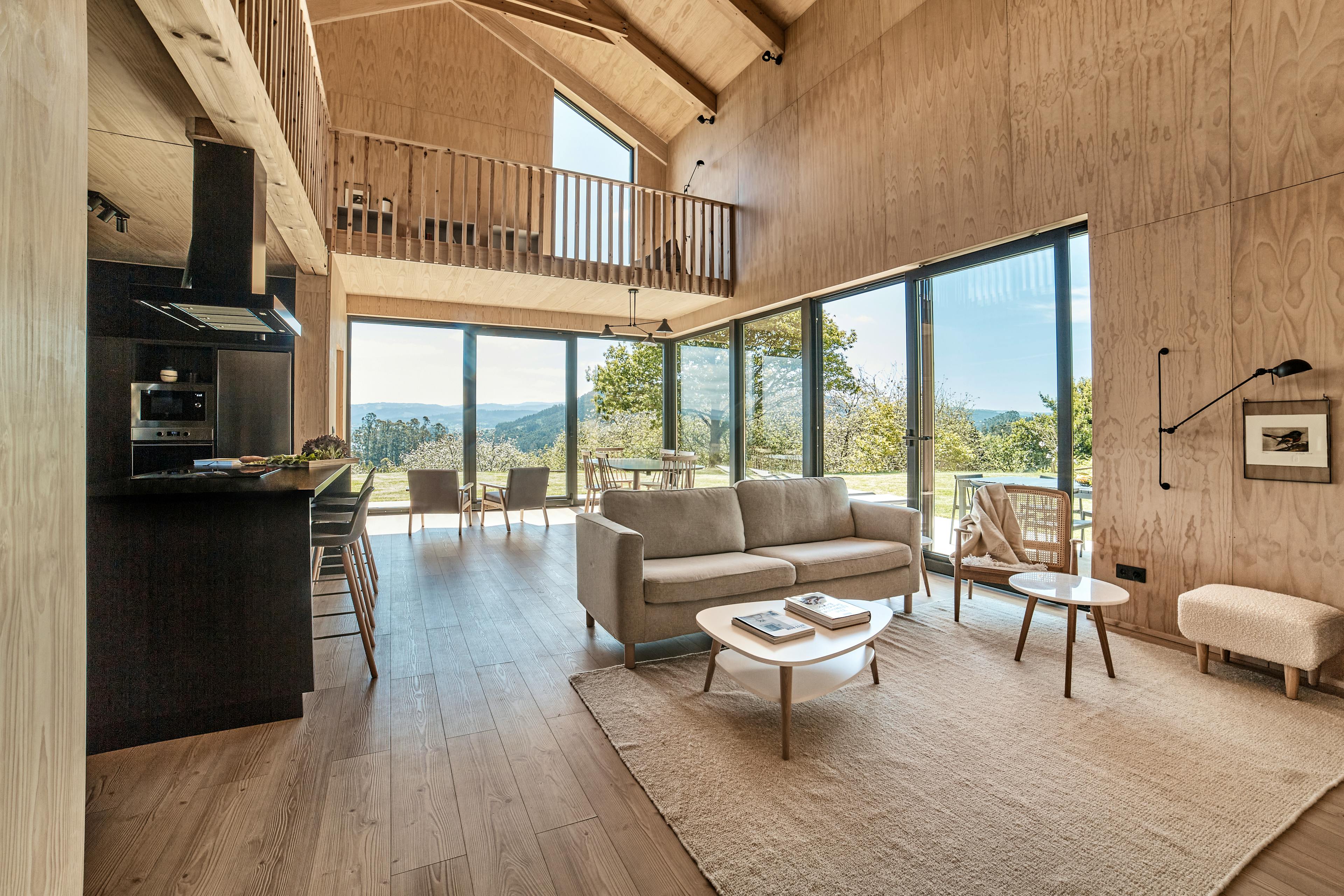 Stunning Nordic inspired barn with luxurious interior, multi level gardens and terraces with BBQ and views of the A Capelada mountains in Galicia.