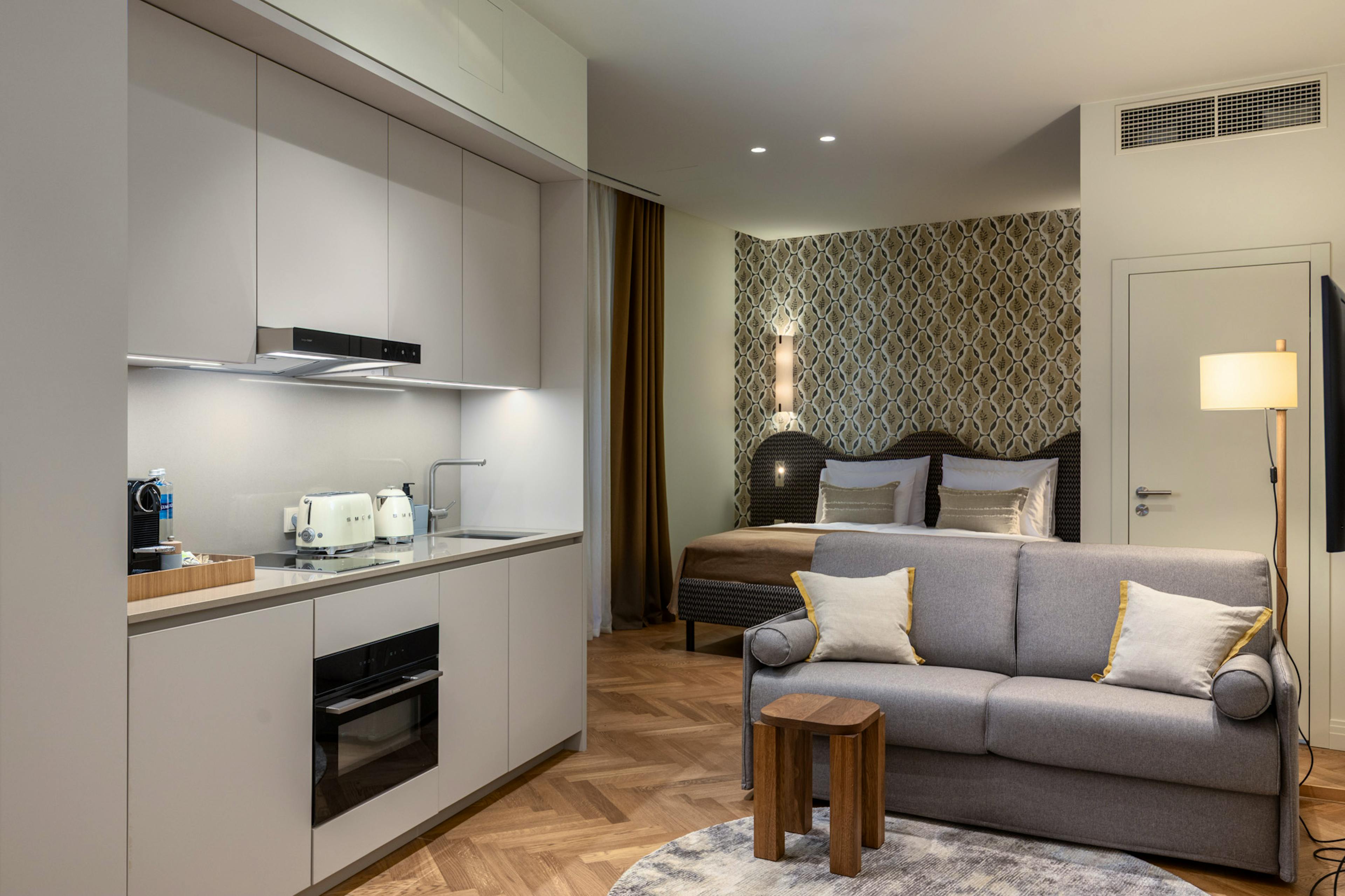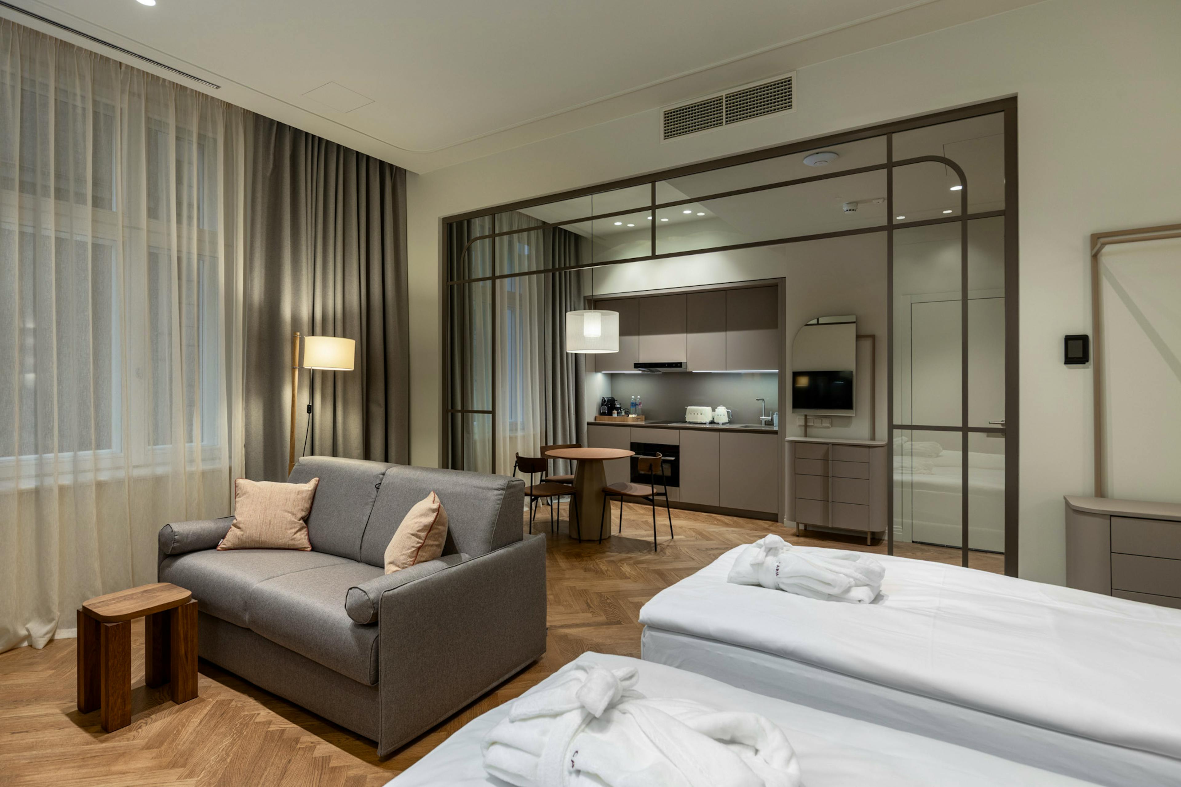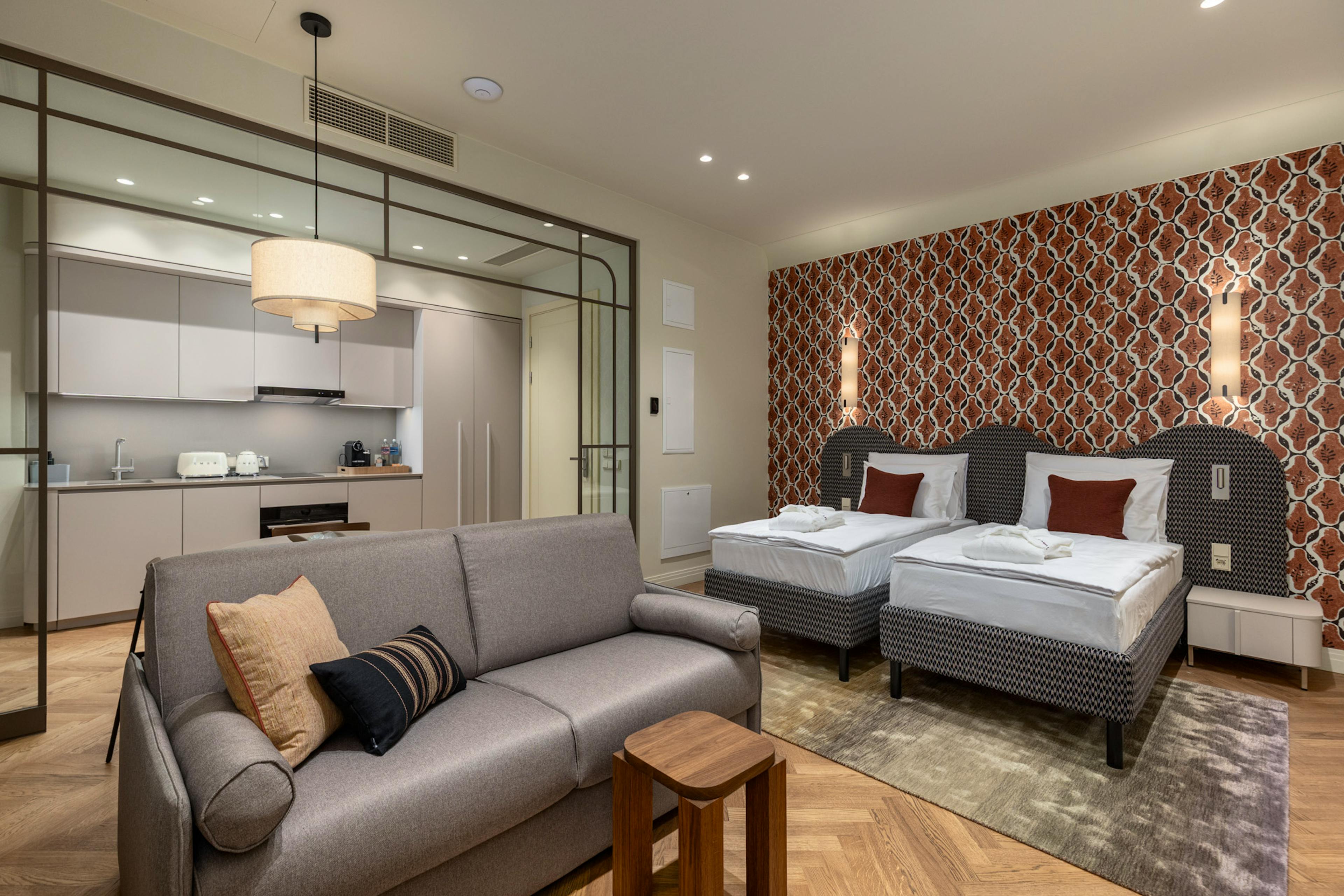 A choice of beautifully designed apartments, from cosy studios to spacious two-room suites, each offering stylish interiors and a welcoming, homely feel.