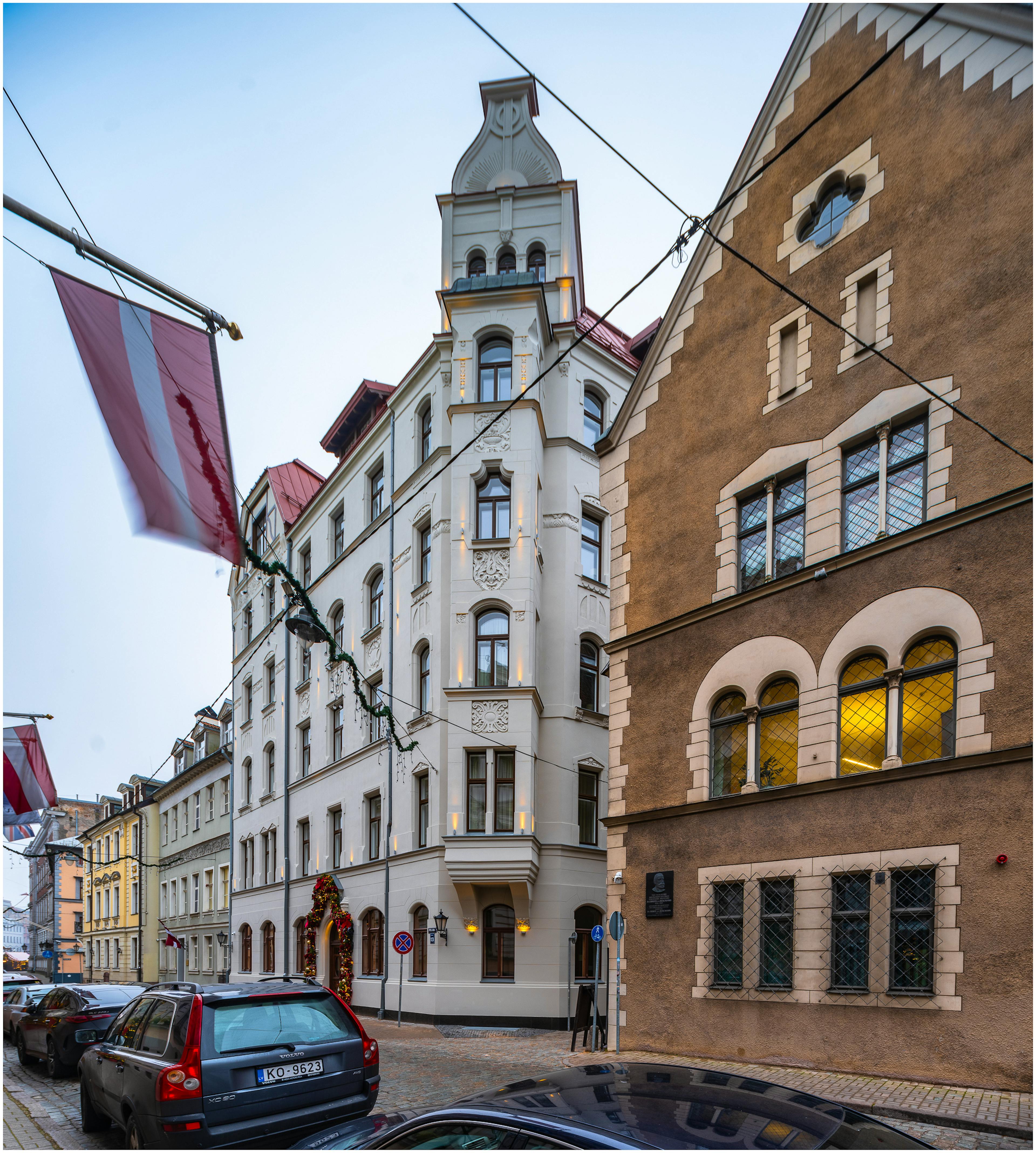 Elegant Art Nouveau aparthotel in Old Town Riga with cathedral views and stylish self-catering suites.