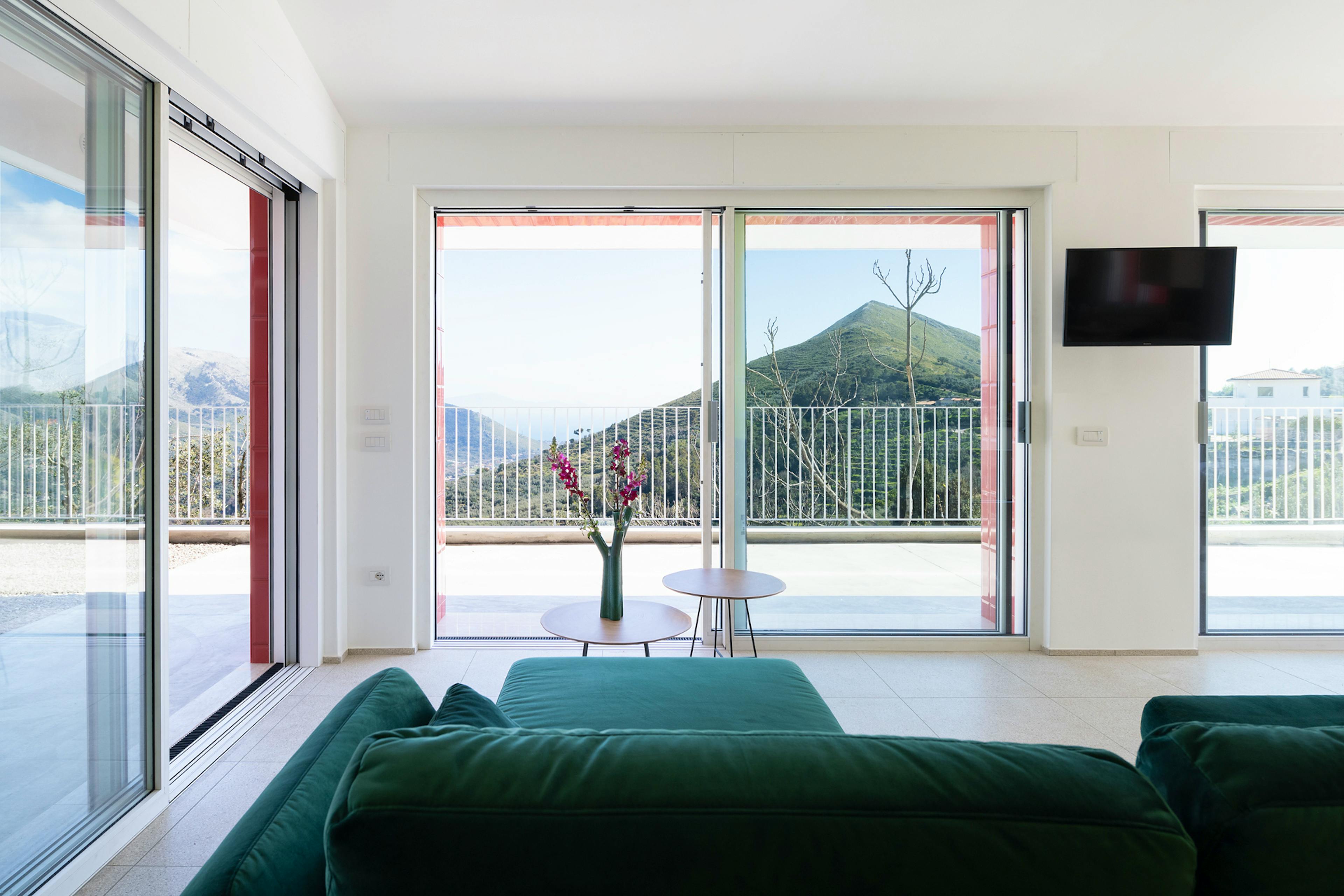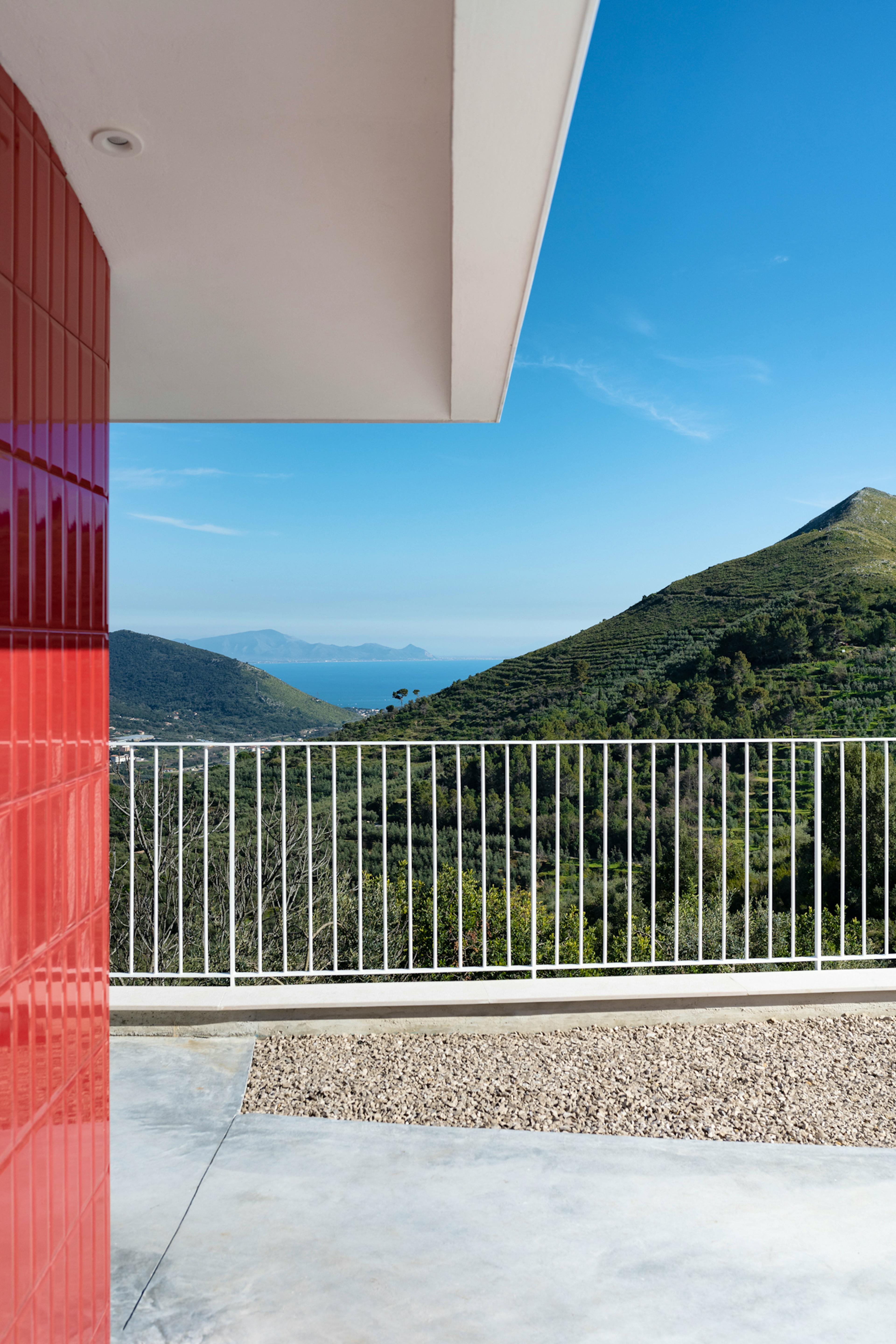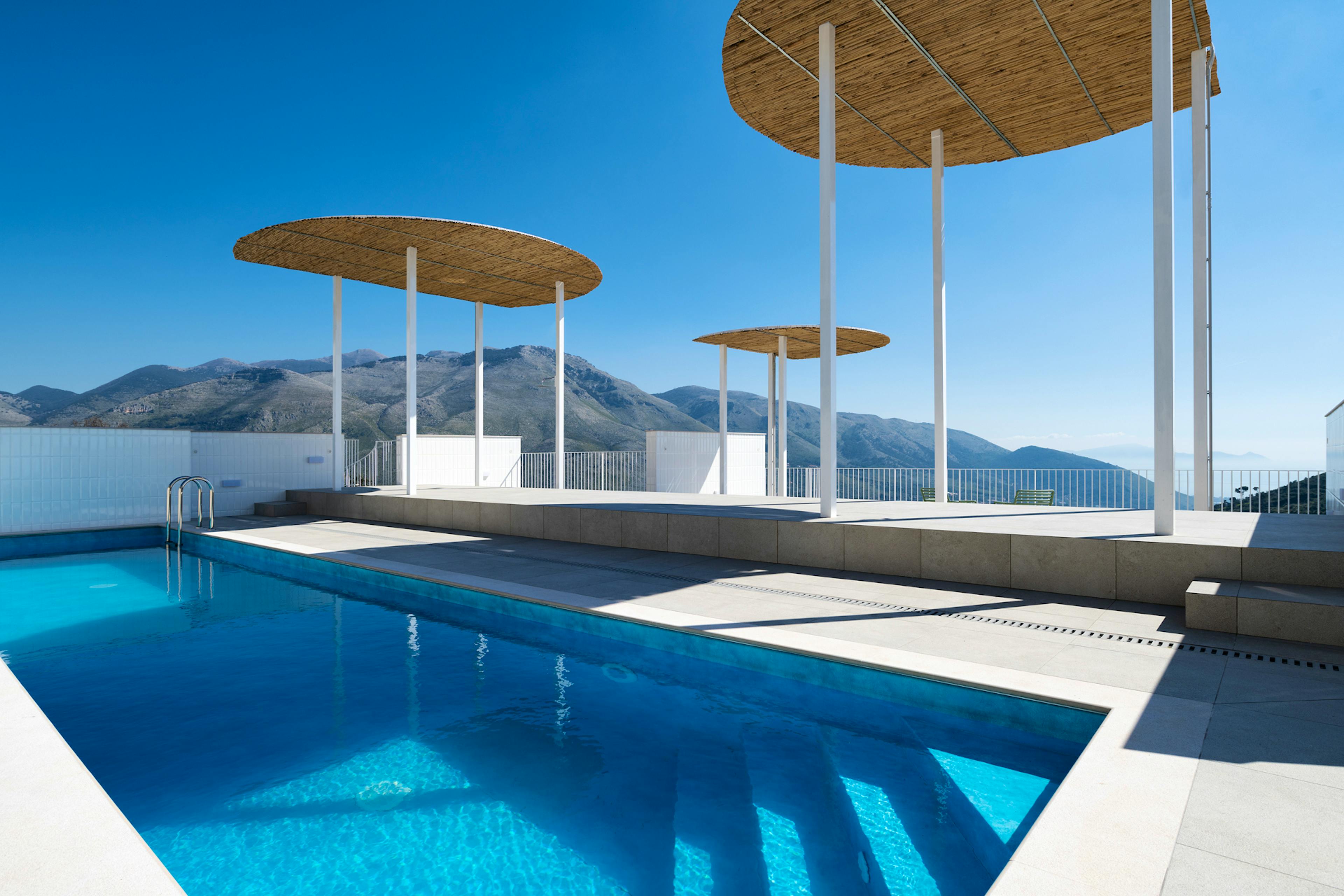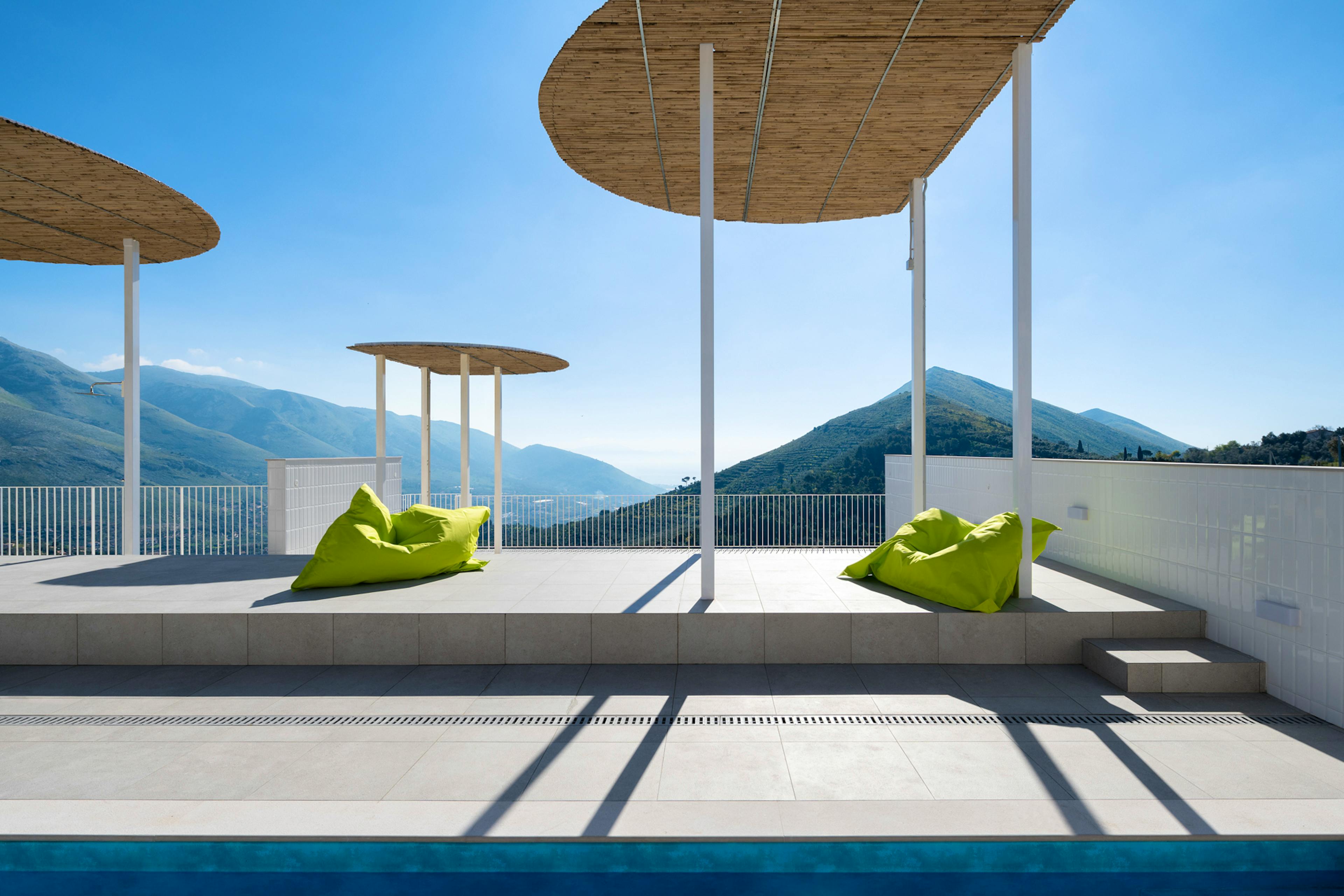 Gorgeous, architect-designed villa in Campania with a striking exterior, a superb roof-top pool and incredible views of the surrounding scenery.