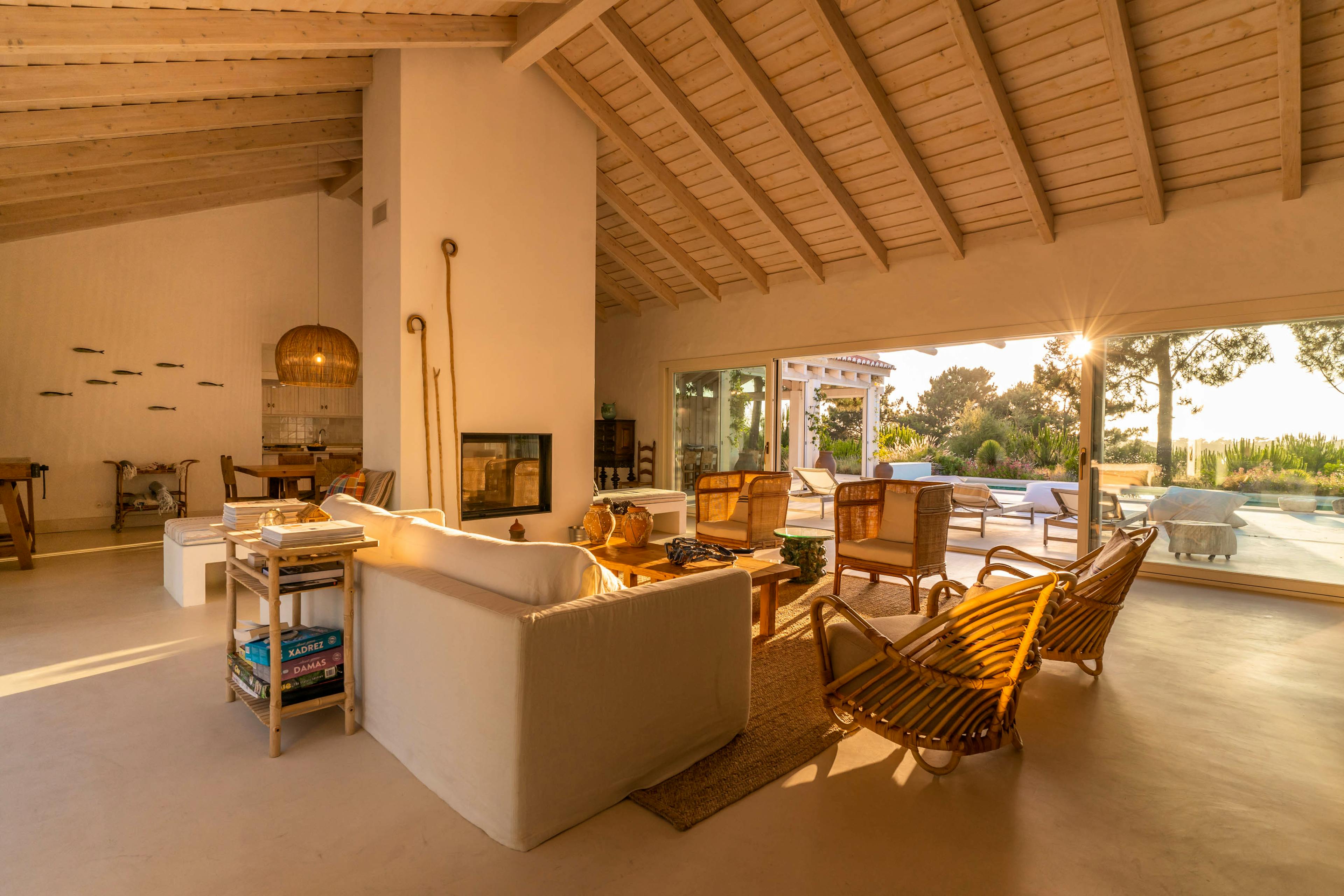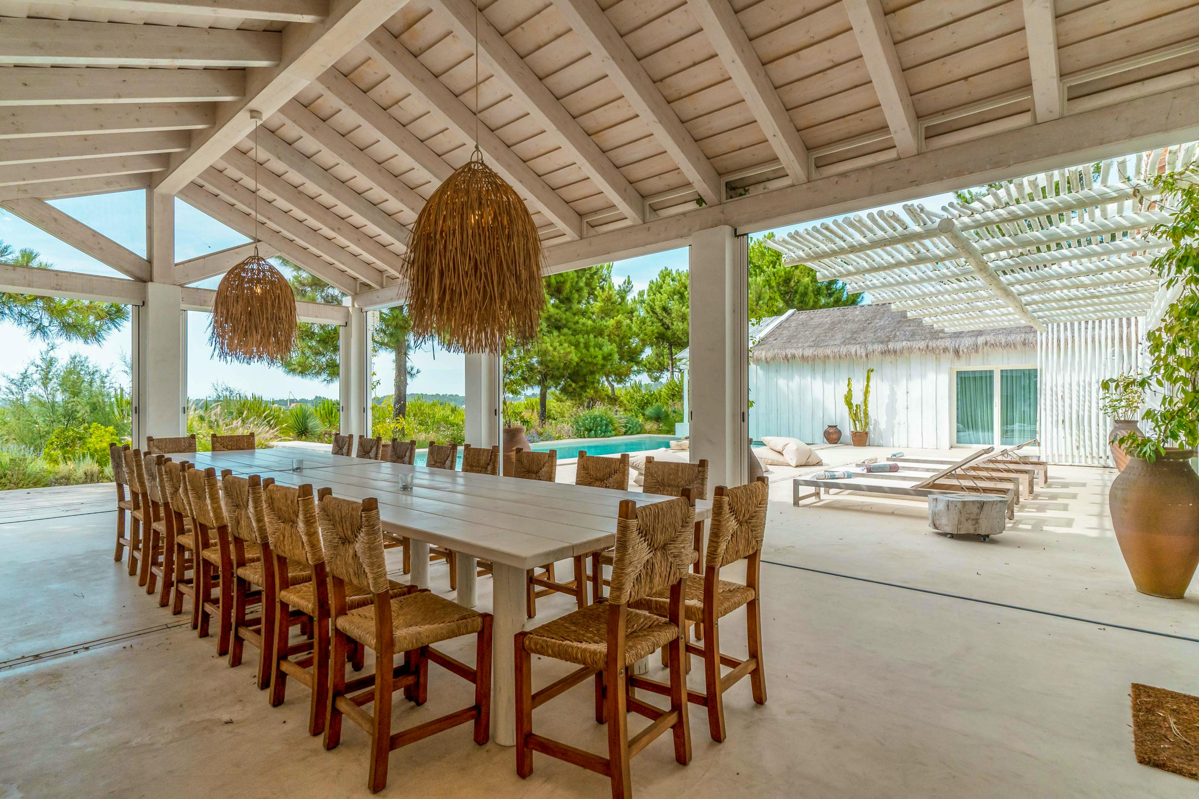 Experience a world of tranquil luxury at Villa Figueira, an enchanting four-bedroom sanctuary nestled within the exclusive residential enclave of Casas da Encosta, Comporta. Situated in beautiful natural surroundings, this villa offers an exquisite fusion of contemporary opulence, idyllic surroundings and unmatched comfort, creating the perfect setting for an unforgettable retreat. When you arrive at the villa you can immerse yourself in the seclusion of the private swimming pool, set against the backdrop of a meticulously manicured garden. After a swim dry off by the side of the pool with a good book or get comfy in one of the many outdoor seating areas whilst taking in your surroundings. Guests can also stay active and invigorated in the well-appointed gym on the premises, ensuring that your wellness needs are met. Budding chefs will find all they need to prepare meals for the group in the well-equipped kitchen or using the BBQ in the garden. When dinner’s ready, enjoy a tasty feast at the huge alfresco dining table that sits by the pool. This is the perfect place to load up plates and dine long into the night. The calming living room follows a minimalist, white design and makes use of high ceilings and big windows to flood the space with natural light. This is a nice spot to get comfy with a good book and chat with your loved ones. The villa’s four bedrooms offer a peaceful haven and the tranquil surroundings and calming decor combine to ensure you all get a good night’s sleep. There is one twin room, two double rooms and one triple bunk room that is ideal for kids! Villa Figueira's prime location ensures that the beach is just a short stroll away. In a mere 10-minute walk, you'll find yourself at the enchanting Praia do Pego, where golden sands meet the glistening ocean. Whether you choose to sunbathe, swim or simply revel in the breathtaking coastal scenery, you’re sure to love it here. A quick two-minute drive takes you to the vibrant centre of Carvalhal, where a delightful array of local shops, cafes and restaurants await. Additionally, Carvalhal Beach, just five minutes away, is another gem. Comporta is also a short drive away with yet more stunning beaches, nice restaurants and cool bars. Nature lovers will also adore the brilliant Sado Estuary Natural Reserve, which is home to an abundance of natural splendour and amazing wildlife.