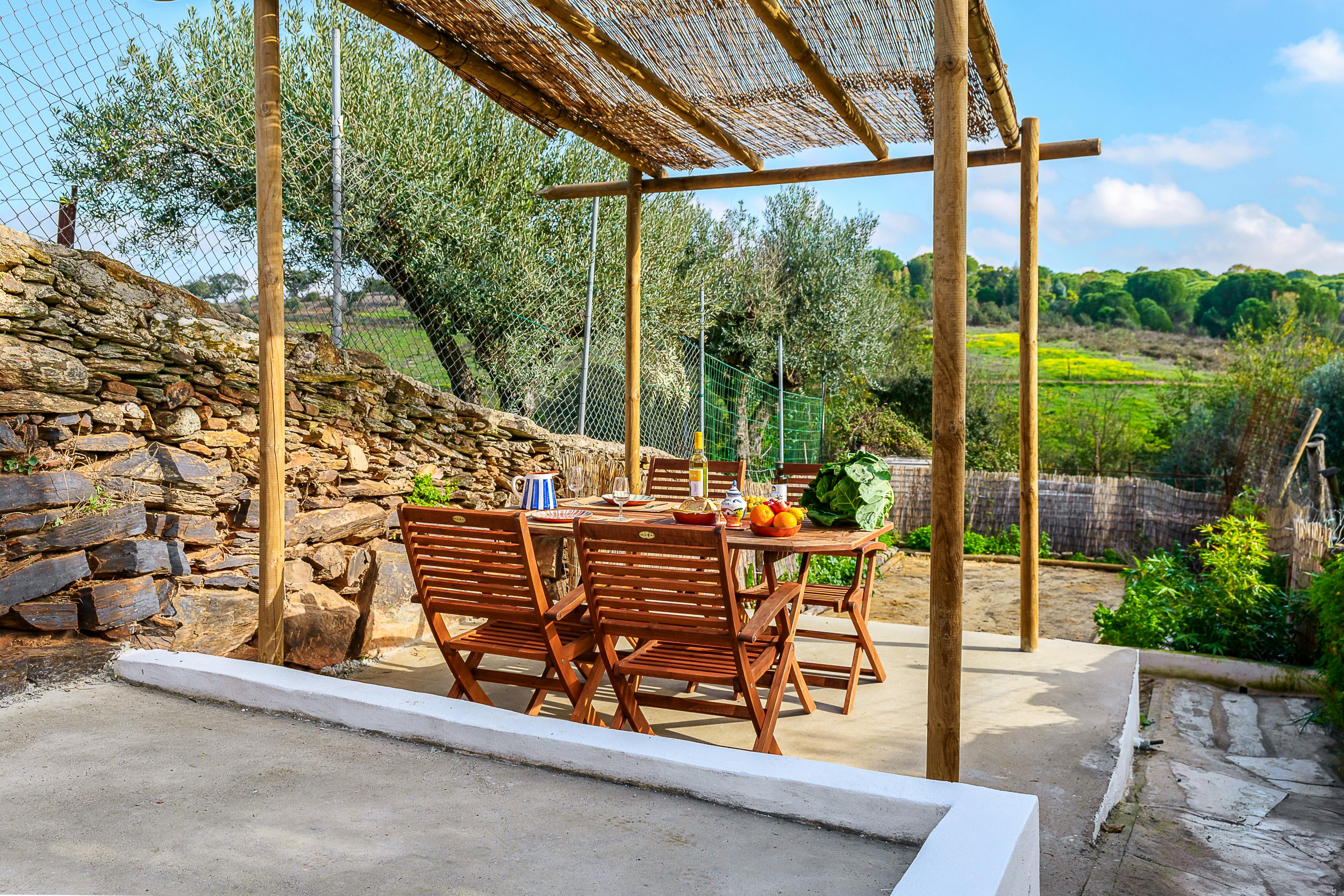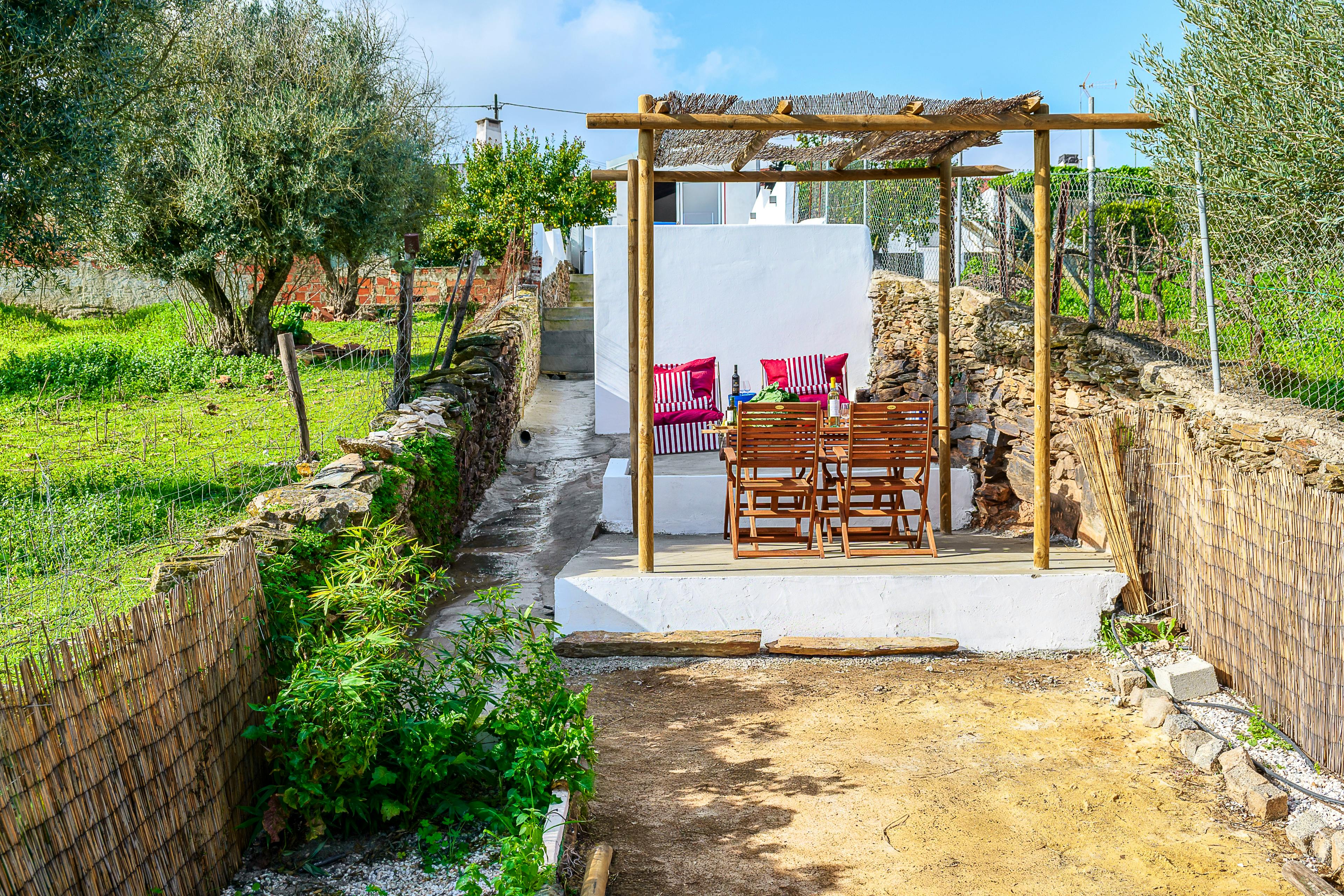 Nestled in the heart of Portugal’s Alentejo region, this charming retreat sits in a quaint village offering small groups a relaxing break in the sun. A lovingly restored home, Casa do Jardim Secreto combines modern comfort with timeless charm, providing you and your loved ones with an idyllic escape close to Monsaraz and the sparkling Alqueva Lake. Once you arrive, drop your bags off and head to your quaint sun terrace where you can get comfy with a drink in hand or hop in your own private heated swimming pool for a lovely dip. From here you can gaze out at the surrounding scenery, taking in the rolling hillsides dotted with homes. There’s an alfresco dining table here too, should you wish to enjoy a meal outside in the Portuguese sunshine. Be sure to make the most of the beautiful night skies too - the area is an internationally certified Dark Sky protected reserve - so you can spot the constellations once the sun sets. Stepping inside, the living spaces are cosy and rustic, with exposed stone walls and wooden beams overhead. Get comfy on the seating with a good book as you throw logs on the burner keeping you warm and toasty whatever the weather outside. When you get hungry, there’s a fully equipped kitchen in the house, which has modern appliances that ensure you’ve got everything you need at your fingertips to prepare delicious feasts for your group. There’s also a dishwasher here so no one is lumbered with the washing up, and a handy washing machine for keeping clothes clean during your stay. And when night falls, the two bedrooms combine with the tranquil location to ensure you enjoy a peaceful night’s sleep, waking up ready to seize the day. There are also two bathrooms in the home, meaning you won’t have to worry about queues for the shower in the morning. On top of this, all of the rooms are air conditioned, for your comfort and when it comes to entertainment, you’ve got WiFi and a bluetooth speaker available for use during your stay. The owners have also made use of sustainable features, like solar water heating, to reduce the environmental impact of your stay. And, when it comes to materials, there are top quality choices throughout, such as 100% percale cotton bed and bath linen made in Portugal and there's also EU-made vegan biodegradable Anyah shampoo, shower and hand soap. If you decide to venture out and explore the area, there’s lots to see and do. Just 15 minutes away, the medieval hilltop village of Monsaraz offers stunning views, historic charm and excellent local cuisine. And food lovers will be delighted to know that within walking distance from the house, you’ll find the home of one of the region's most authentic and beloved breads. Padaria do Baldio - a no-frills, unassuming little bakery proves the best things in life are often the simplest. They bake just one type of bread in small or large loaves, along with papo-secos (Portuguese bread rolls) - the owners' personal favourite! For your everyday essentials, the charming little grocery shop, Mercearia Lino, run by the lovely Dona Bela, is also nearby - perfect for picking up fresh, local ingredients or enjoying a friendly chat For nature lovers, Alqueva Lake is ideal for stargazing, kayaking or peaceful lakeside walks. You're also just 15 minutes from the beach, should you wish to relax on the sand, try your hand at watersports or enjoy a scenic boat ride. The area is also rich in culinary delights, with nearby wineries, olive groves and authentic Alentejo gastronomy to enjoy. Whether you’re seeking adventure or relaxation, the local surroundings have something for everyone. Feel free to reach out to your hosts, Jacopo and Tiago, who are more than happy to share their insider tips and help with any questions to ensure you make the most of your time exploring the beauty of Alentejo!