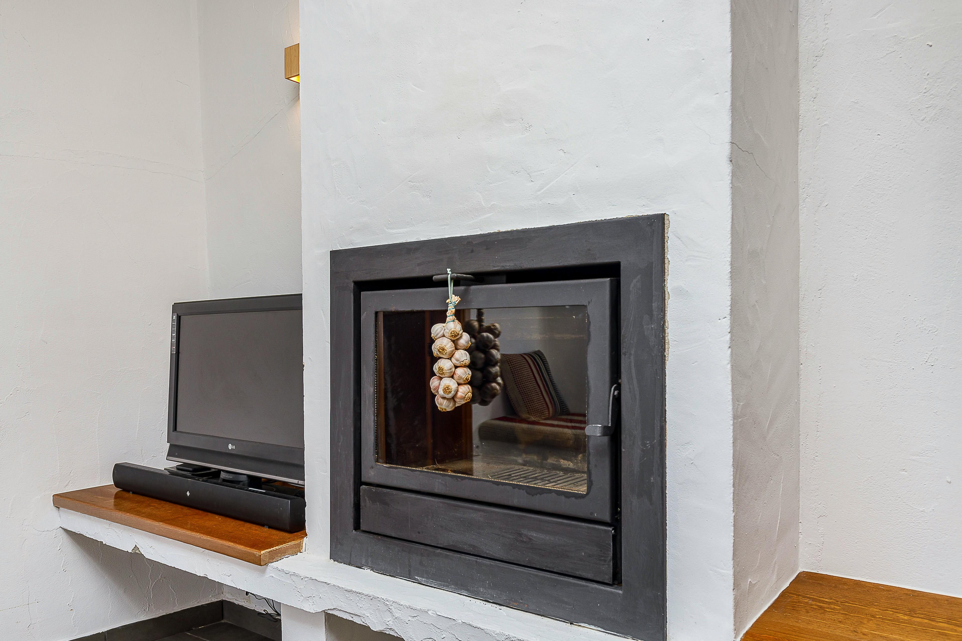 The cosy interior features rustic charm with exposed stone walls and wooden beams, plus a wood burner to keep you warm and snug.