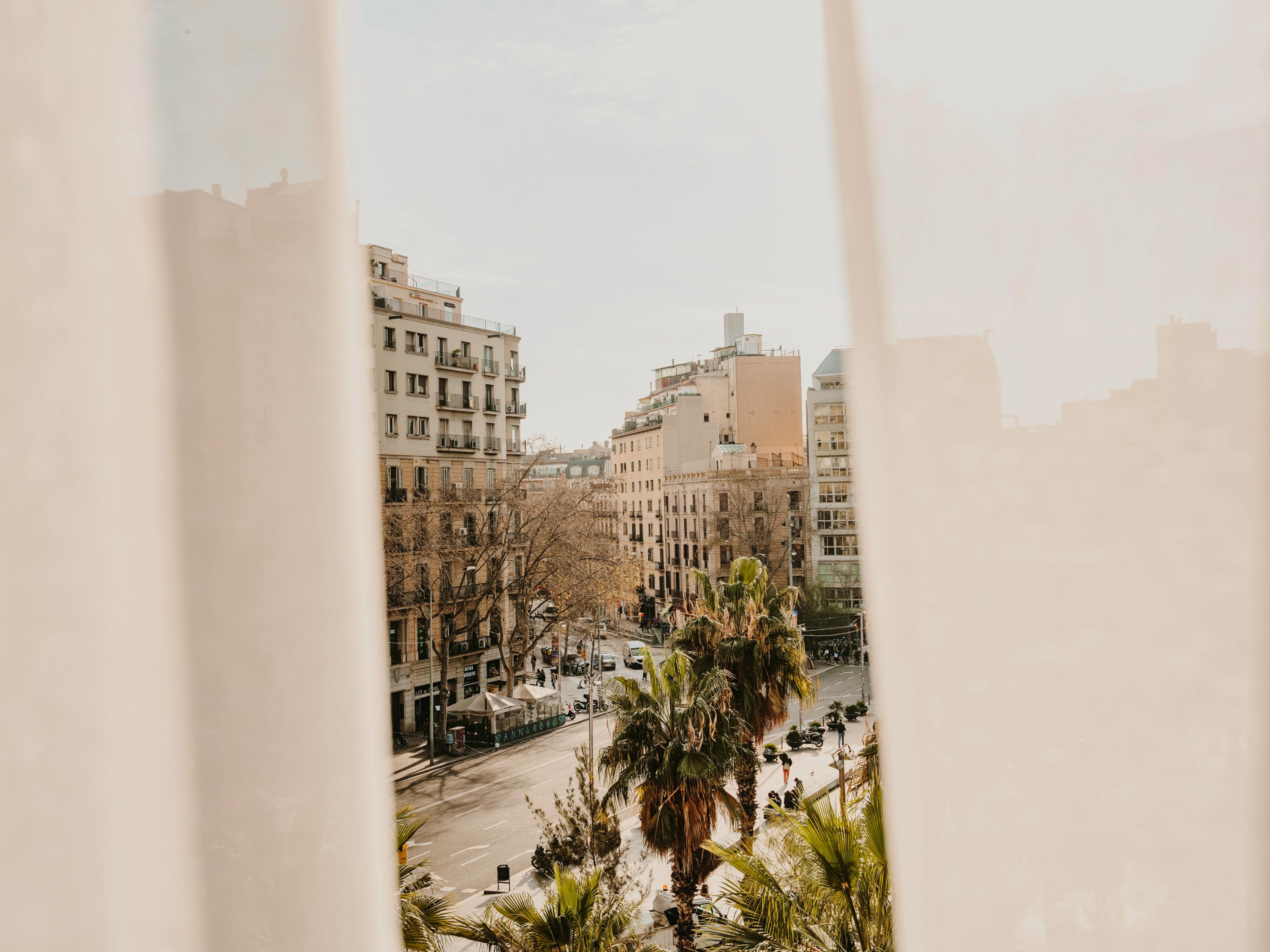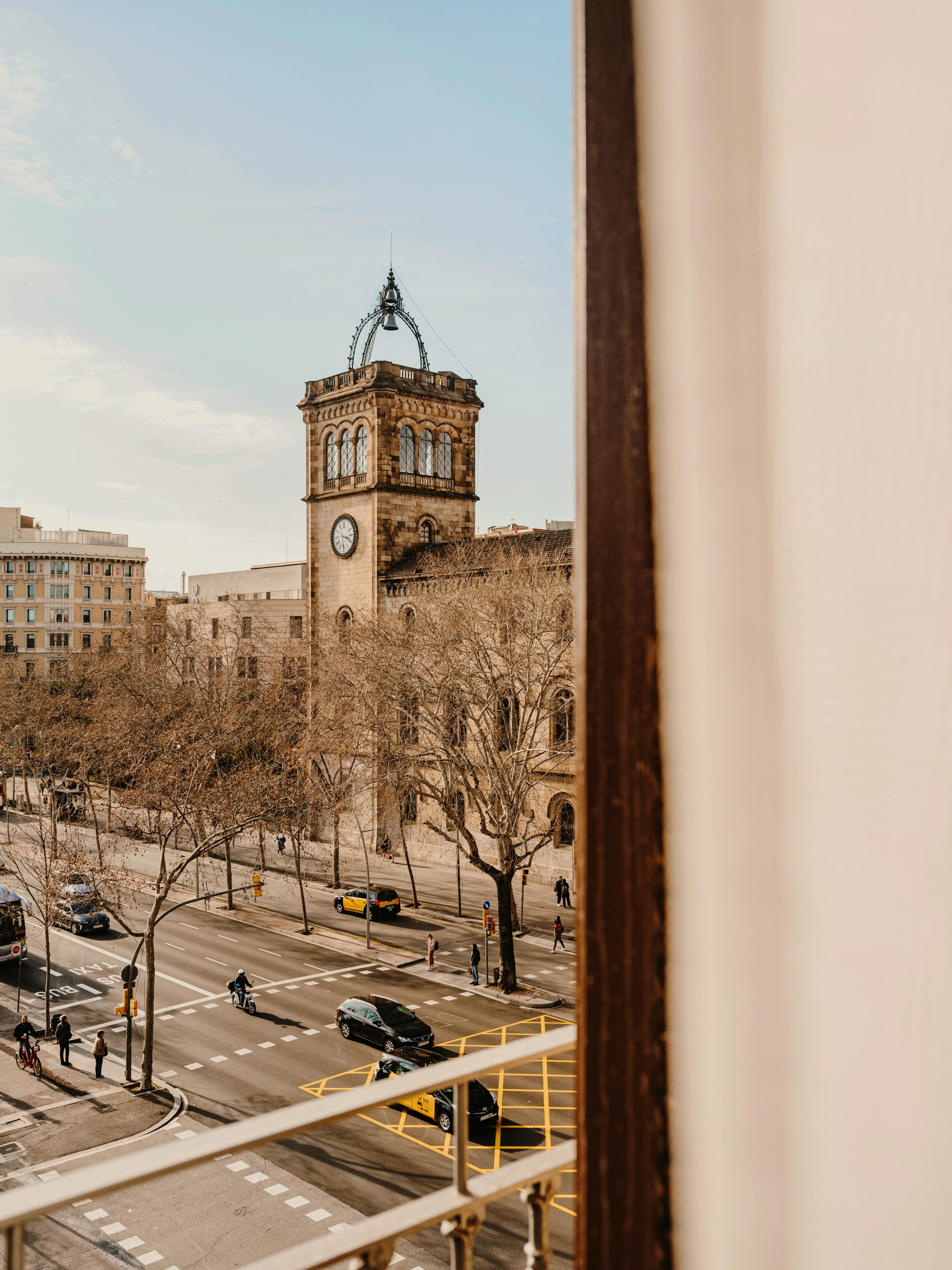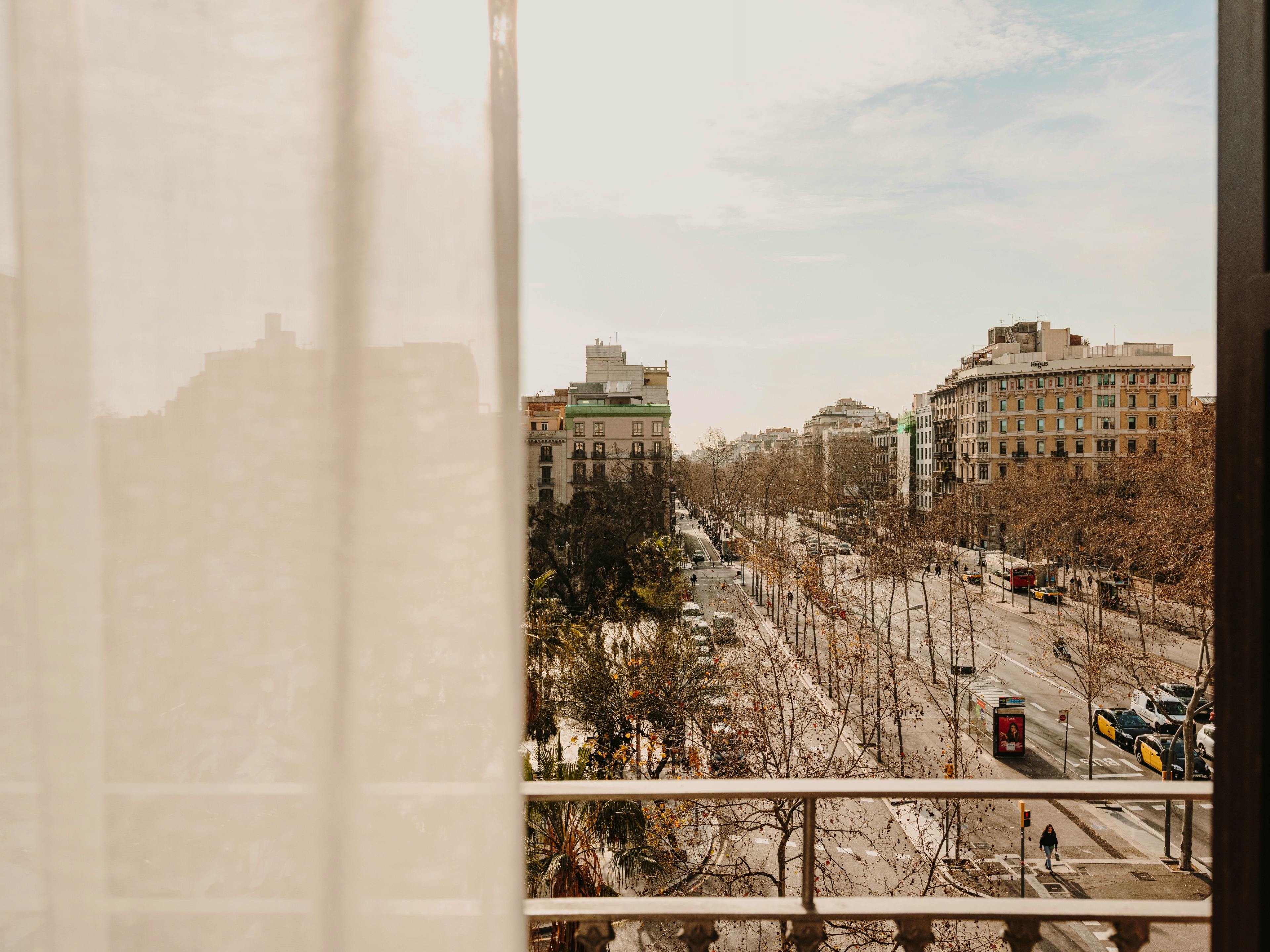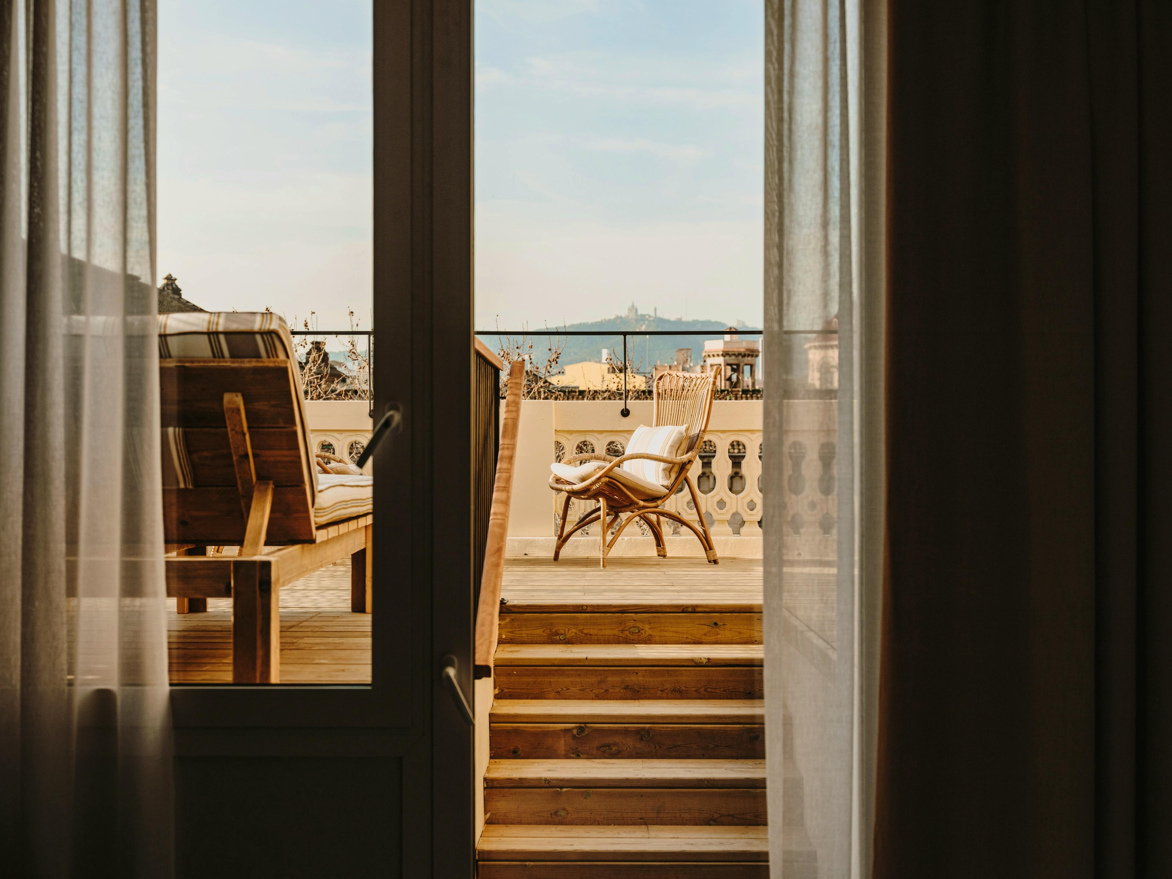 Design-led city stay in central Barcelona with a rooftop terrace and sunset views over Plaça Universitat.
