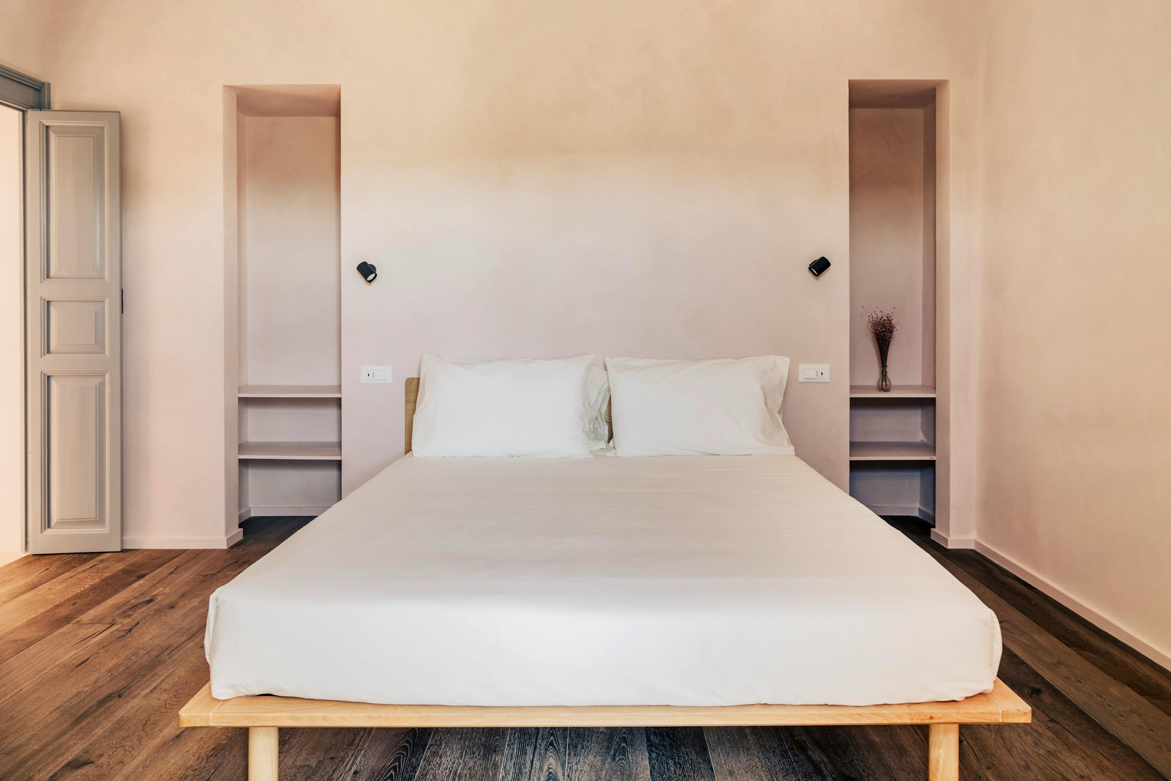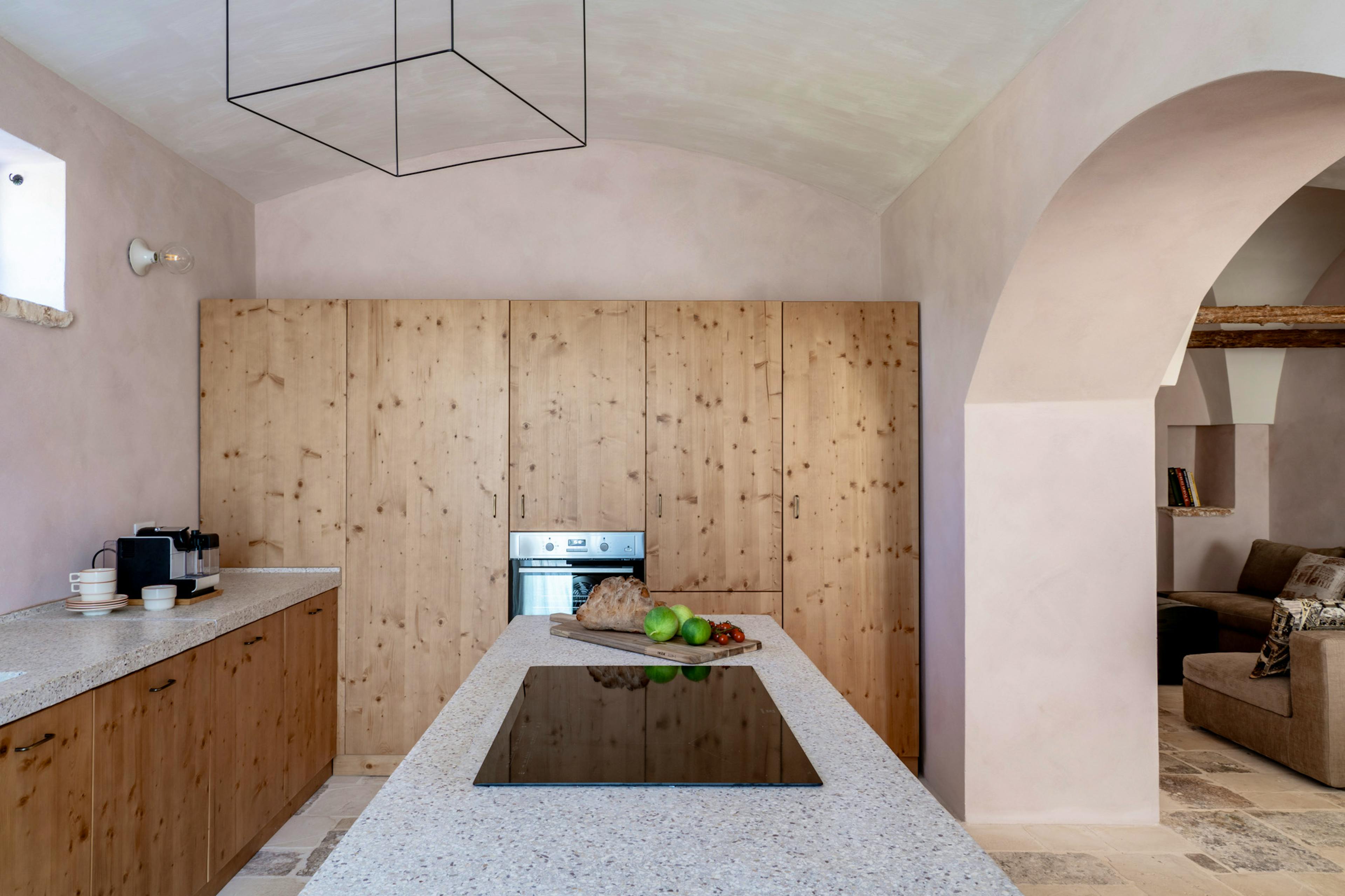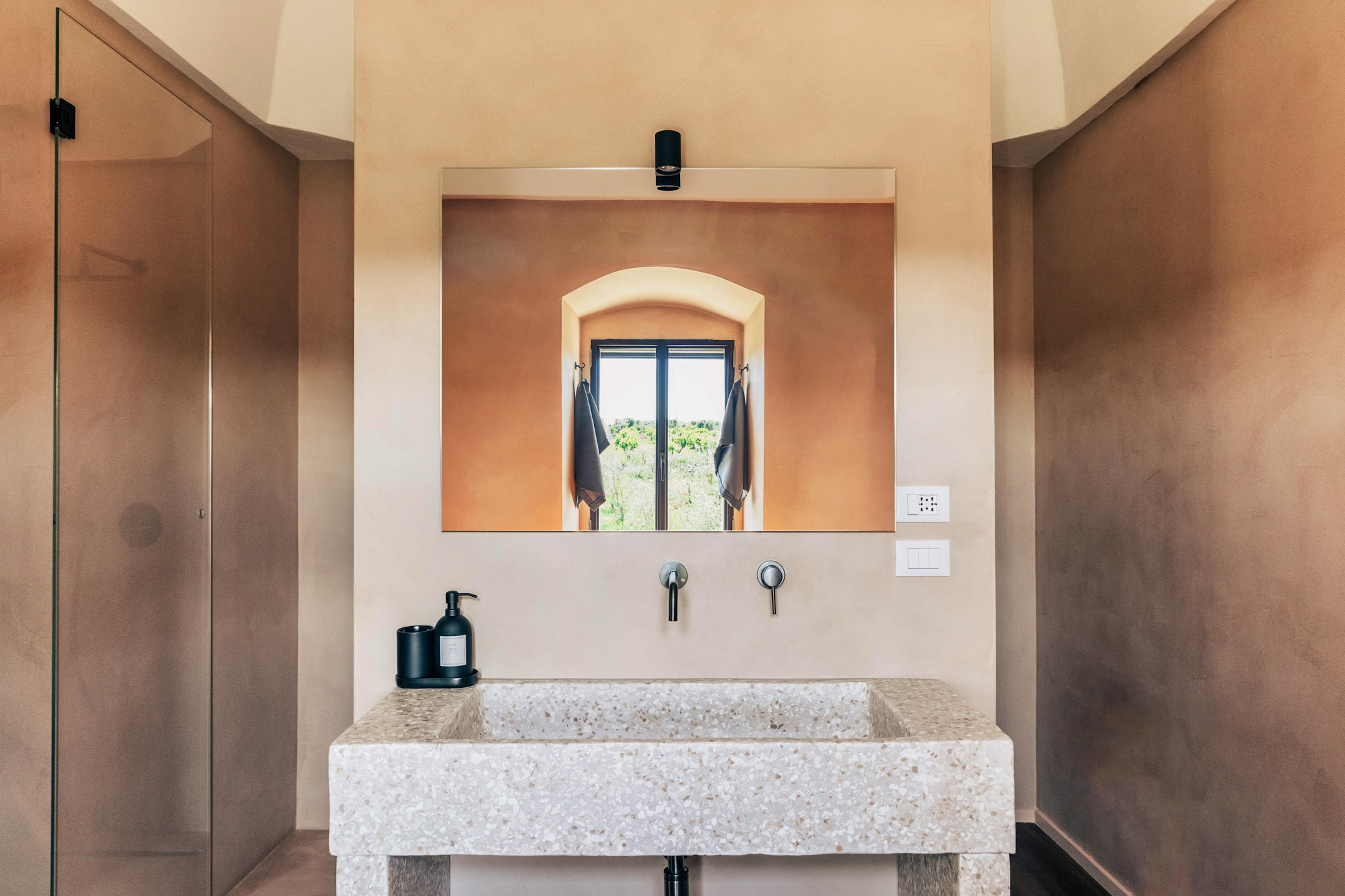 Arriving at Casale Madre feels like stepping into another rhythm of life. As you travel along quiet country roads lined with centuries-old olive trees beneath vast blue Puglian skies, the landscape slowly opens up to reveal this beautifully restored ancient farmhouse, set within four hectares of olive and almond groves. Here, nature, design and deep-rooted tradition combine to create an atmosphere that is both elegant and wonderfully authentic. Lovingly recovered by skilled local craftsmen, the casale showcases traditional materials such as ancient chianca stone, terrazzo and cocciopesto, all softened by Puglia’s earthy palette of white, terracotta and blush pink. Throughout the day, shifting light dances across thick walls and cool stone floors, creating a constant sense of calm. The only soundtrack is birdsong and the gentle rustle of leaves, while the scent of Mediterranean scrub lingers in the warm air. Sustainability sits at the heart of your stay too, with solar panels providing heat in harmony with the surrounding land. The three suites each offer privacy and indulgent comfort. On the ground floor, the Almond Suite enjoys views across the almond grove and features a soothing Turkish bath and a small private terrace where you can unwind after a steam. Upstairs, the Olive Suite offers 50 square metres of light-filled space, complete with a freestanding bathtub positioned to overlook the trees. The Terrace Suite, also on the first floor, enjoys sweeping views across the pool and olive groves, with a sensory shower and a generous bathtub inviting long, languid soaks. Each suite features a double bed, ensuite bathroom, pool towels and thoughtful touches that make settling in effortless. Outside, the pool is a true highlight. Surrounded by ancient trees and open countryside, it’s the perfect place to cool off beneath the Puglian sun before stretching out with a book or a glass of chilled prosecco. A small organic vegetable garden provides seasonal produce for guests to enjoy, its fruit nourished only by rainwater. Enhance your stay with a Madre Breakfast box prepared by chef Luisa, choose from Light, Gourmet or Exclusive options brimming with local flavours. In cooler months, Saturday brunch and traditional Sunday lunch bring seasonal Apulian dishes to the table, while massages, yoga sessions and private dining with a chef can all be arranged. When you’re ready to explore, Ostuni’s whitewashed alleys and lively piazzas are just a short drive away. Browse the Saturday market, enjoy an aperitivo at sunset overlooking the countryside, or head down to the beaches of the Marina di Ostuni for a swim in the Adriatic. From countryside calm to coastal charm, Casale Madre places you perfectly to experience the very best of Puglia.