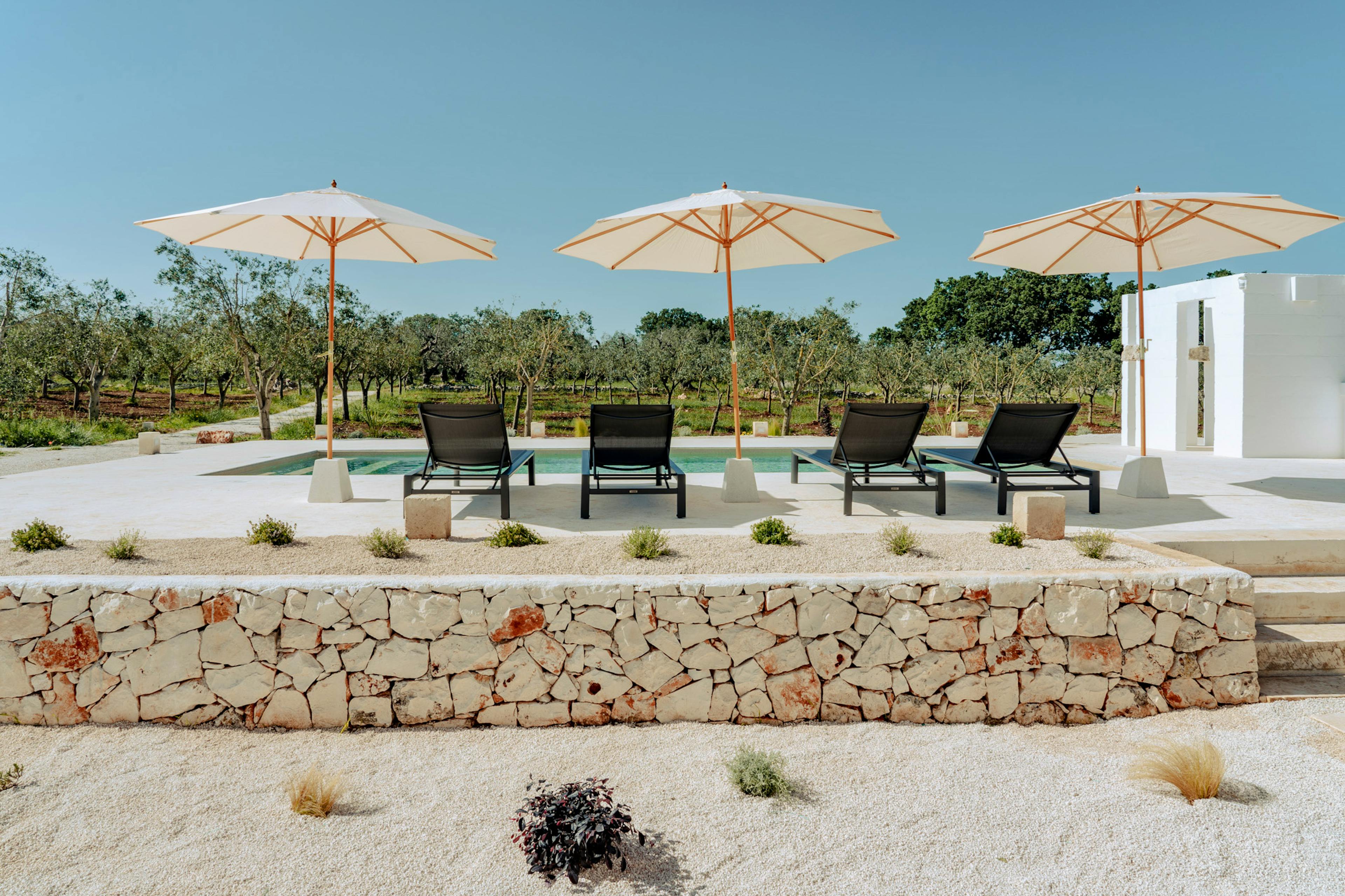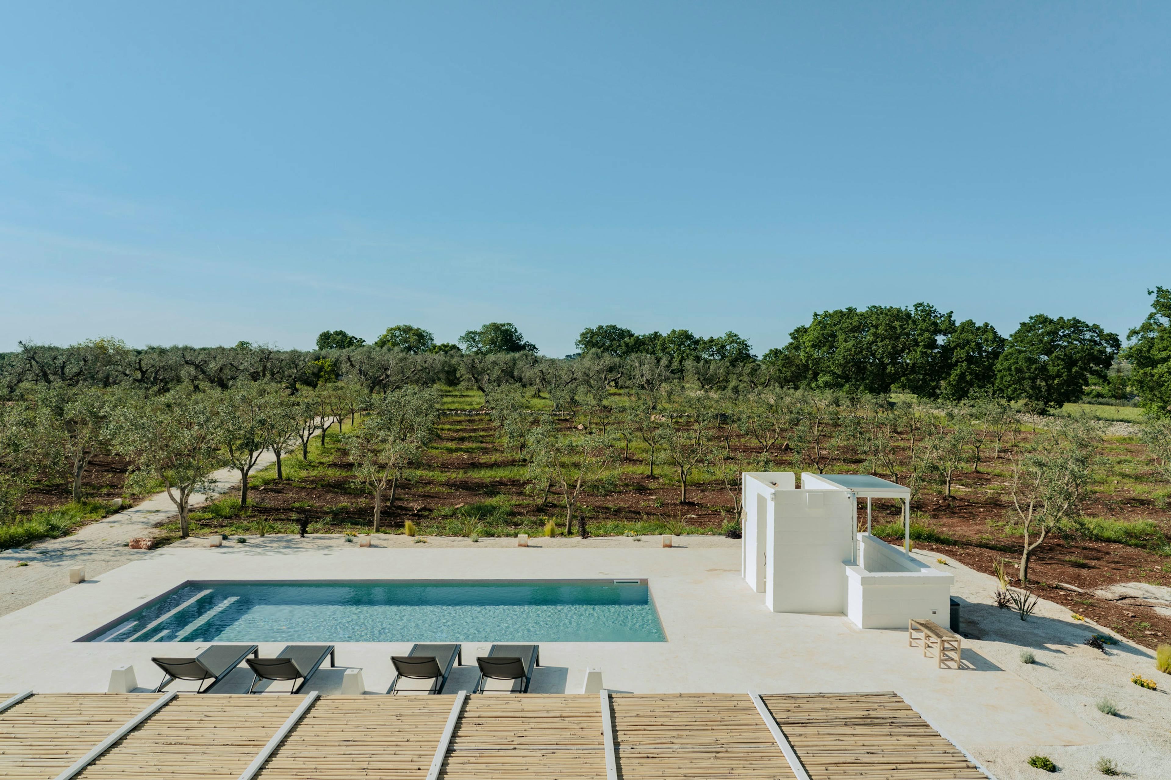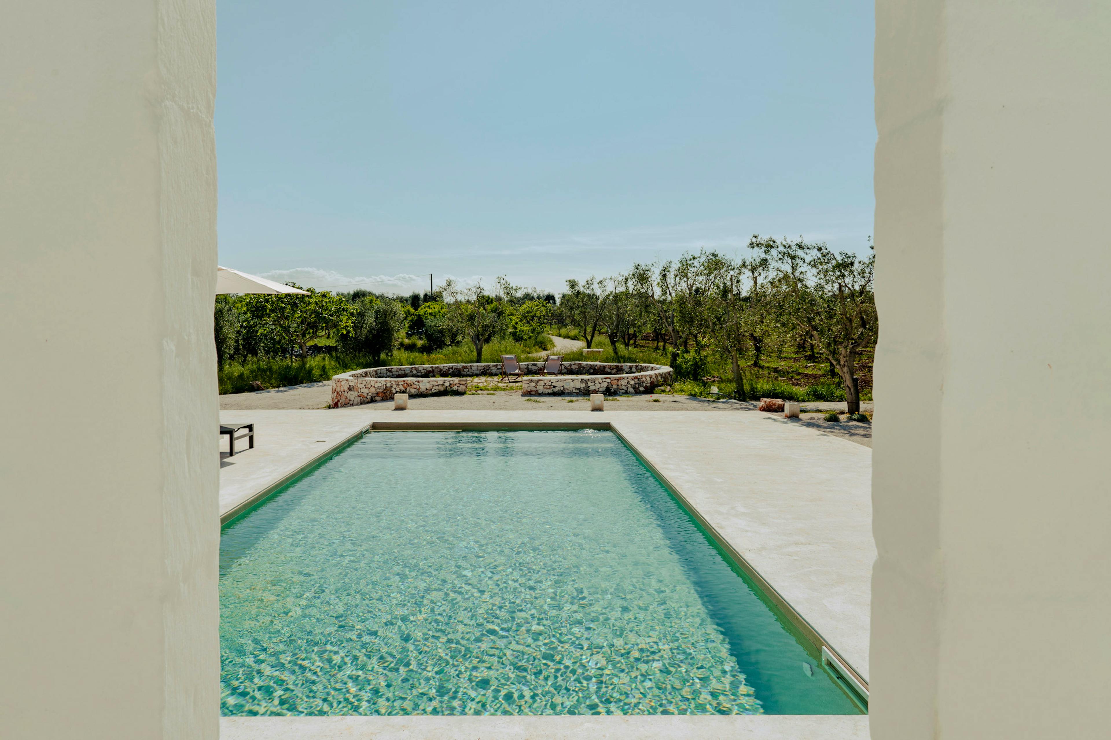 Restored 17th century farmhouse near Ostuni, Puglia surrounded by ancient olive groves and a serene private pool.