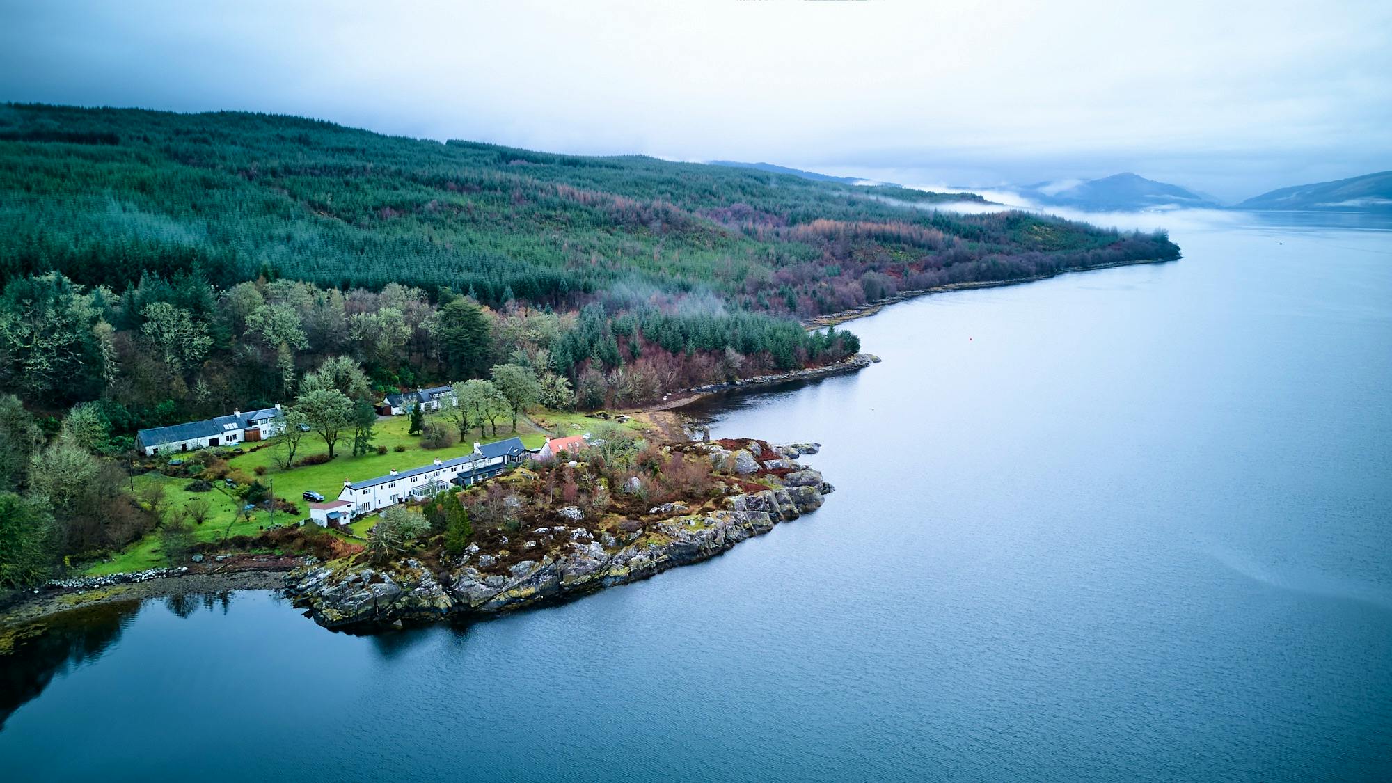 Peaceful waterside cottage near Inveraray with sea inlet views, wood burner and conservatory for wildlife watching.