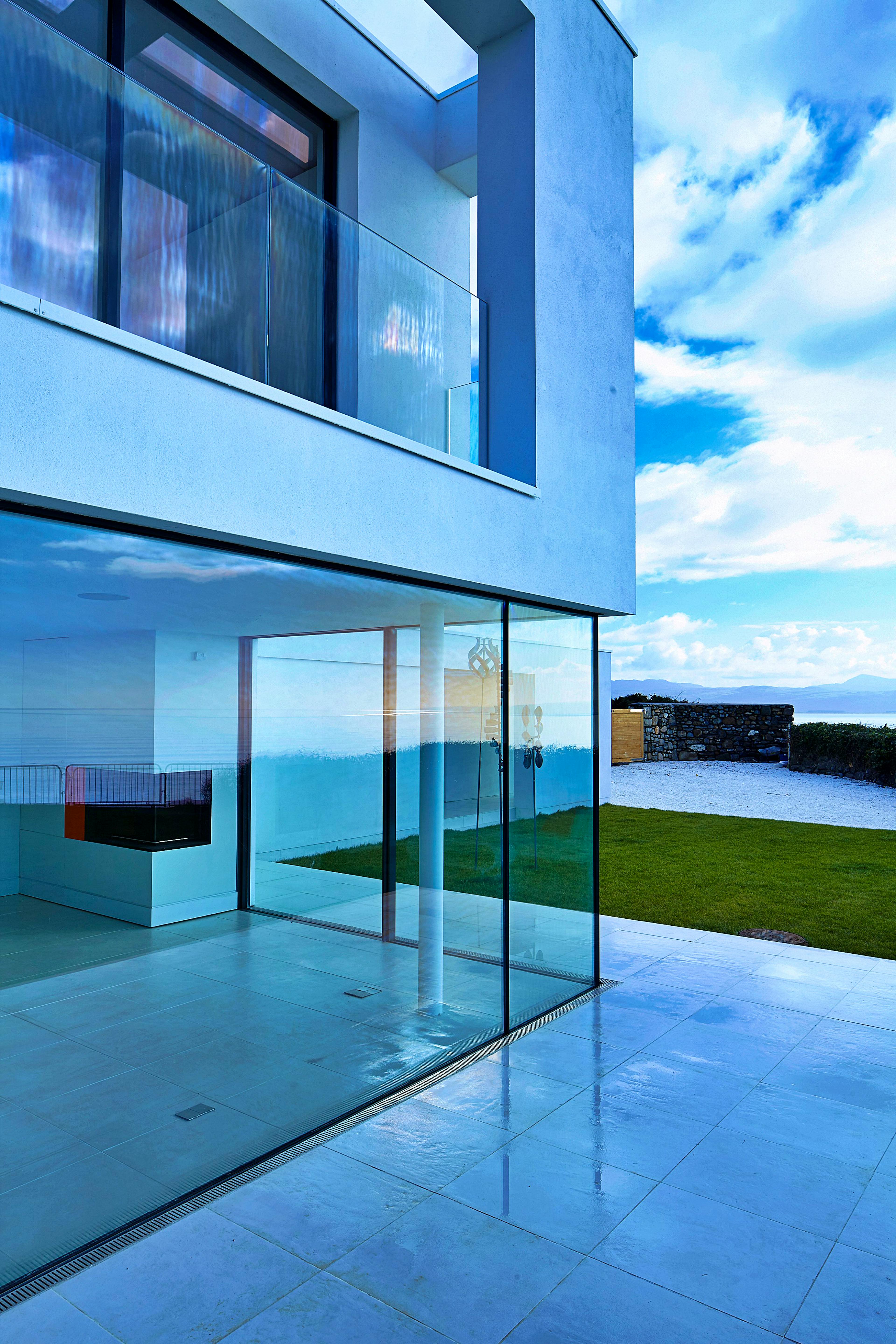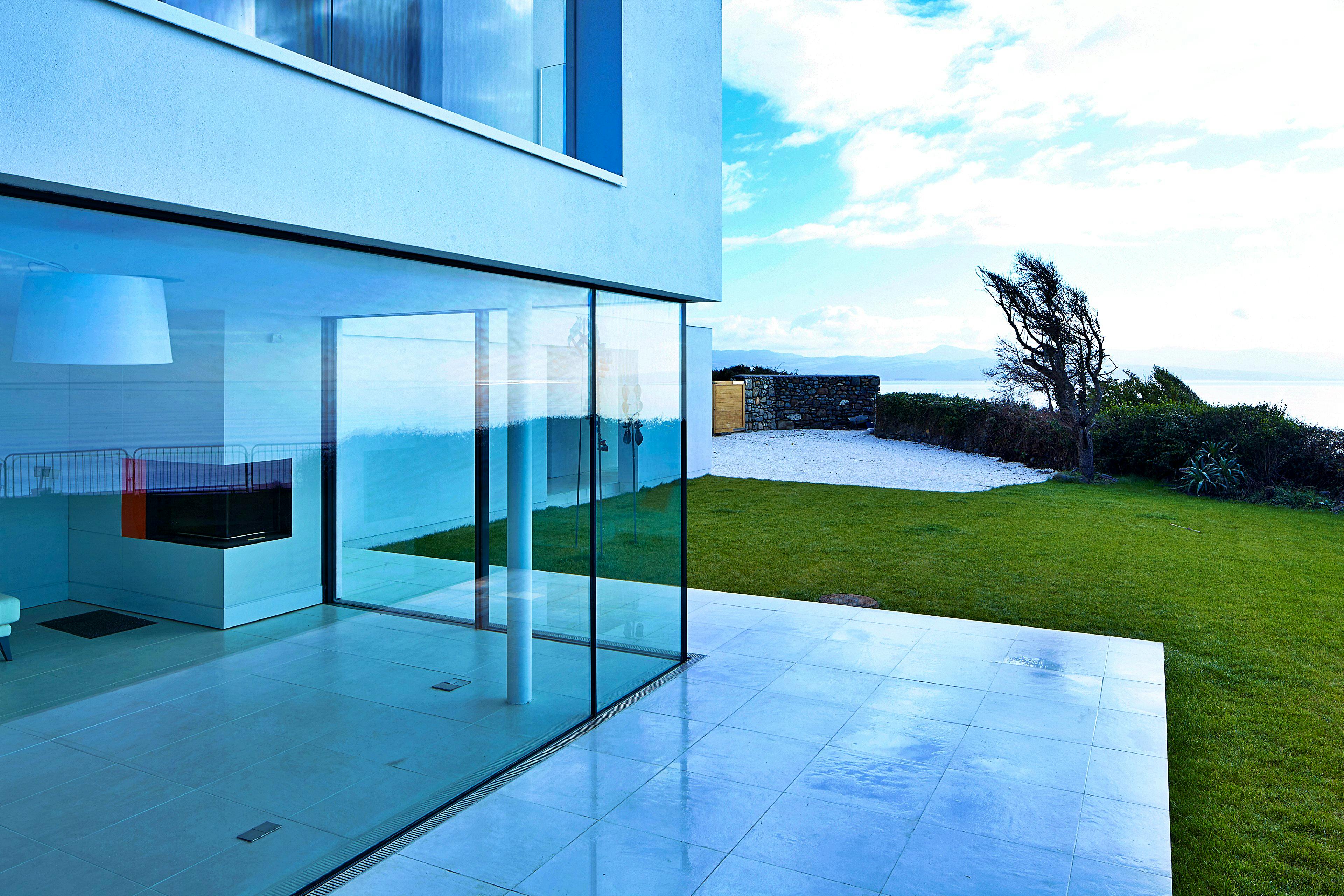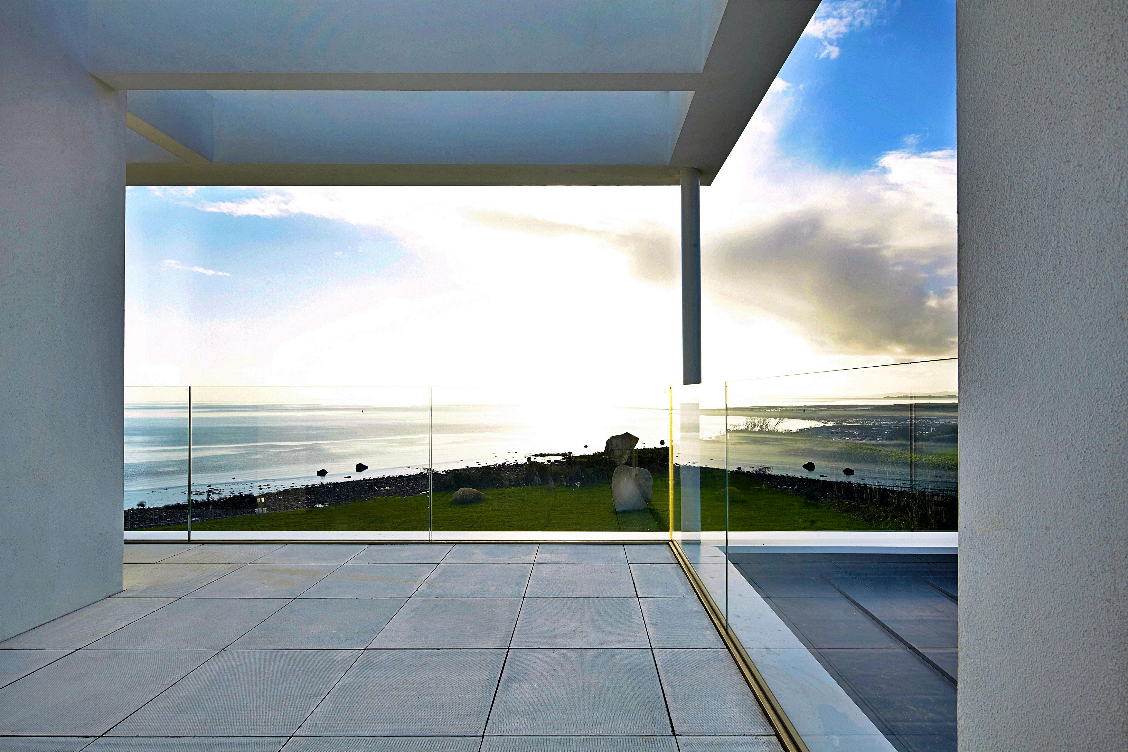 Impressive expanses of floor-to-ceiling glass let in the light and the stunning coastal surroundings.