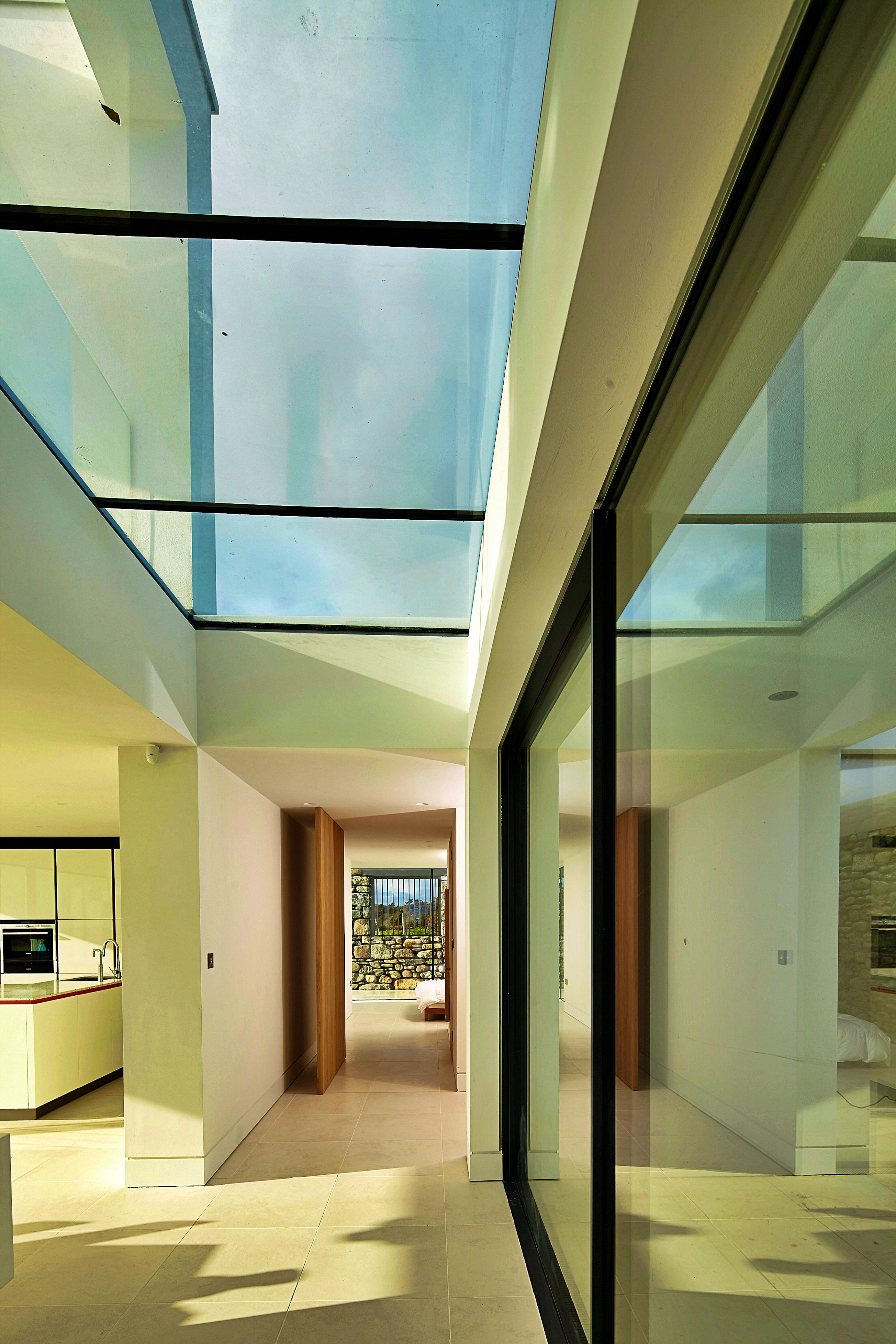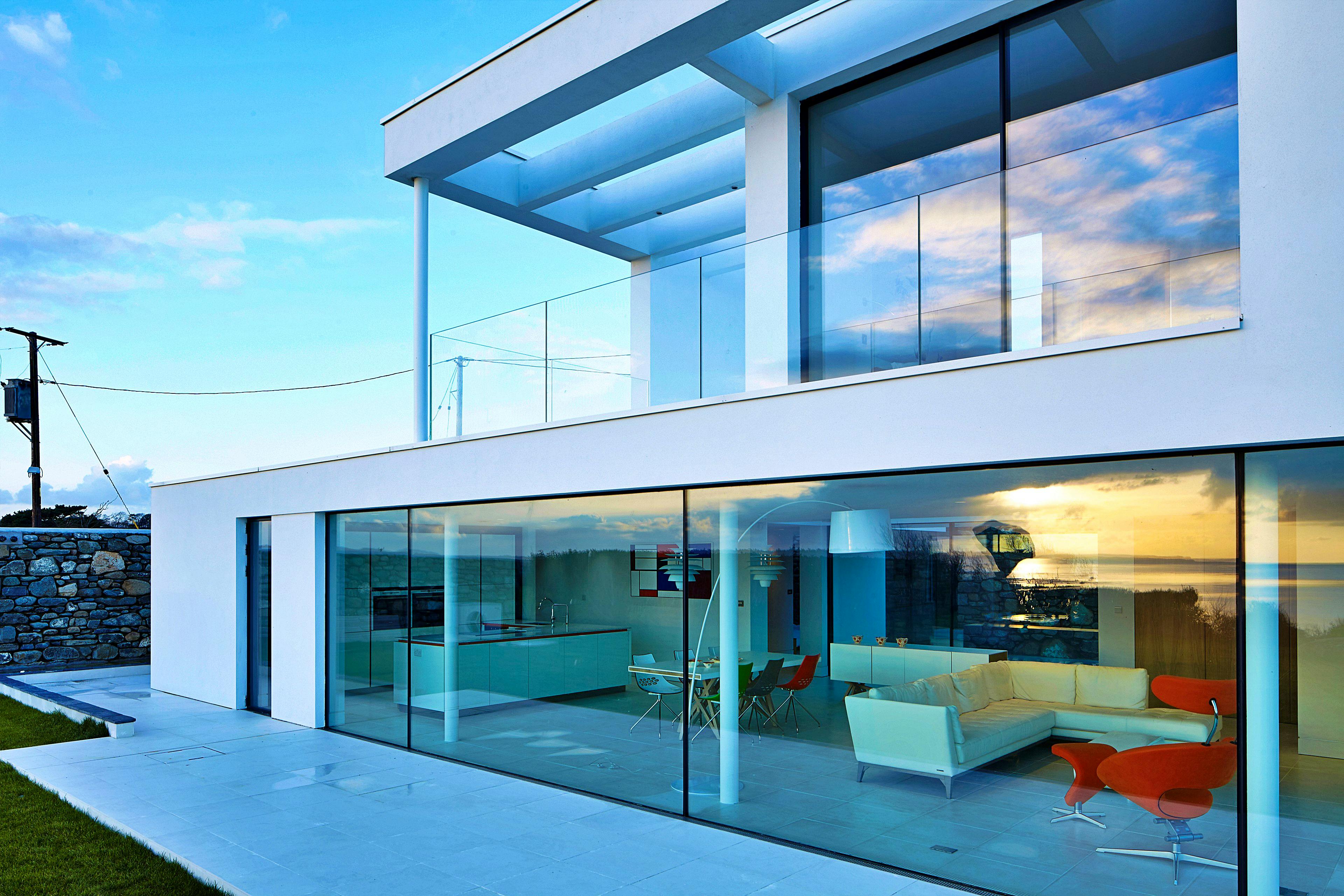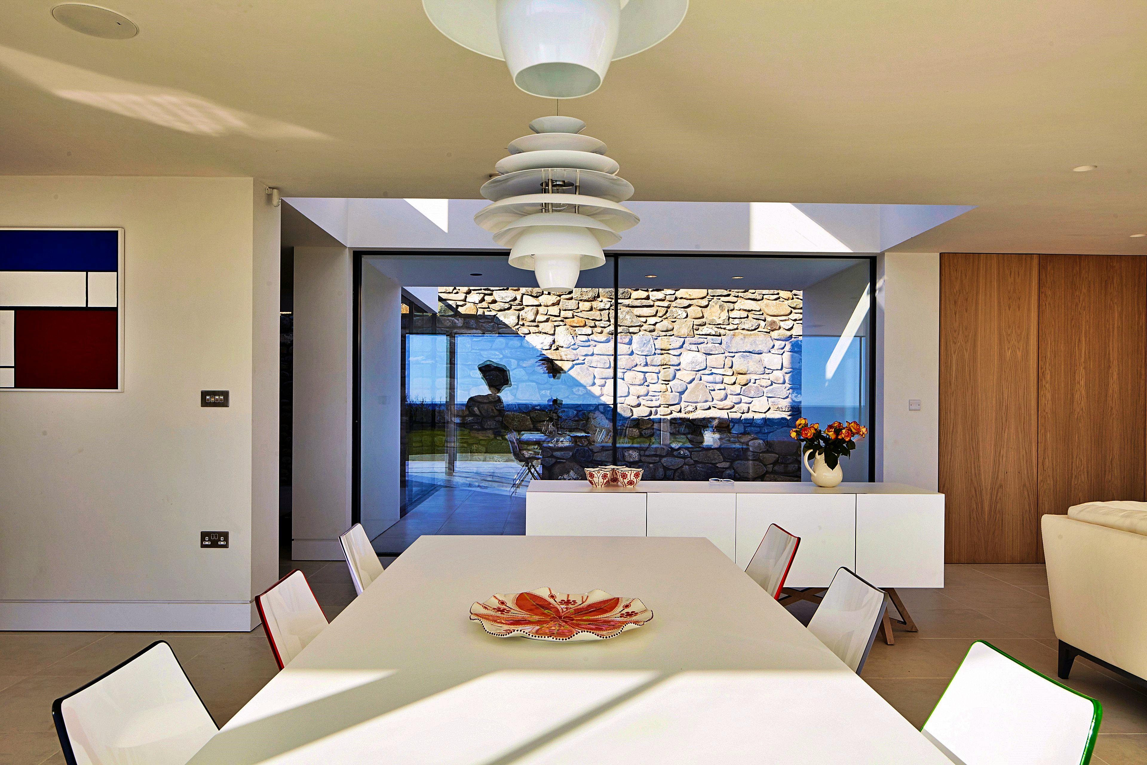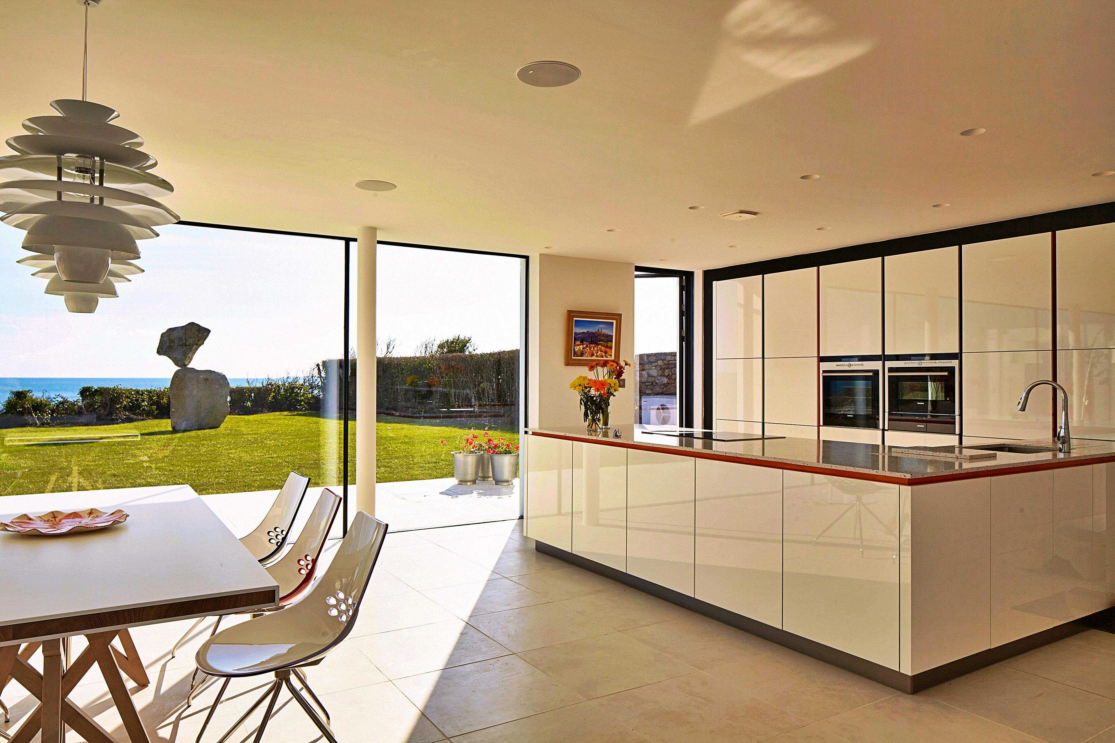 Impressive expanses of floor-to-ceiling glass let in the light and the stunning coastal surroundings.