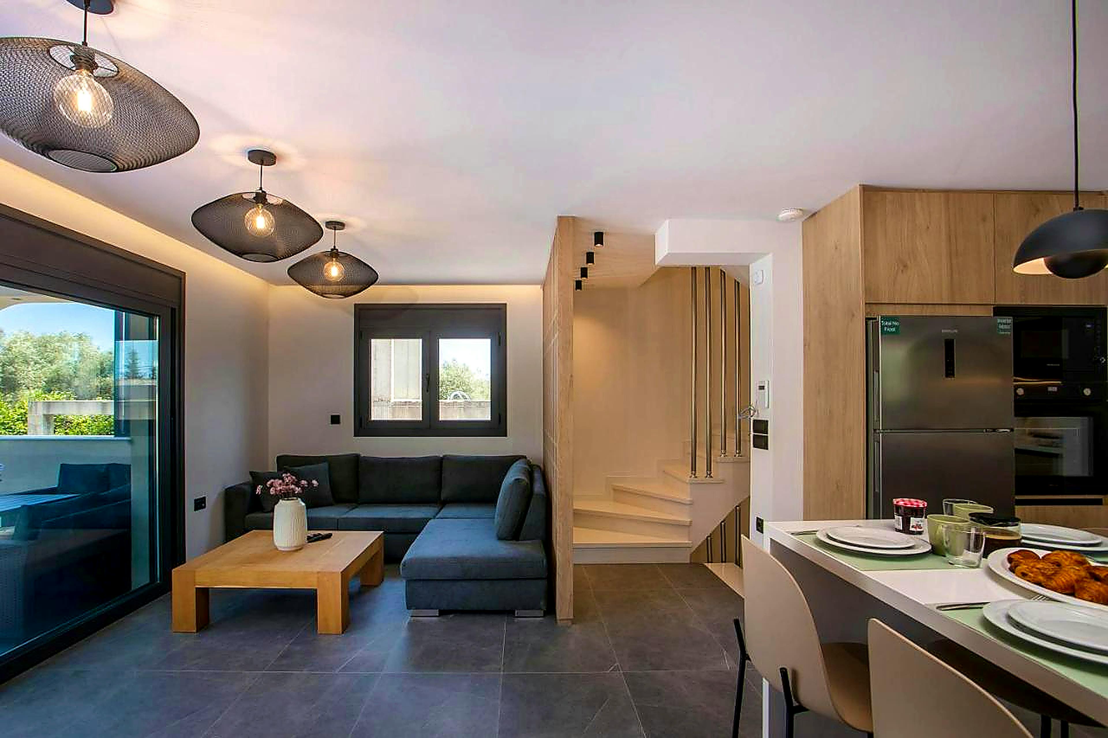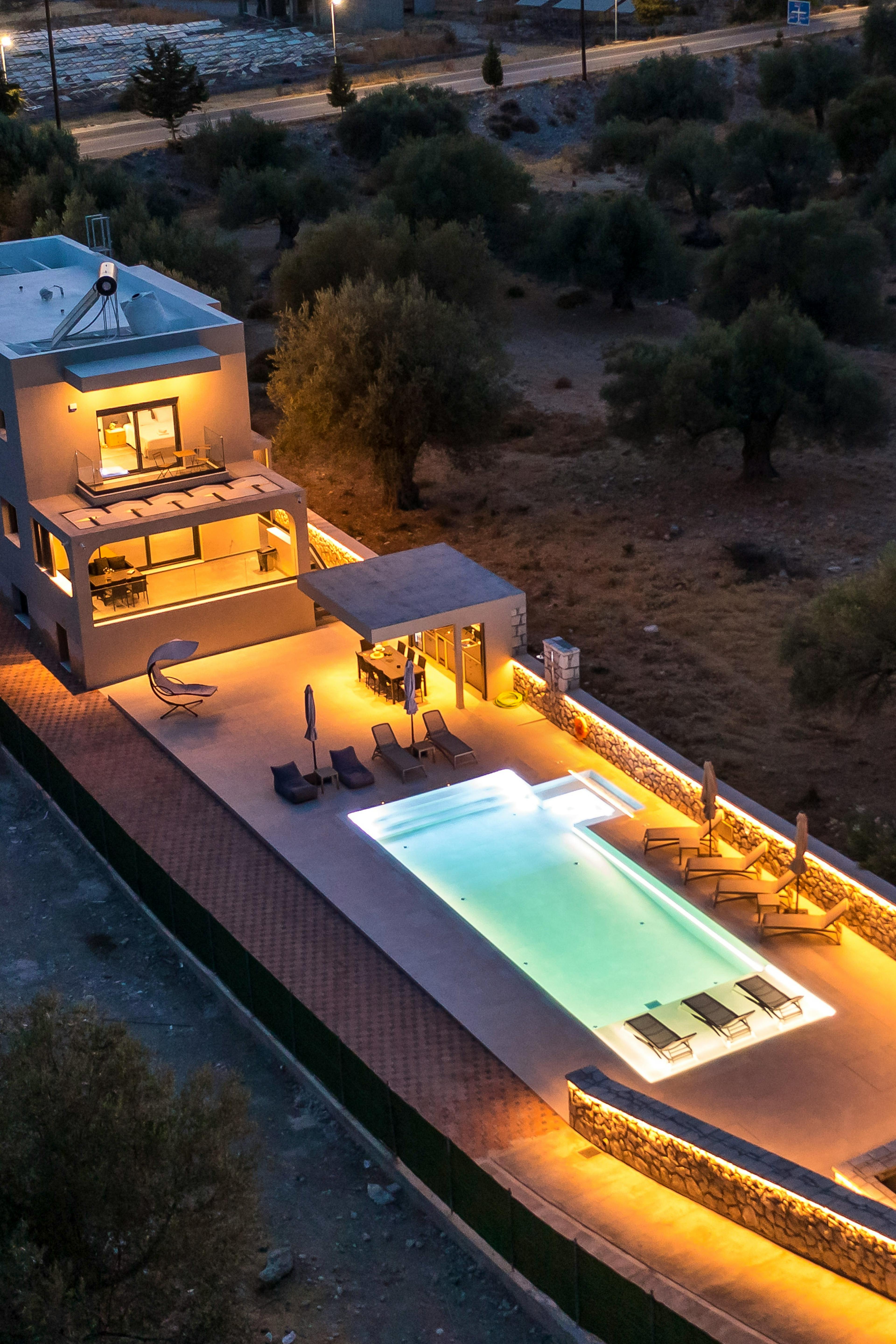 A pair of modern villas near Charaki beach, ideal for booking together or separately for flexible group holidays in Rhodes.