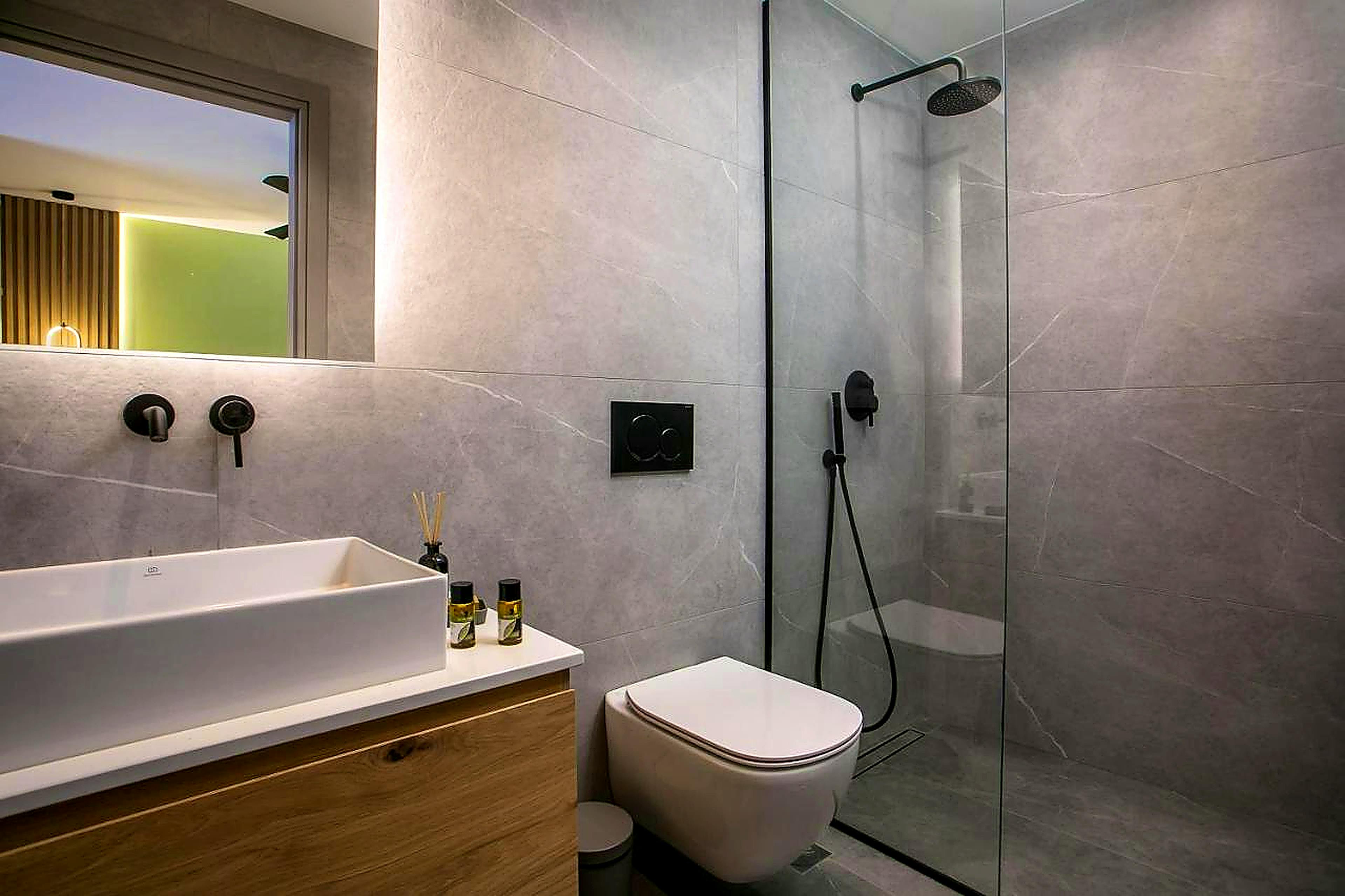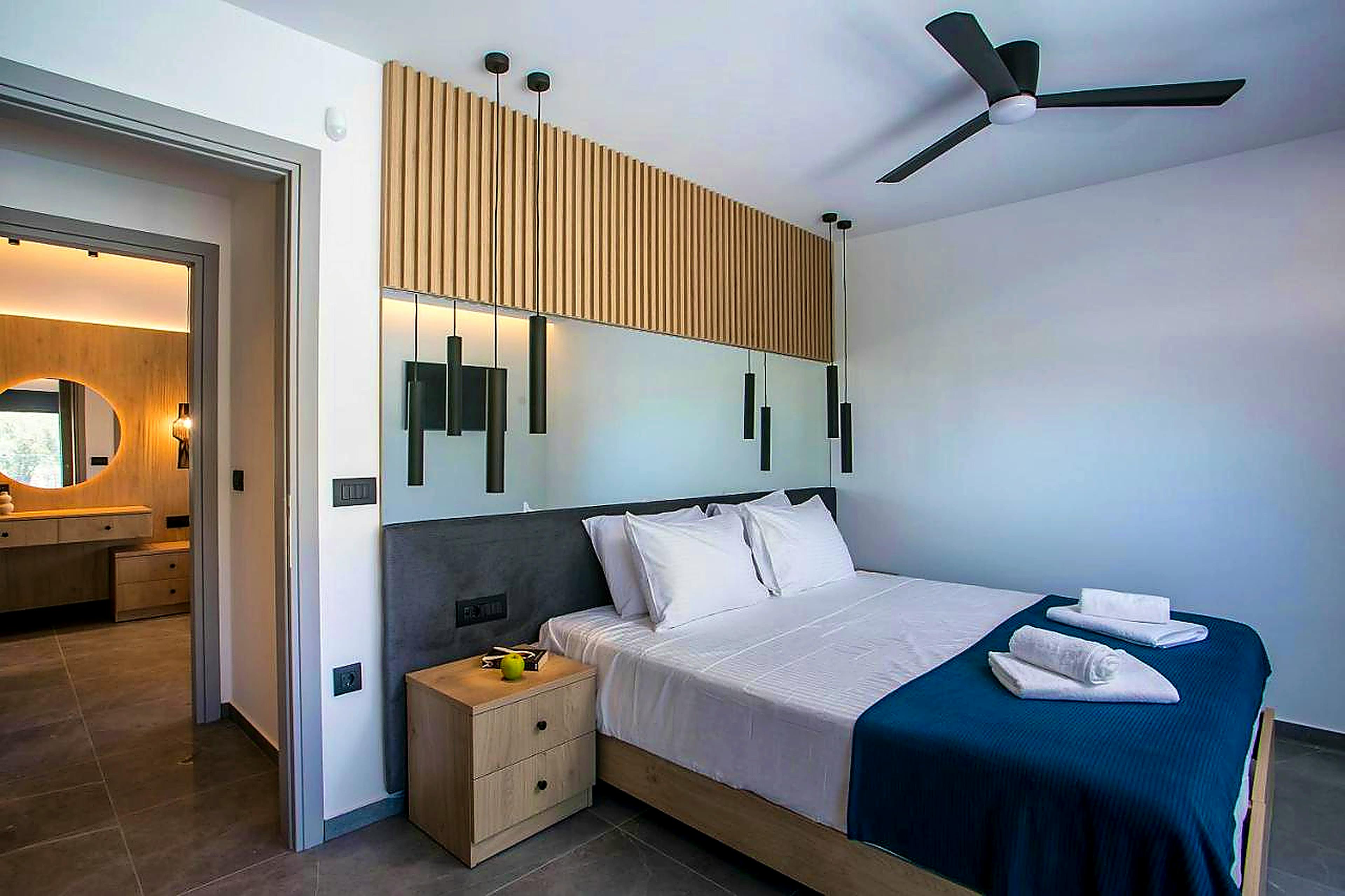 Set just moments from the gentle curve of Charaki beach, Charaki Dream Villas is a beautifully designed pair of contemporary villas offering space, privacy and easy-going Mediterranean living on Rhodes’ quieter east coast. Available to book together for larger groups, or individually for family holidays, the two villas sit side by side against a backdrop of rugged mountains and open skies, creating a wonderfully relaxed base close to the sea. Each villa sleeps up to 10 guests and has been thoughtfully laid out to make group stays feel effortless. Inside, airy open-plan living spaces invite slow mornings and sociable evenings, with comfortable sofas, smart TVs and plenty of room to spread out. Large doors connect the interiors to the outdoor terraces, keeping life flowing easily between inside and out. The fully equipped kitchens are ideal for everything from simple breakfasts to long, leisurely dinners prepared with local produce. Across each villa you’ll find four air-conditioned bedrooms, all designed with comfort firmly in mind. All of the bedrooms feature king size beds and private ensuite shower rooms, while the fourth bedroom adds extra flexibility with an additional double sofa bed and its own ensuite. A separate WC adds convenience for larger groups, ensuring everyone has space to unwind without feeling on top of one another. Outside is where these villas truly shine. Private swimming pools form the heart of each outdoor area, surrounded by sun loungers for long afternoons under the Rhodes sun. Shaded dining spaces, outdoor kitchens and BBQs make alfresco meals a daily ritual, whether it’s a relaxed lunch after the beach or an evening feast under the stars. Outdoor showers and WCs add a practical touch after sandy adventures, while mountain views bring a sense of calm and connection to the landscape. Staying here also means enjoying the ease of a complimentary daily cleaning service, so you can focus entirely on switching off. When it’s time to explore, Charaki’s peaceful beach is just three minutes away, while the surrounding coastline offers a string of beautiful bays and sandy stretches. From family-friendly Agathi Beach to the golden sands of Tsambika and the iconic views at Lindos, some of Rhodes’ most loved spots are all within an easy drive, along with welcoming tavernas and seaside cafés for relaxed days out.