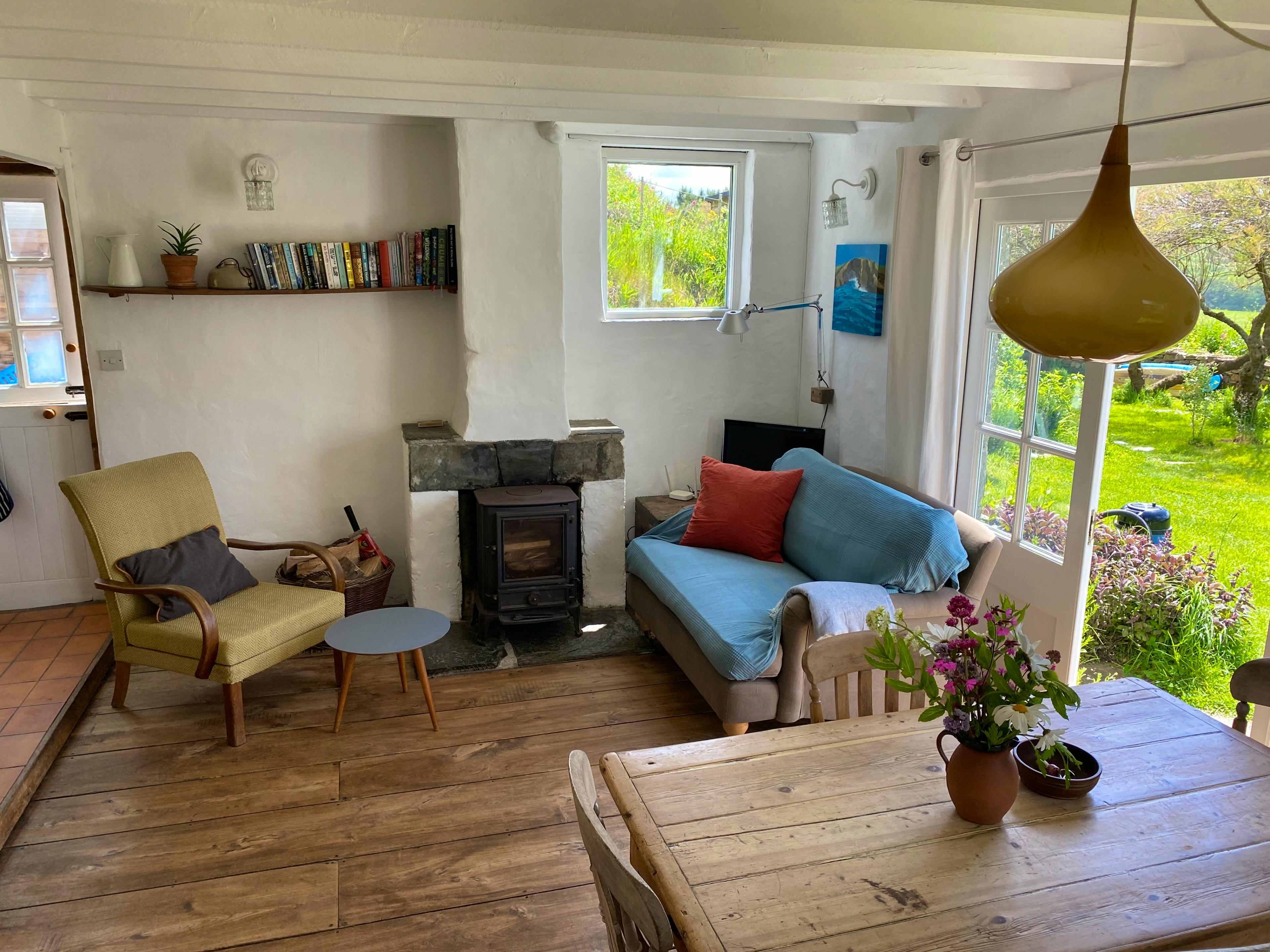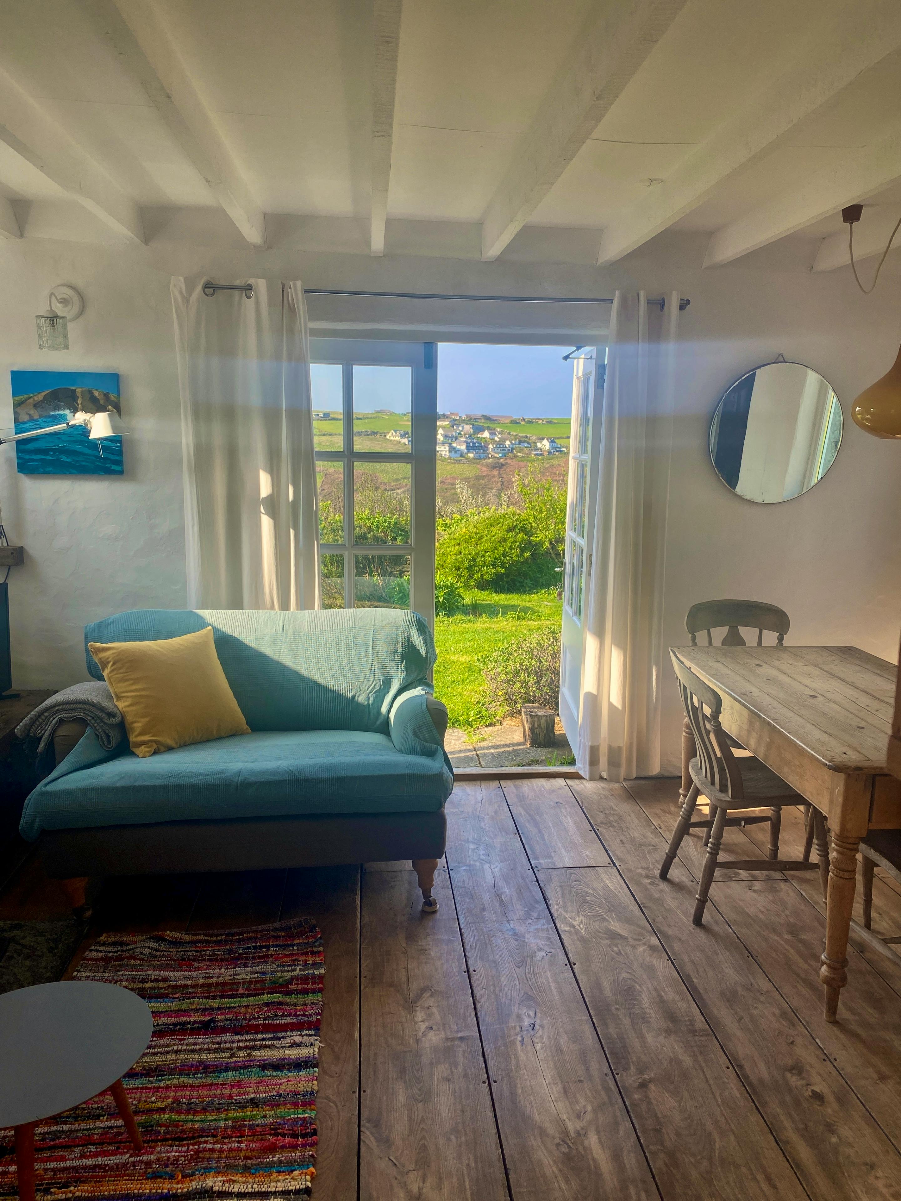 Charming rustic cottage in Mawgan Porth with valley and sea views, south-facing garden and cosy wood-burner ideal for couples or small families.